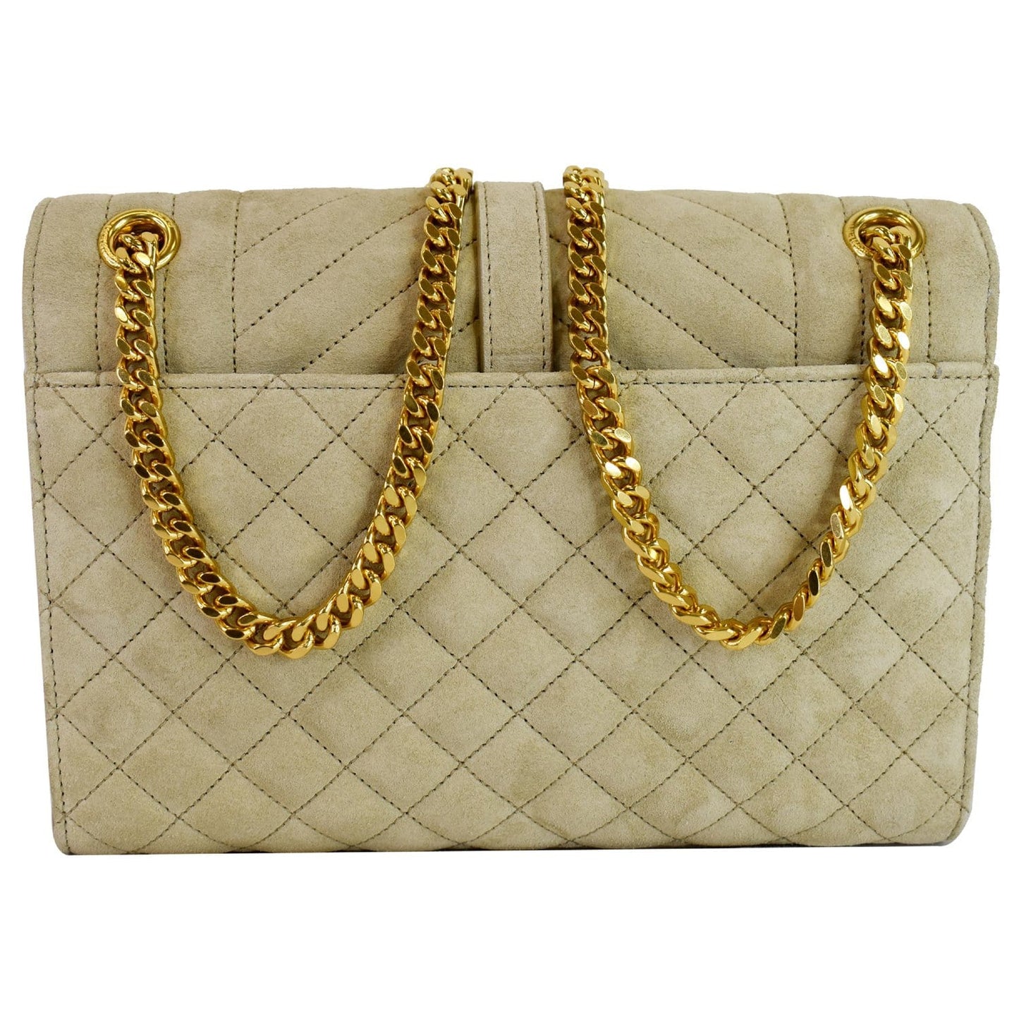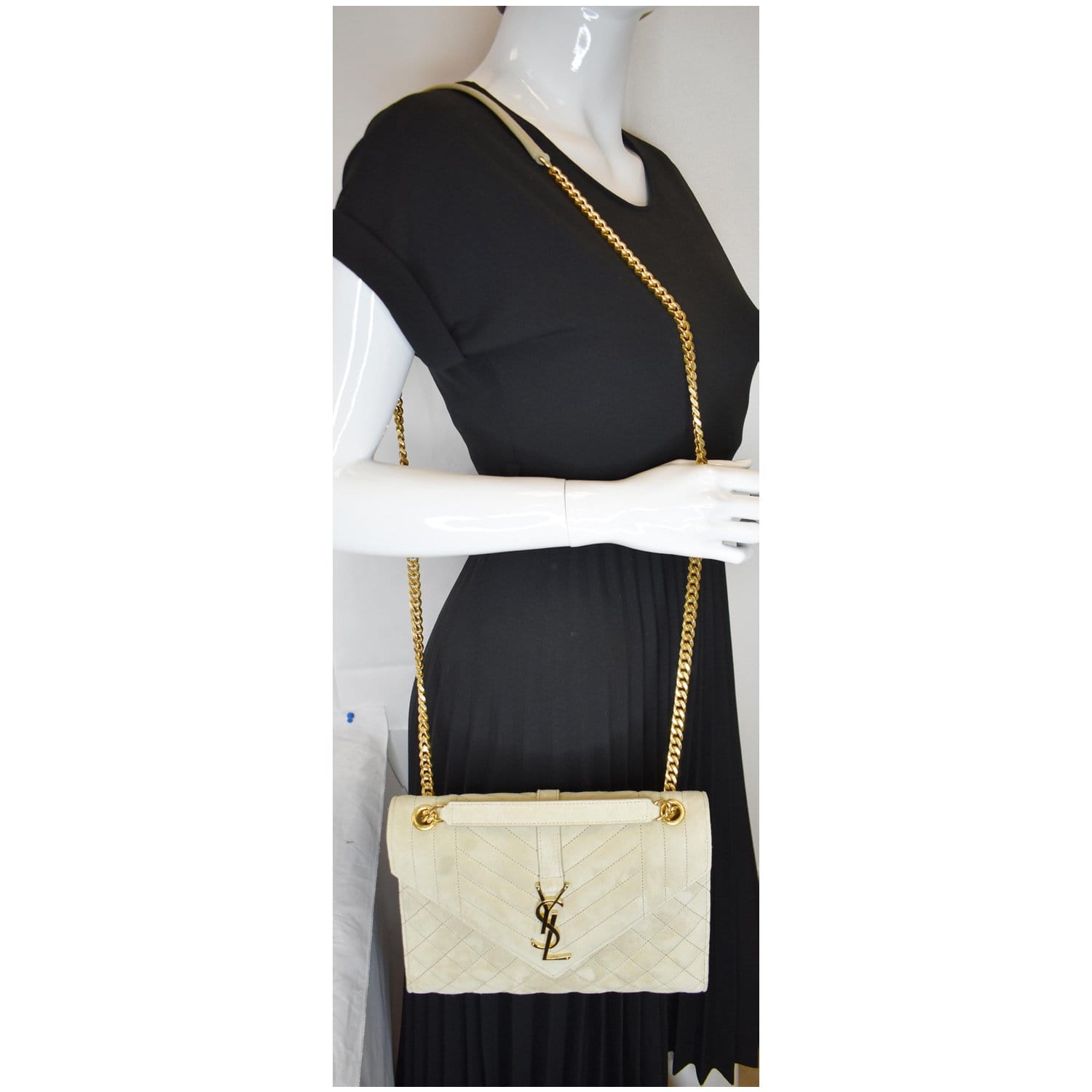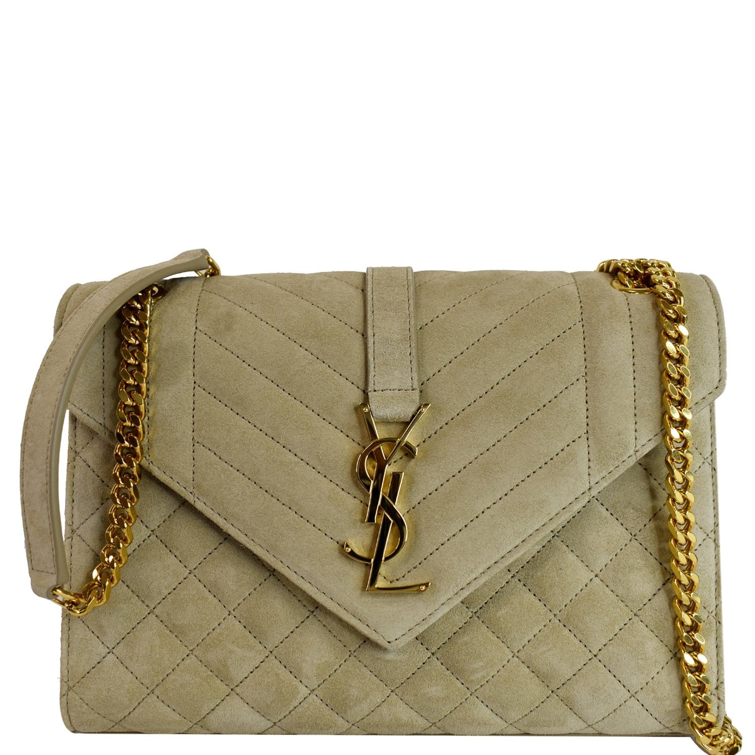 YVES SAINT LAURENT Medium Envelope Matelasse Suede Crossbody Bag Beige