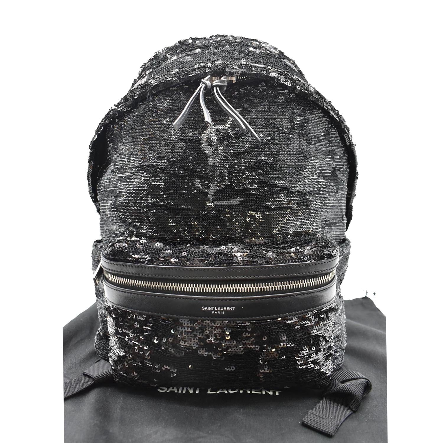 YVES SAINT LAURENT Mini City Sequin Leather Backpack Bag Black