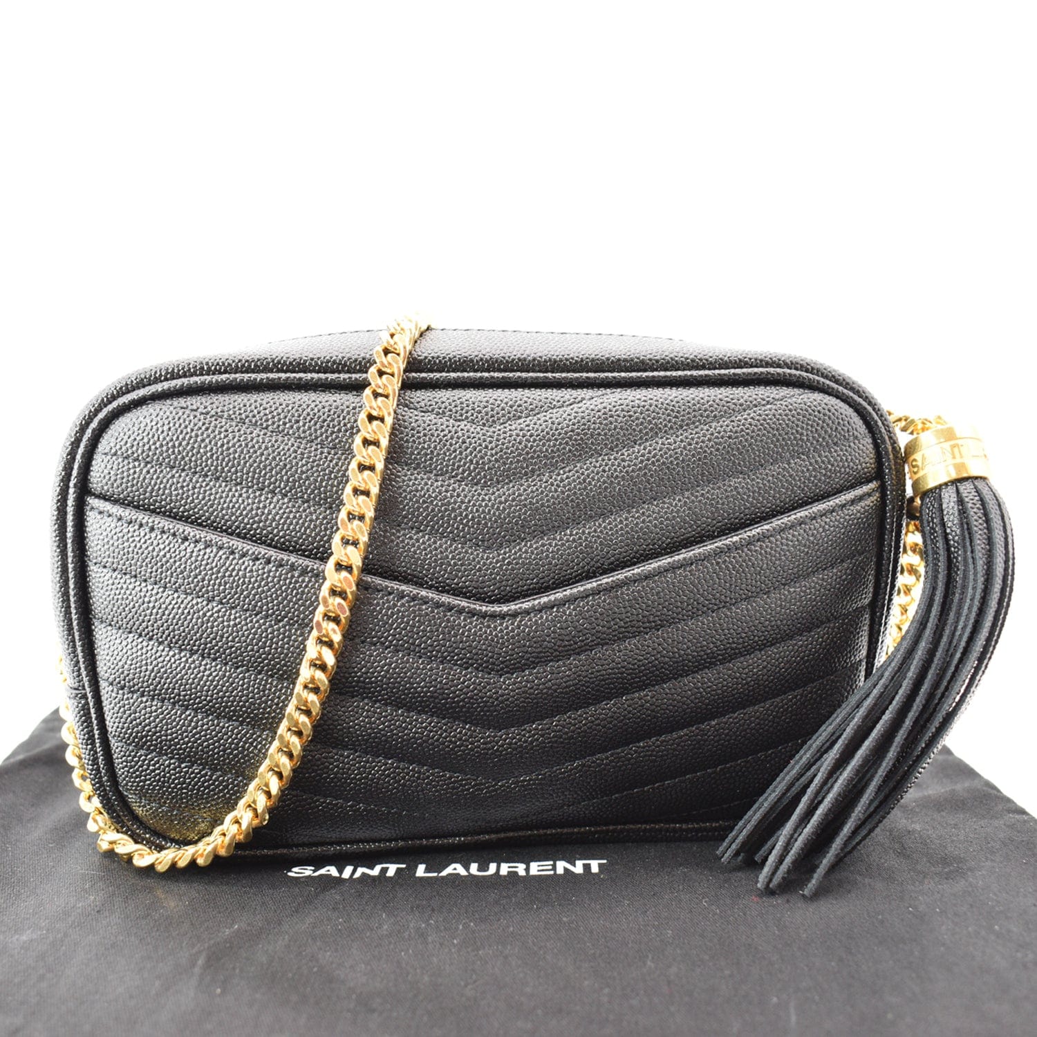 YVES SAINT LAURENT Mini Lou Grain De Poudre Camera Bag Black