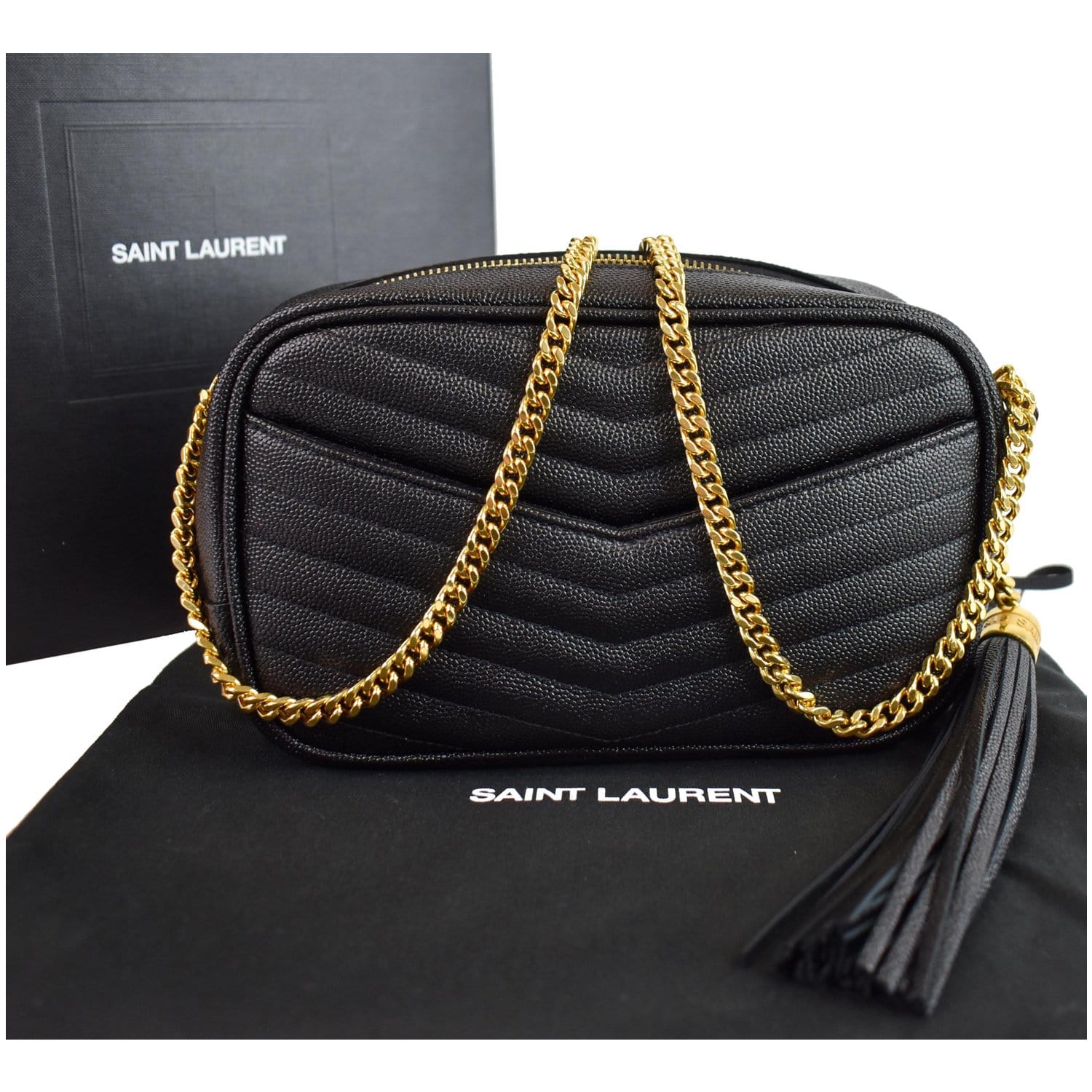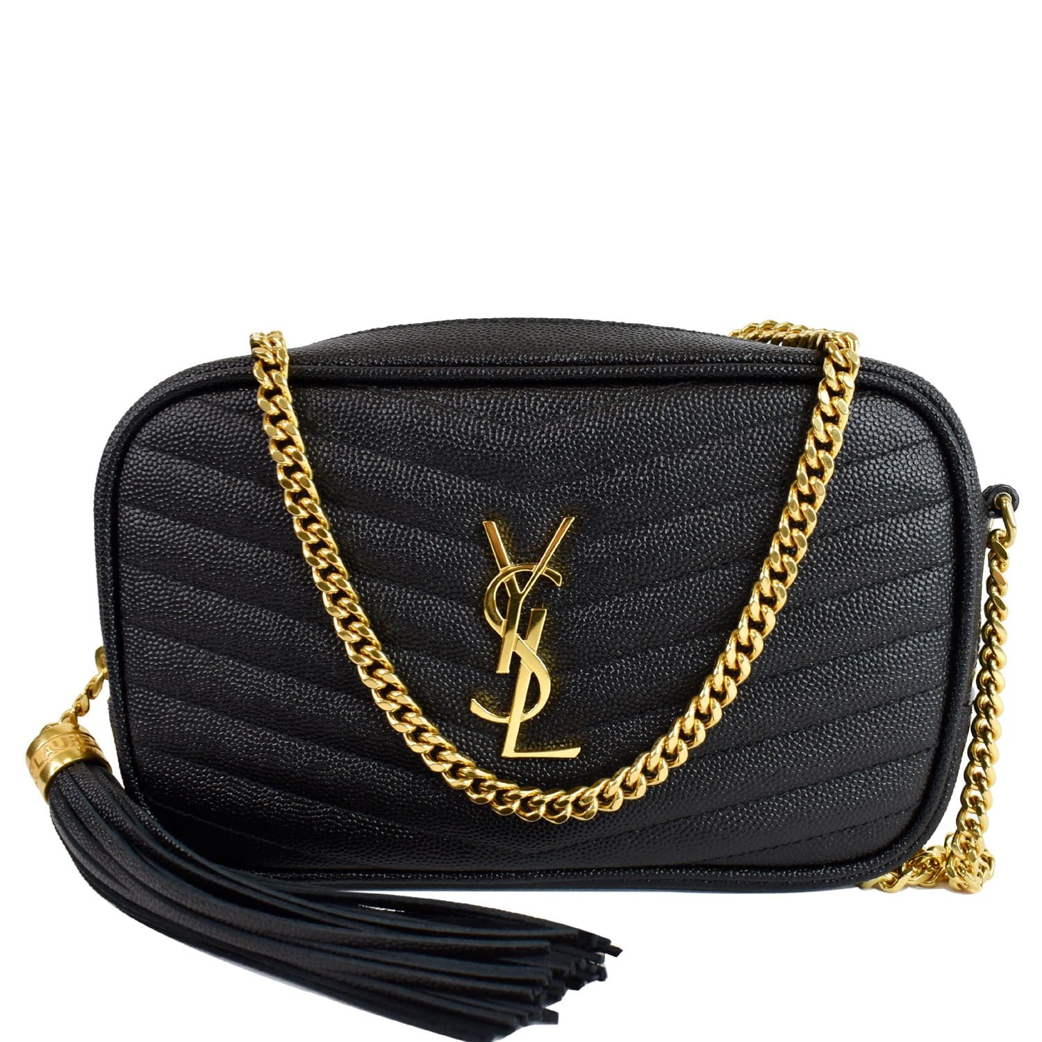 YVES SAINT LAURENT Mini Lou Grain De Poudre Camera Bag Black