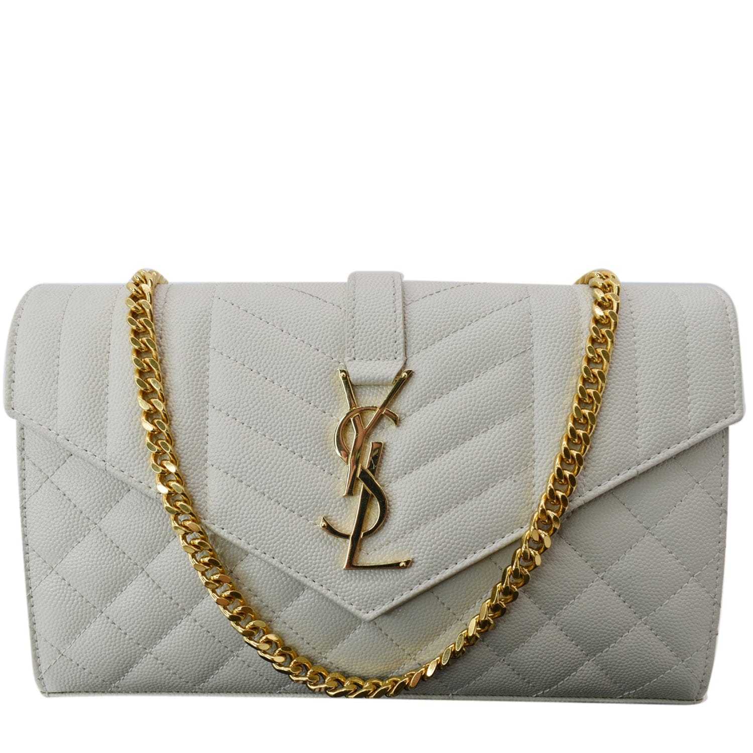 YVES SAINT LAURENT Mix Matelassé Small Grain De Poudre Chain Wallet Crossbody Bag Cream