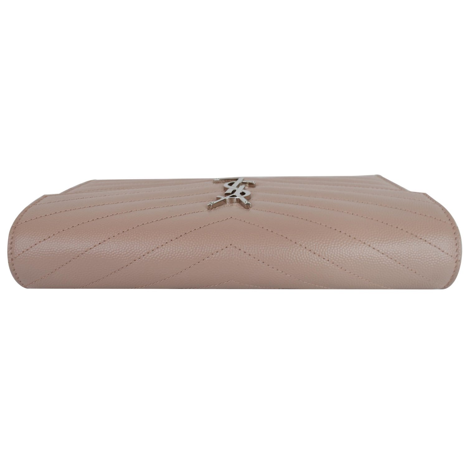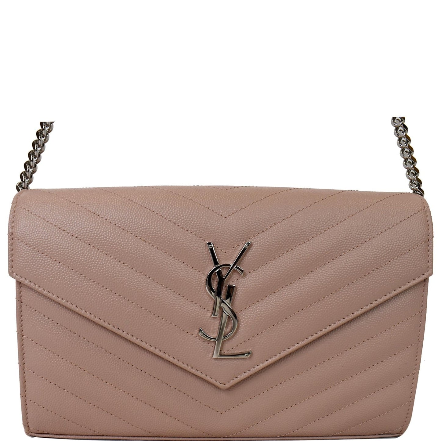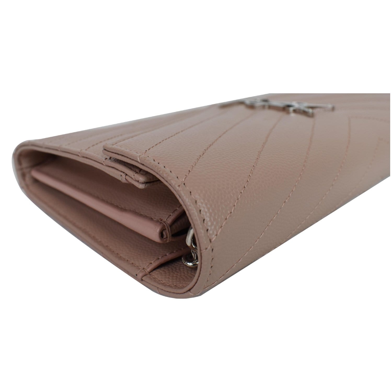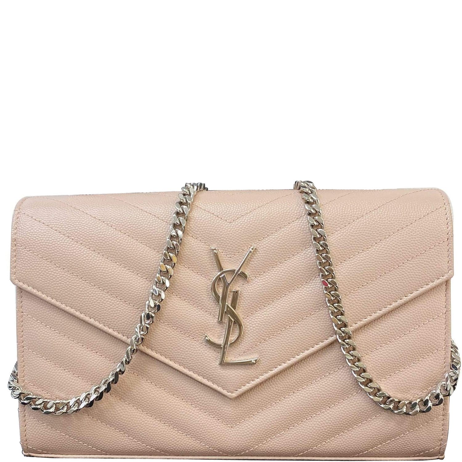 YVES SAINT LAURENT Monogram Grain De Poudre Chain Wallet Rose Pink
