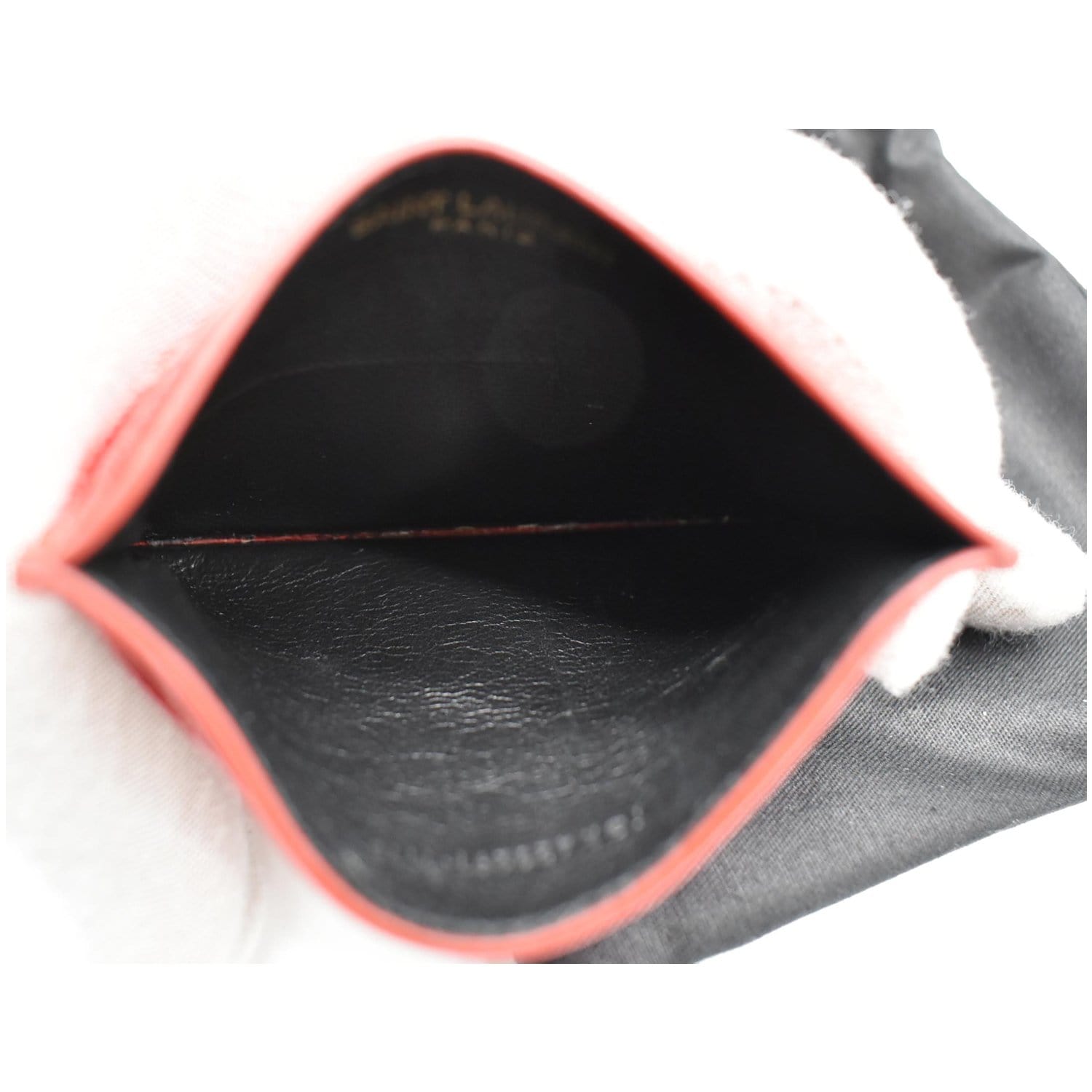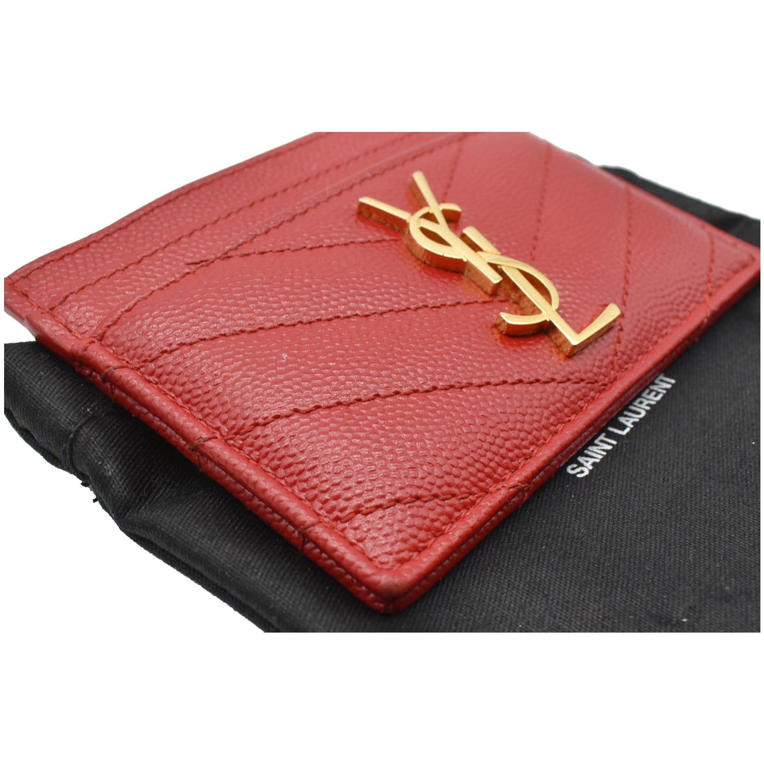 YVES SAINT LAURENT Monogram Grain Embossed Leather Card Case Red