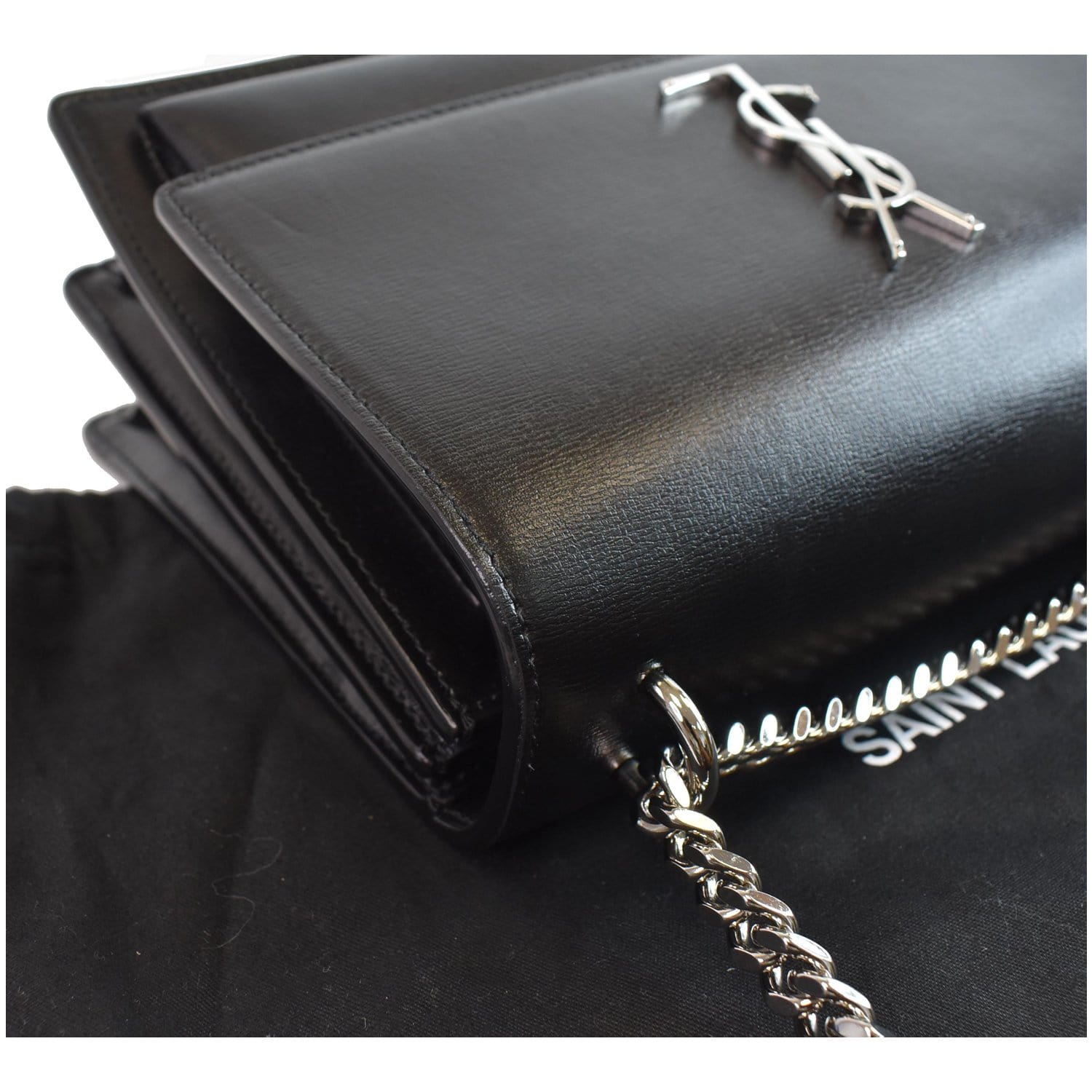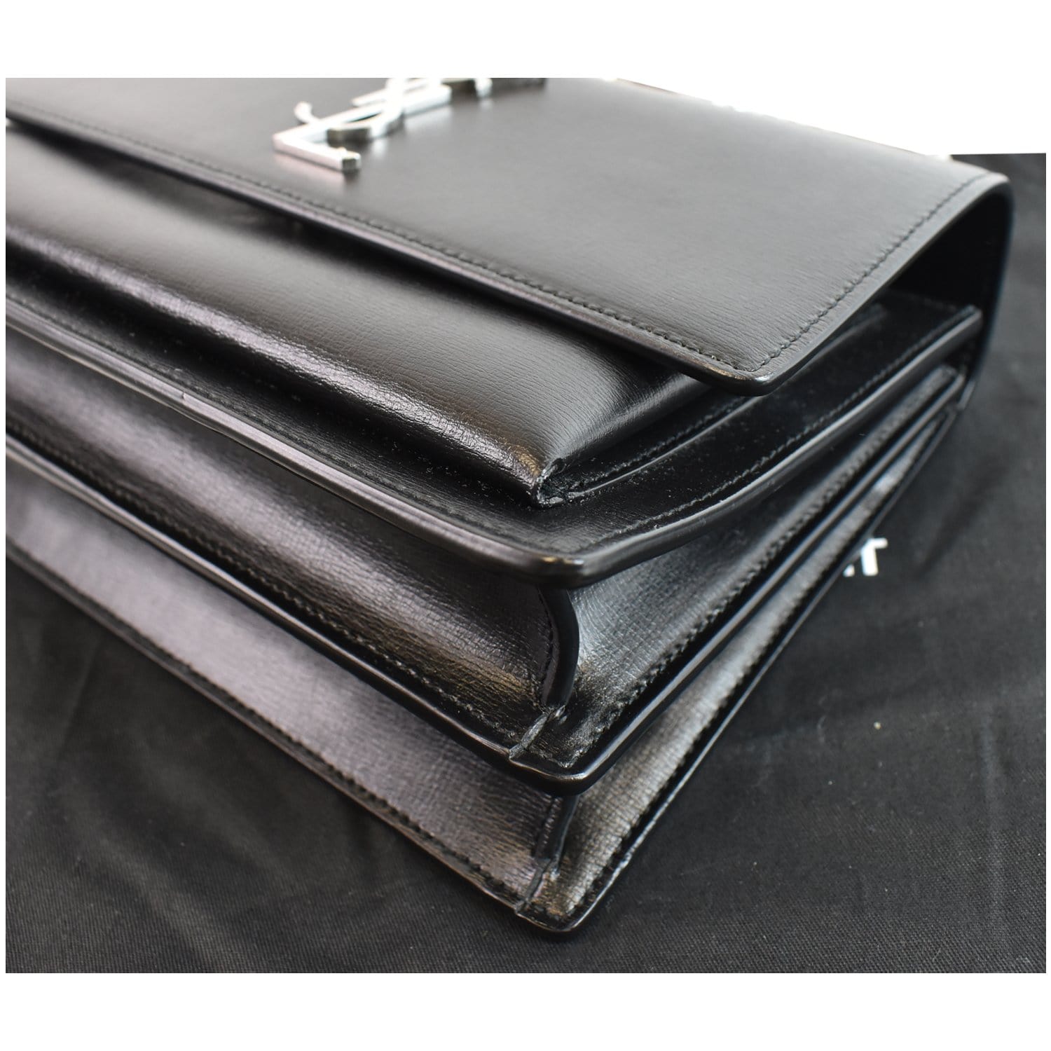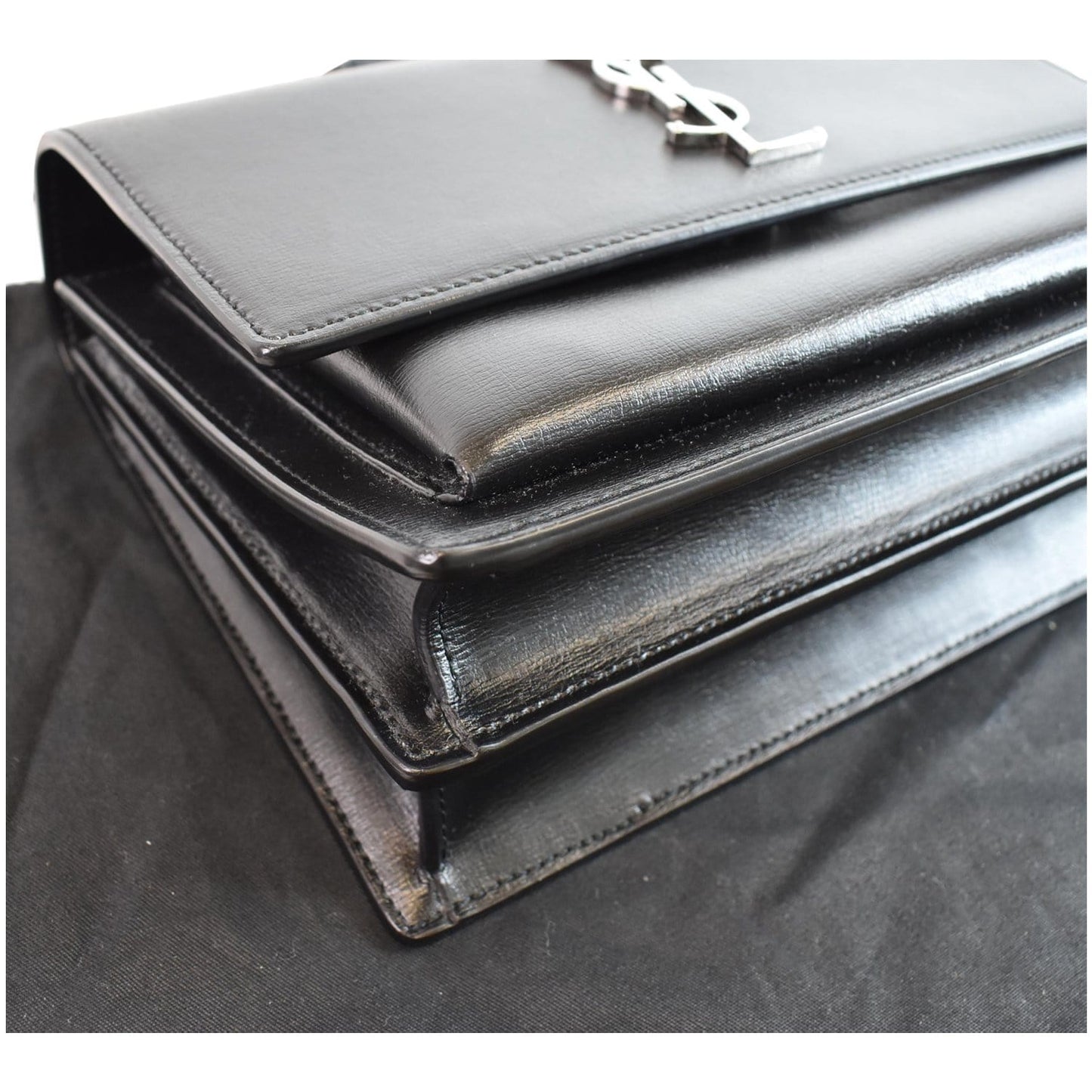 YVES SAINT LAURENT Monogram Sunset Medium Leather Shoulder Bag Black