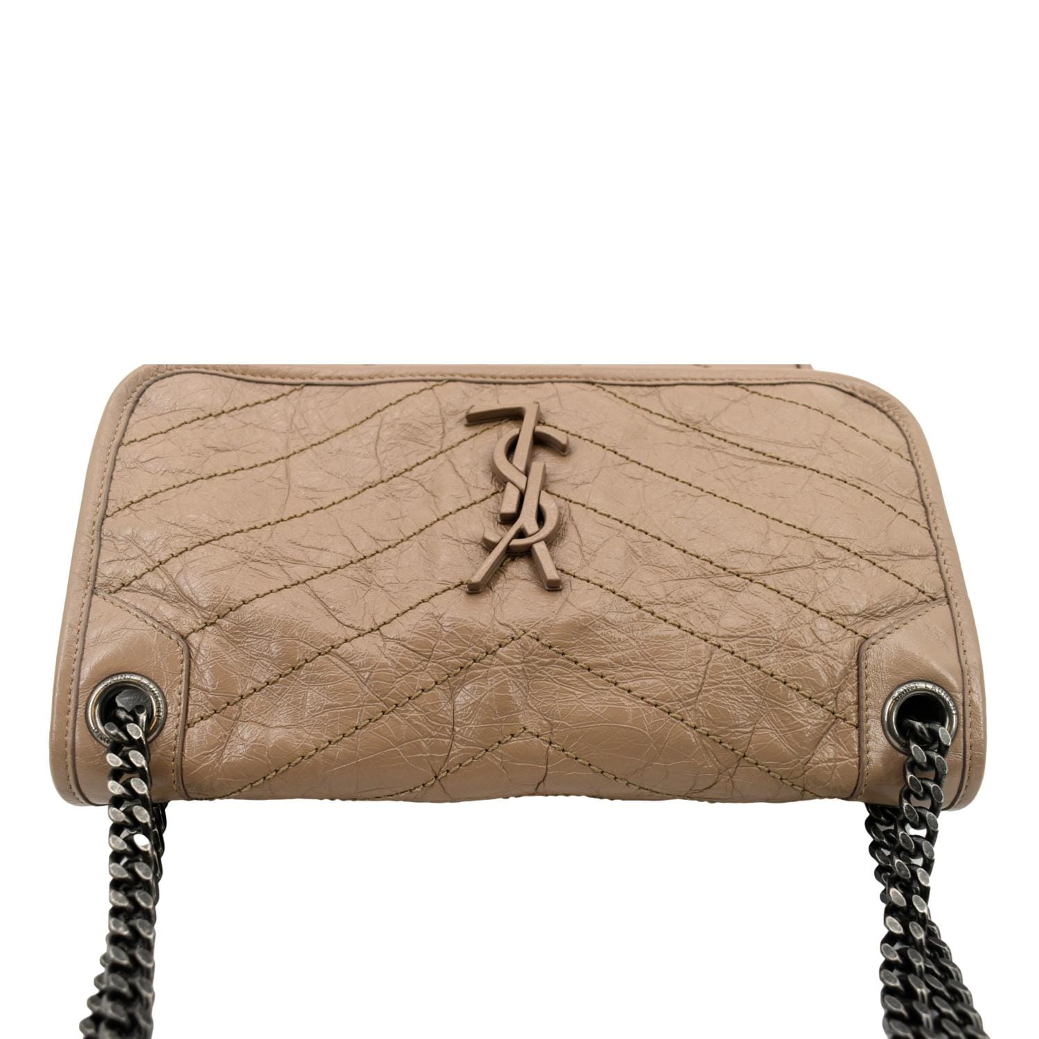 YVES SAINT LAURENT Niki Medium Leather Crossbody Bag Greyish Brown