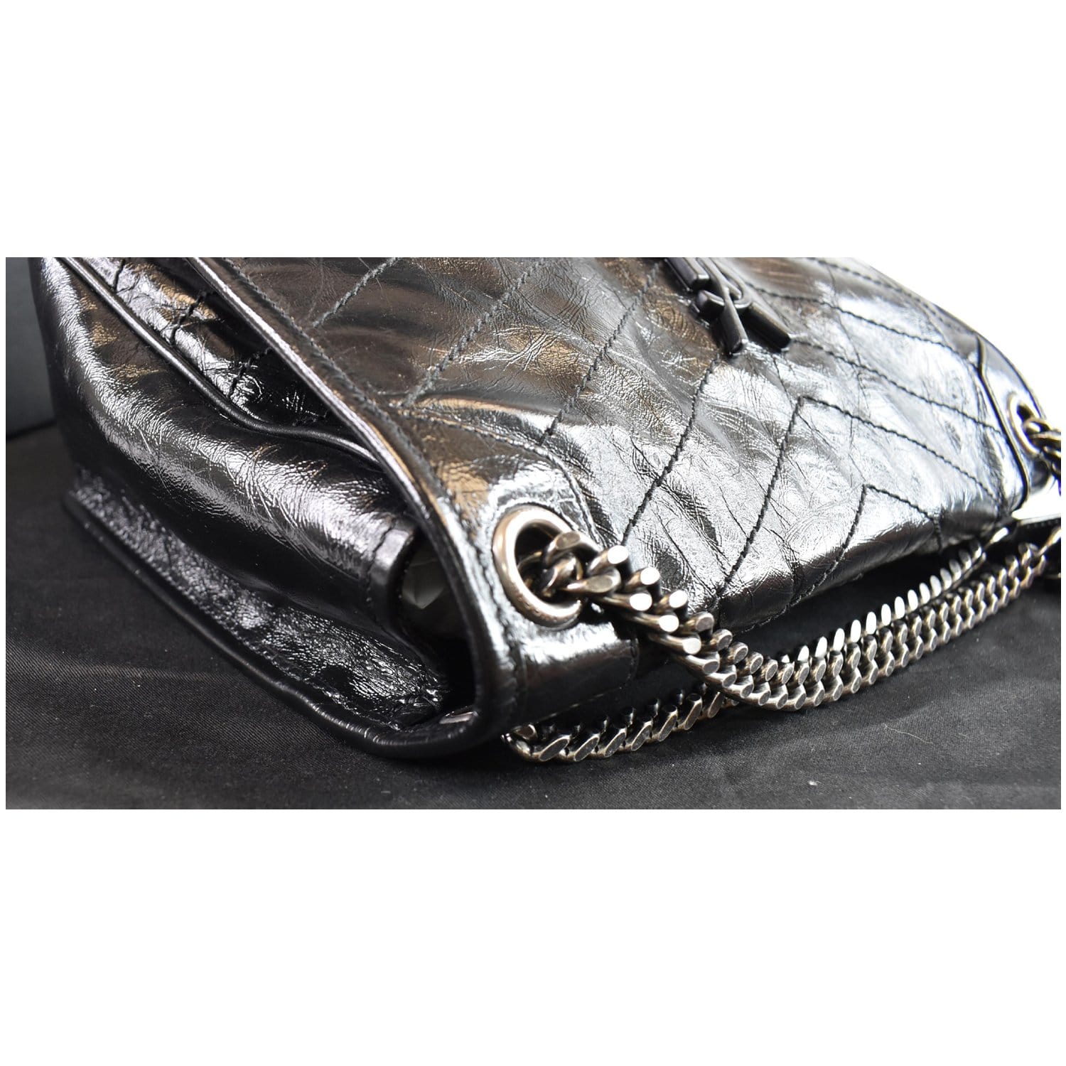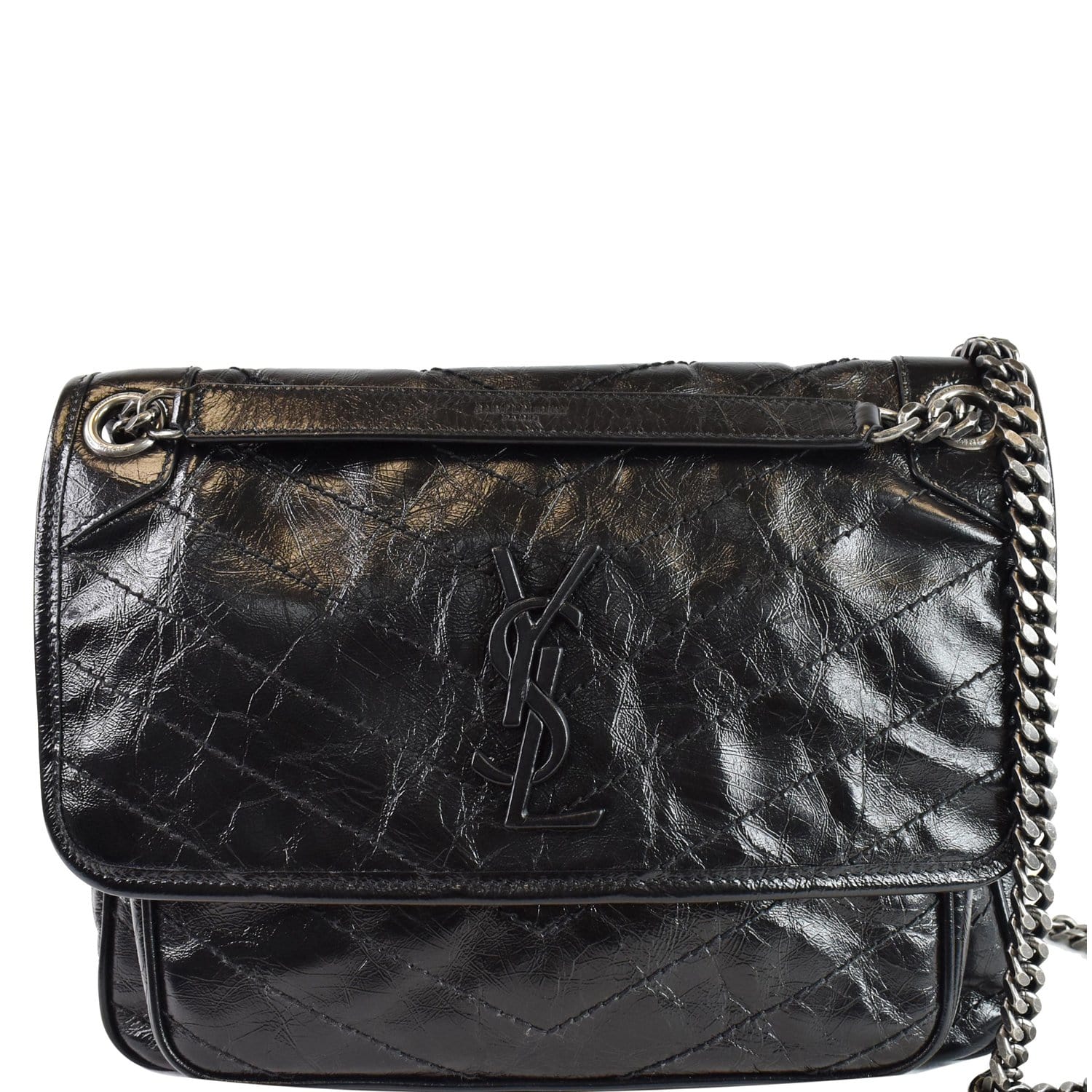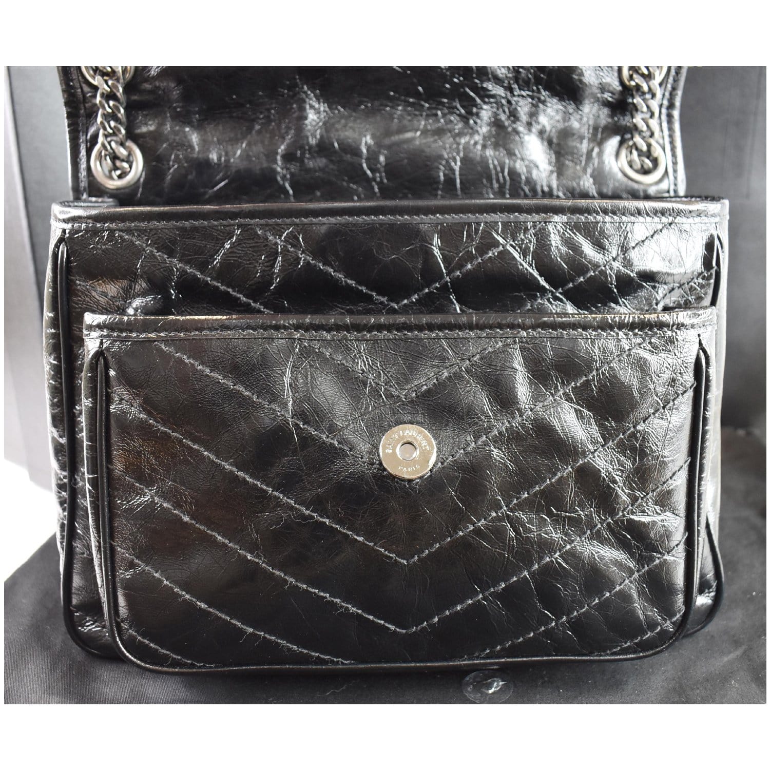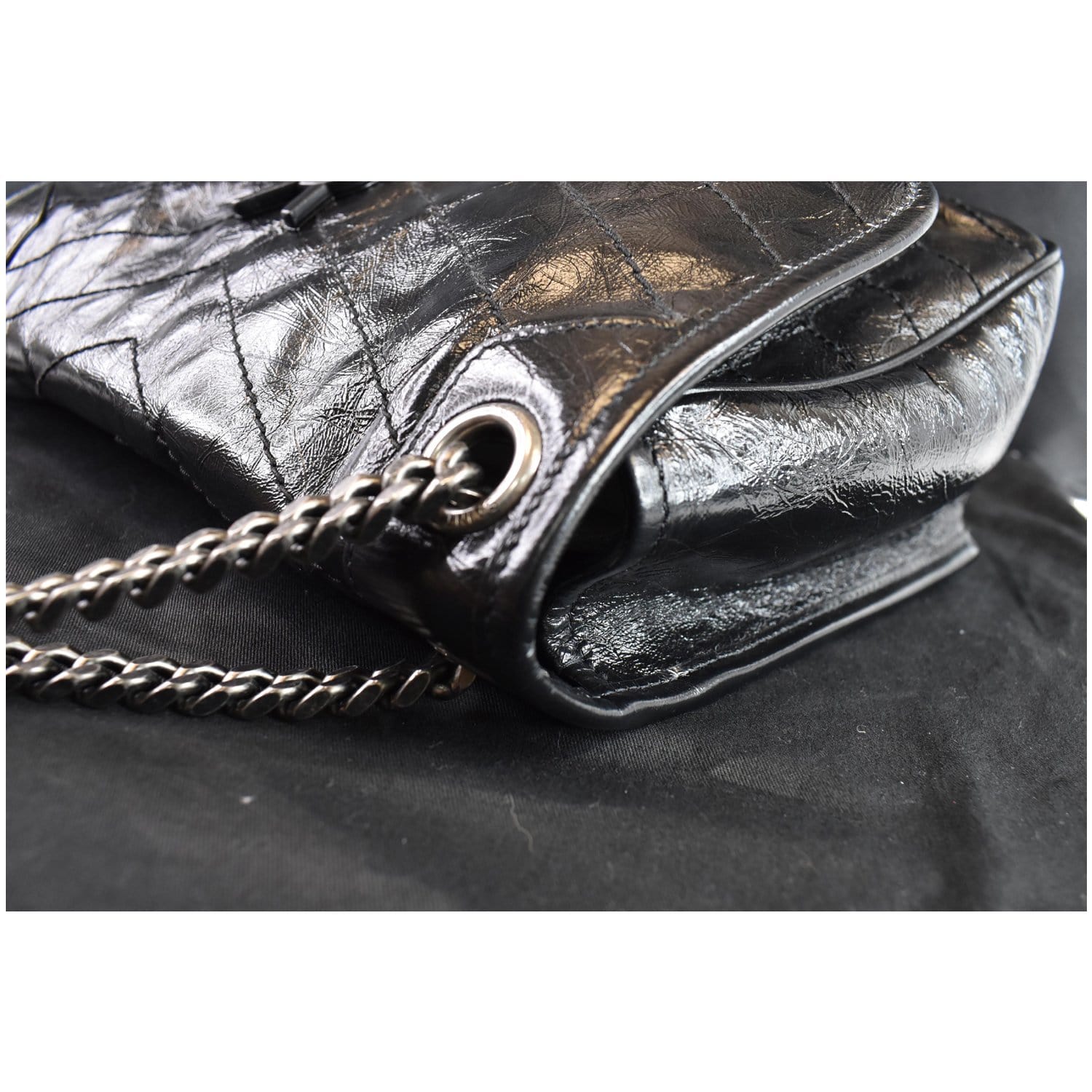 YVES SAINT LAURENT Niki Baby Crinkle Leather Crossbody Bag Black