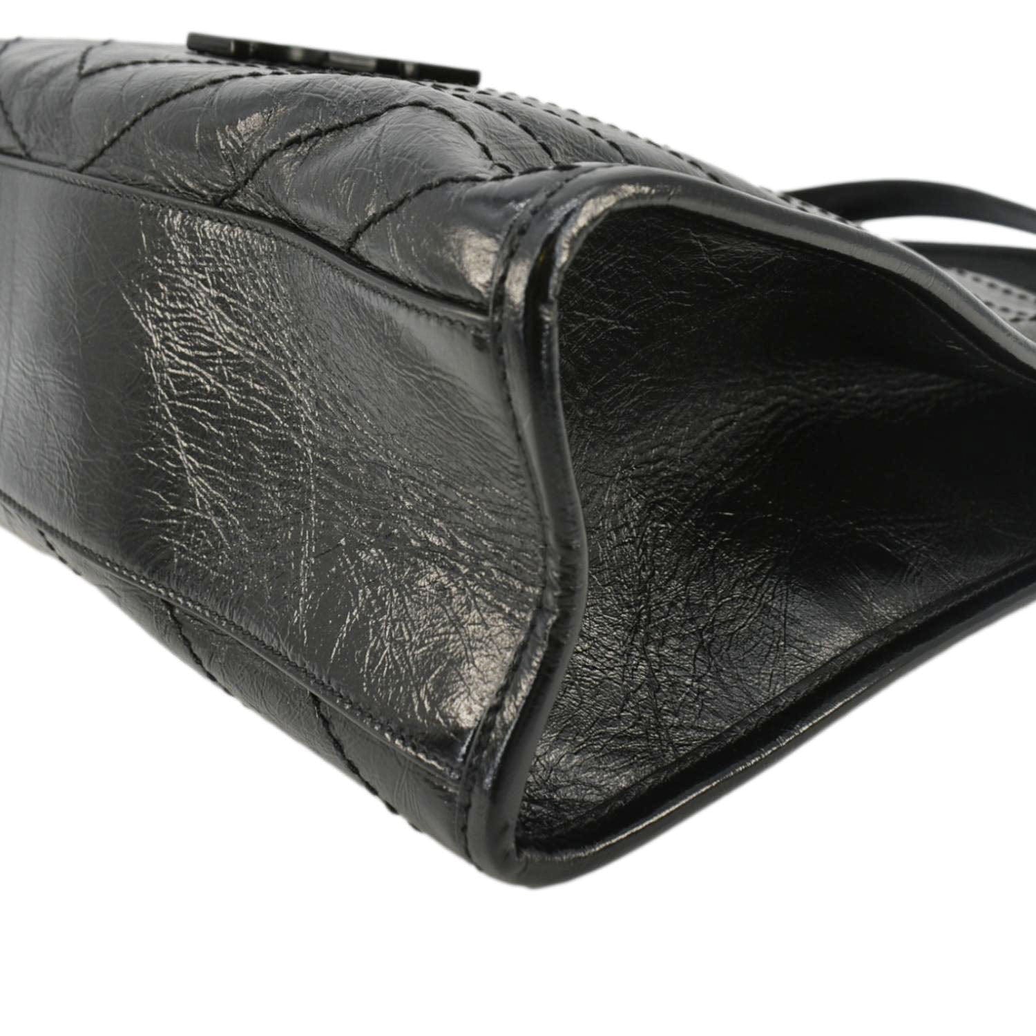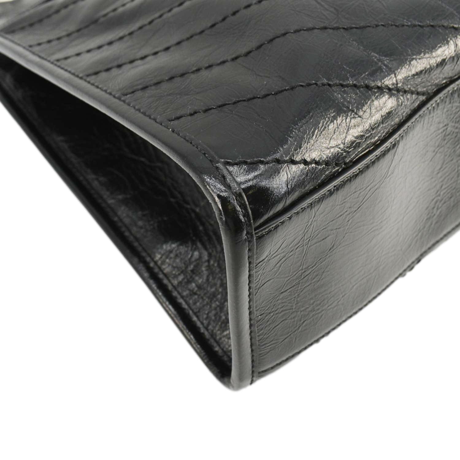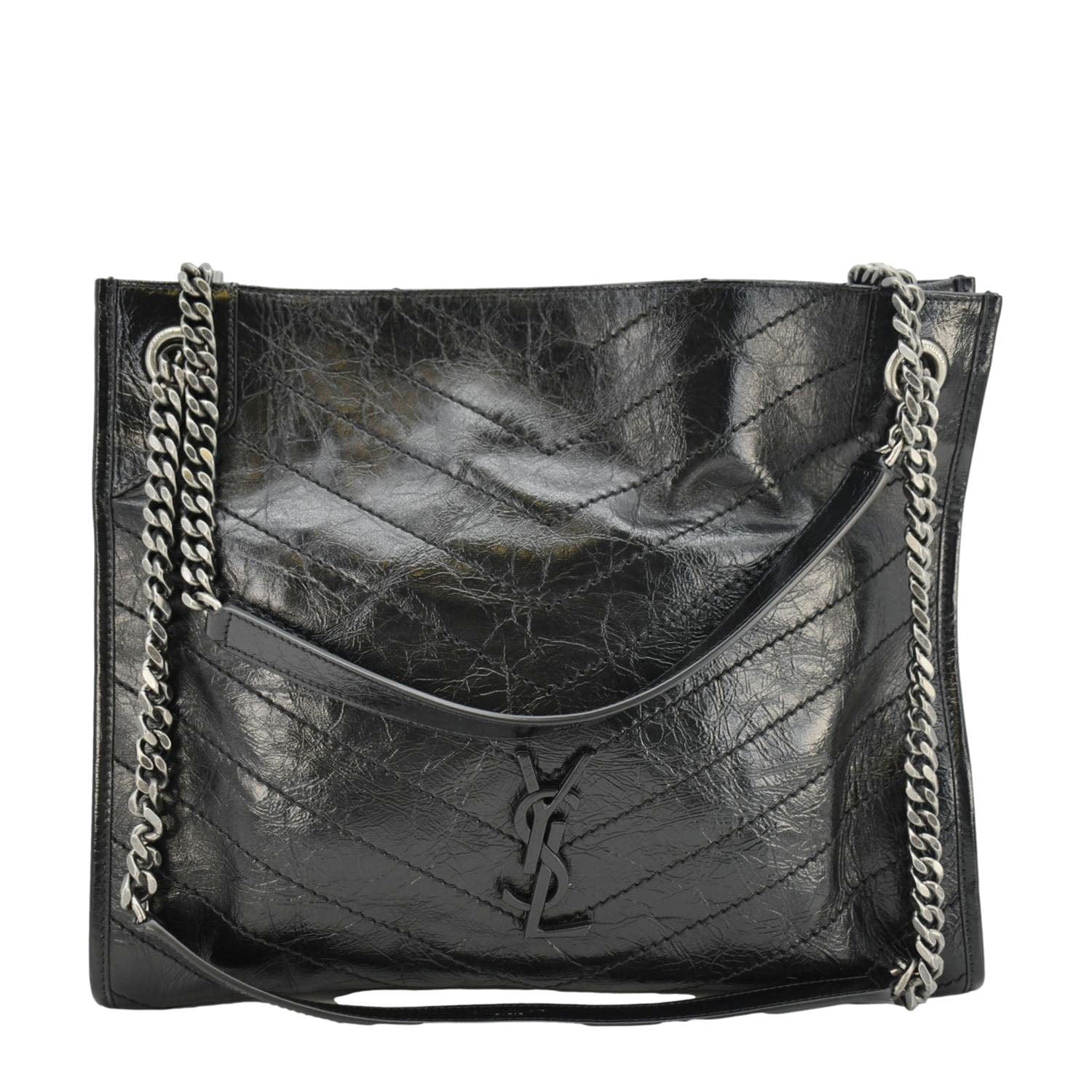 YVES SAINT LAURENT Niki Crinkle Leather Shopper Tote Bag Black