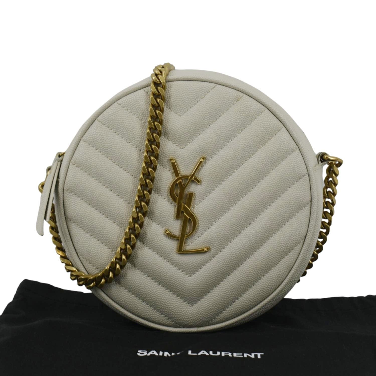 The Yves Saint Laurent Round Purse is a chic statement piece—its sleek design and premium craftsmanship exude sophistication. Elevate your style effortlessly with this iconic accessory.