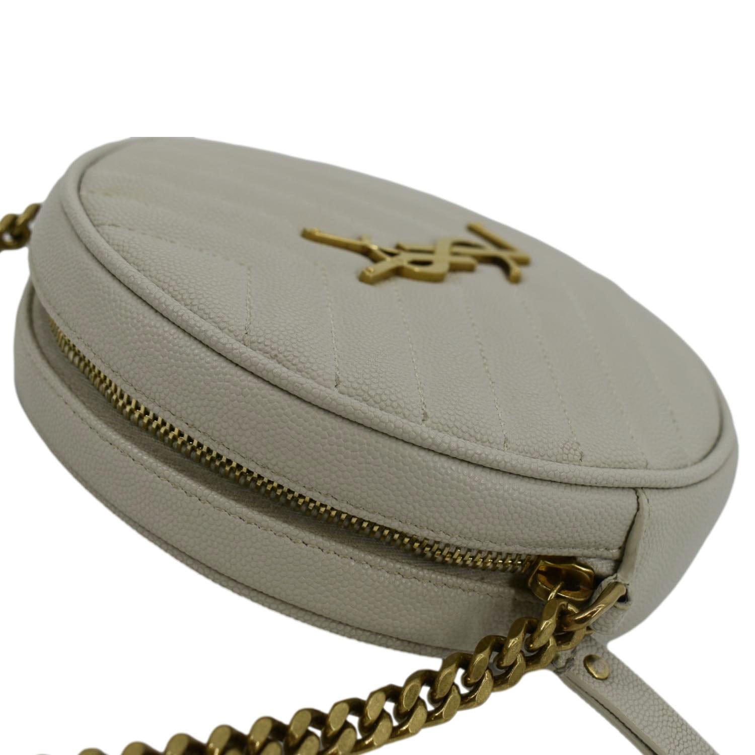 YVES SAINT LAURENT Vinyle Round Chevron Leather Camera Crossbody Bag Grey