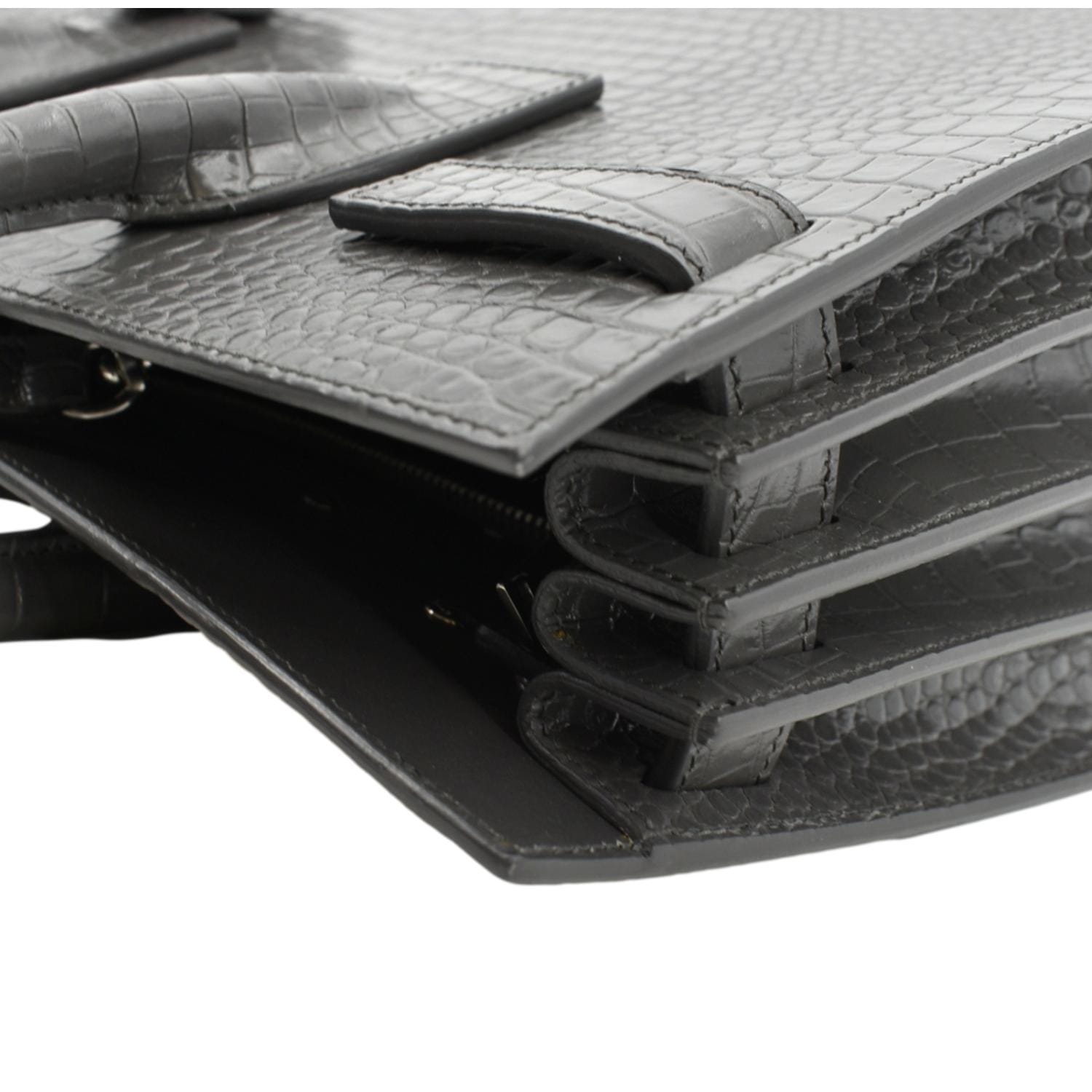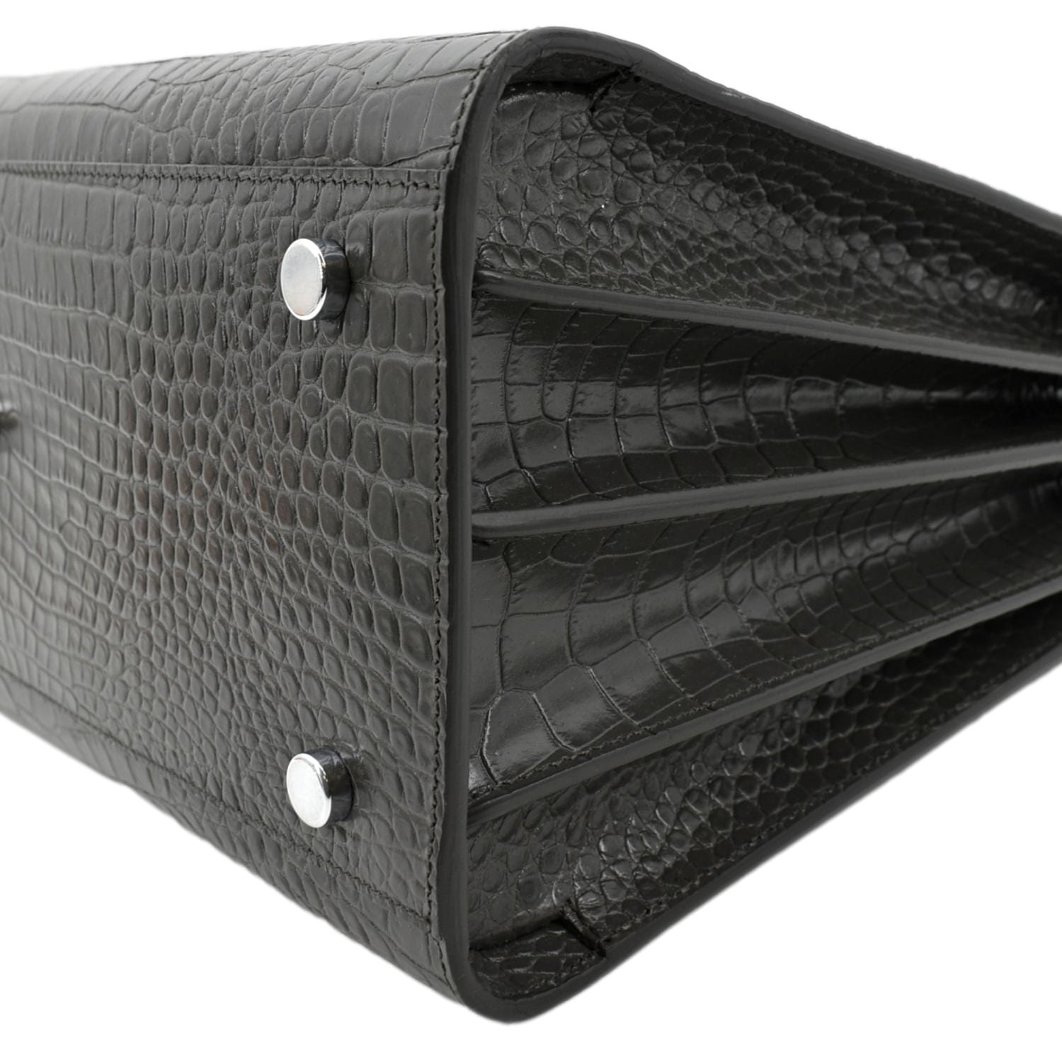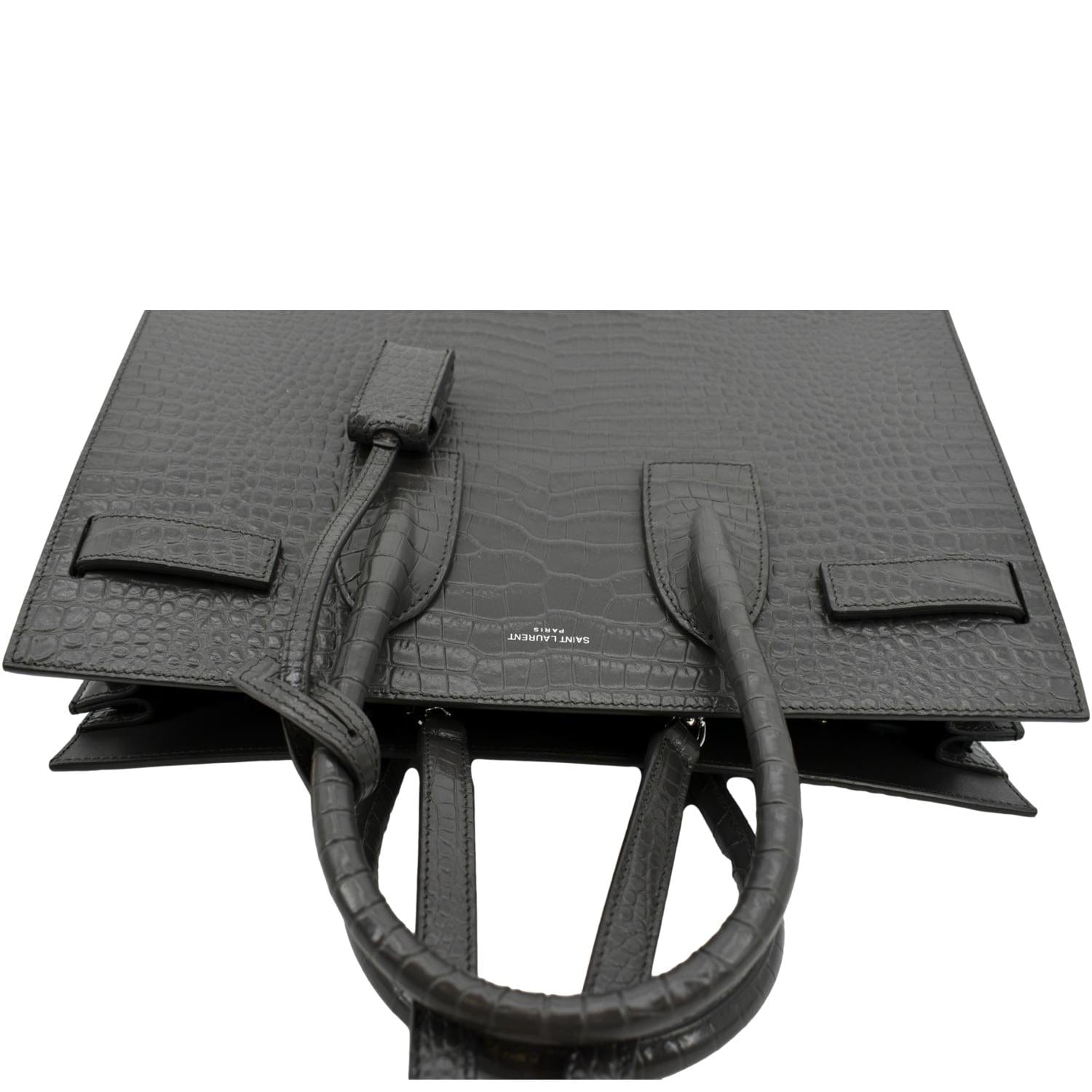 YVES SAINT LAURENT Sac de Jour Crocodile-Embossed Satchel Bag Grey