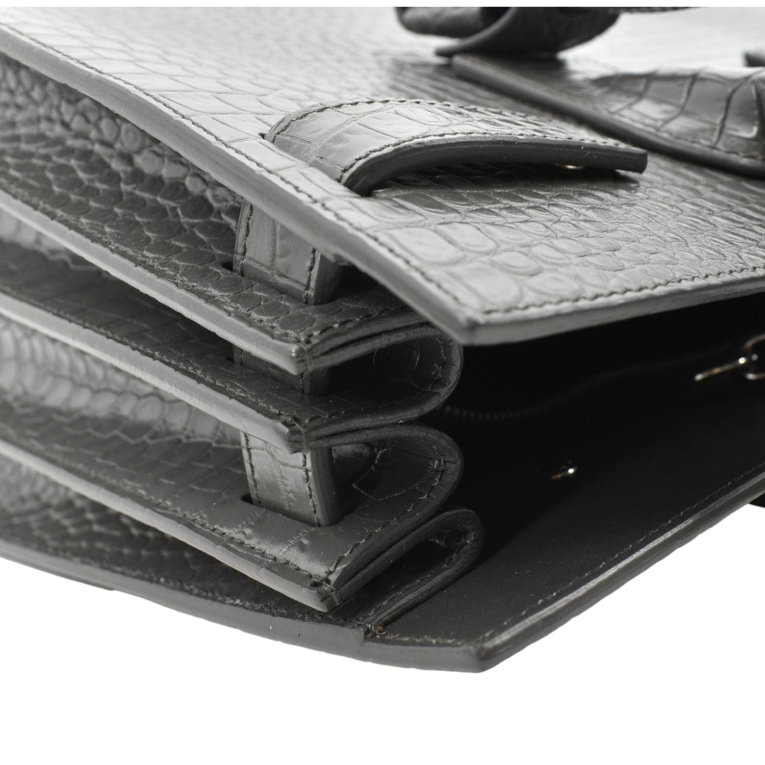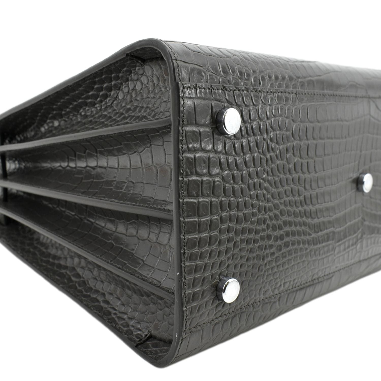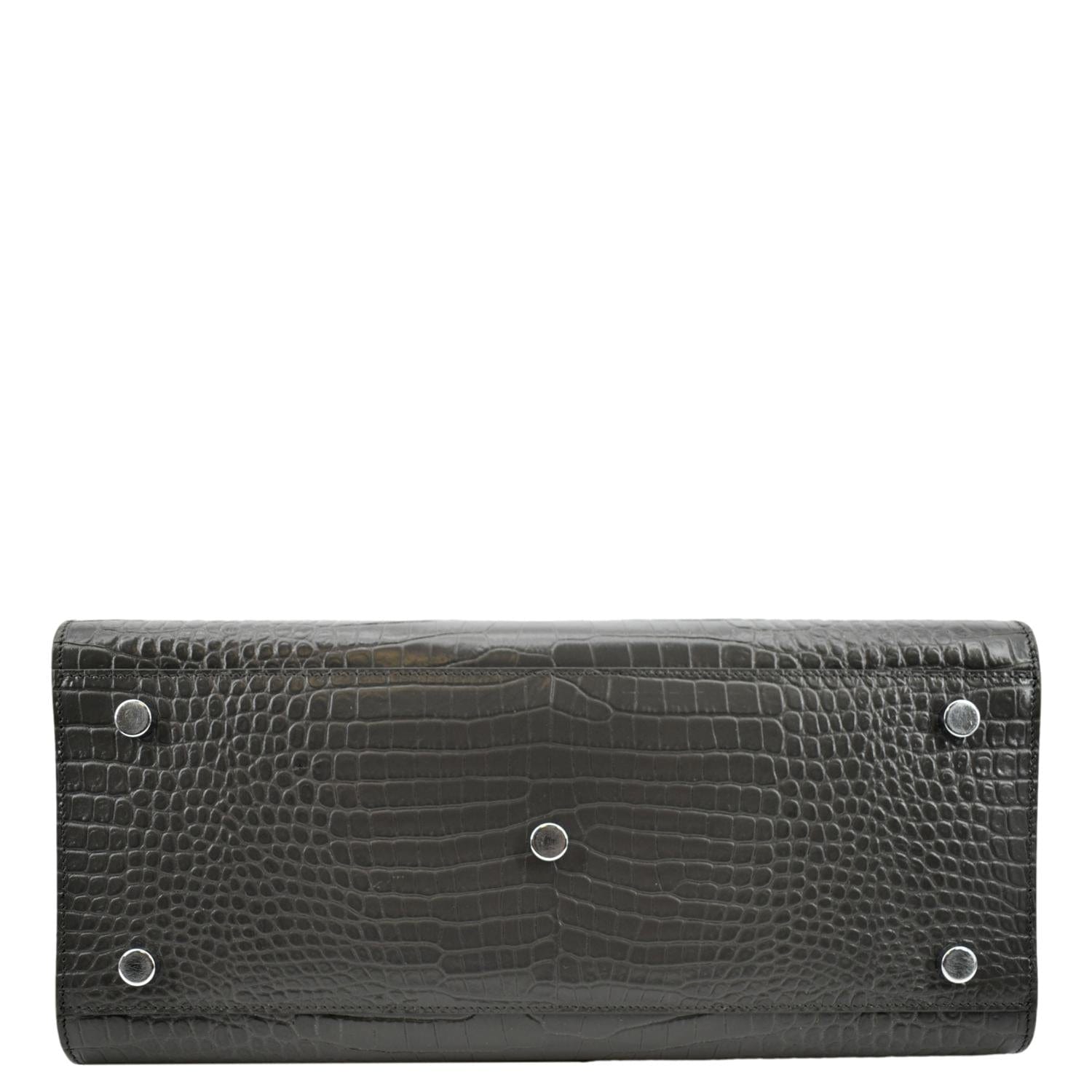 YVES SAINT LAURENT Sac de Jour Crocodile-Embossed Satchel Bag Grey