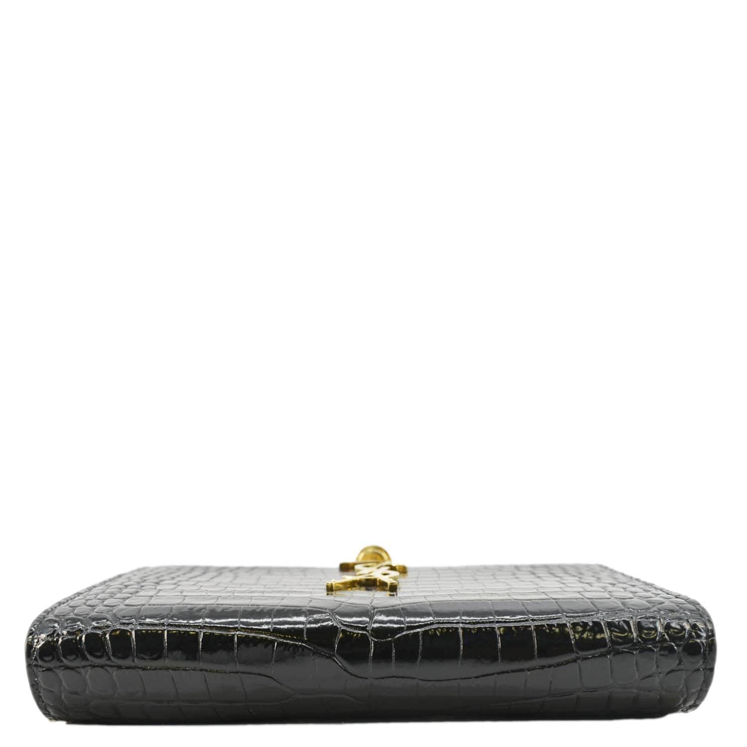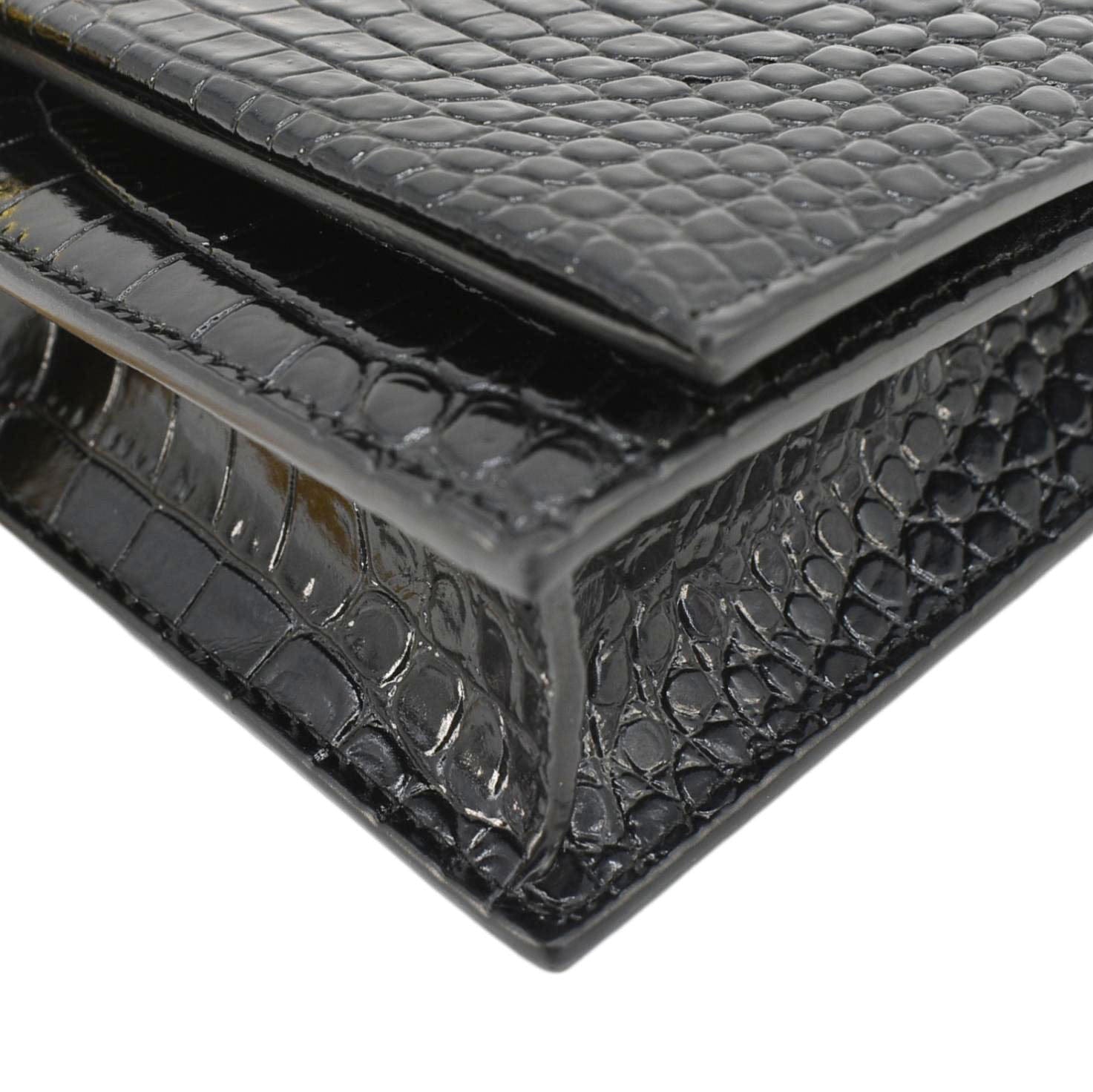YVES SAINT LAURENT Crocodile Embossed Leather Crossbody Bag in Black