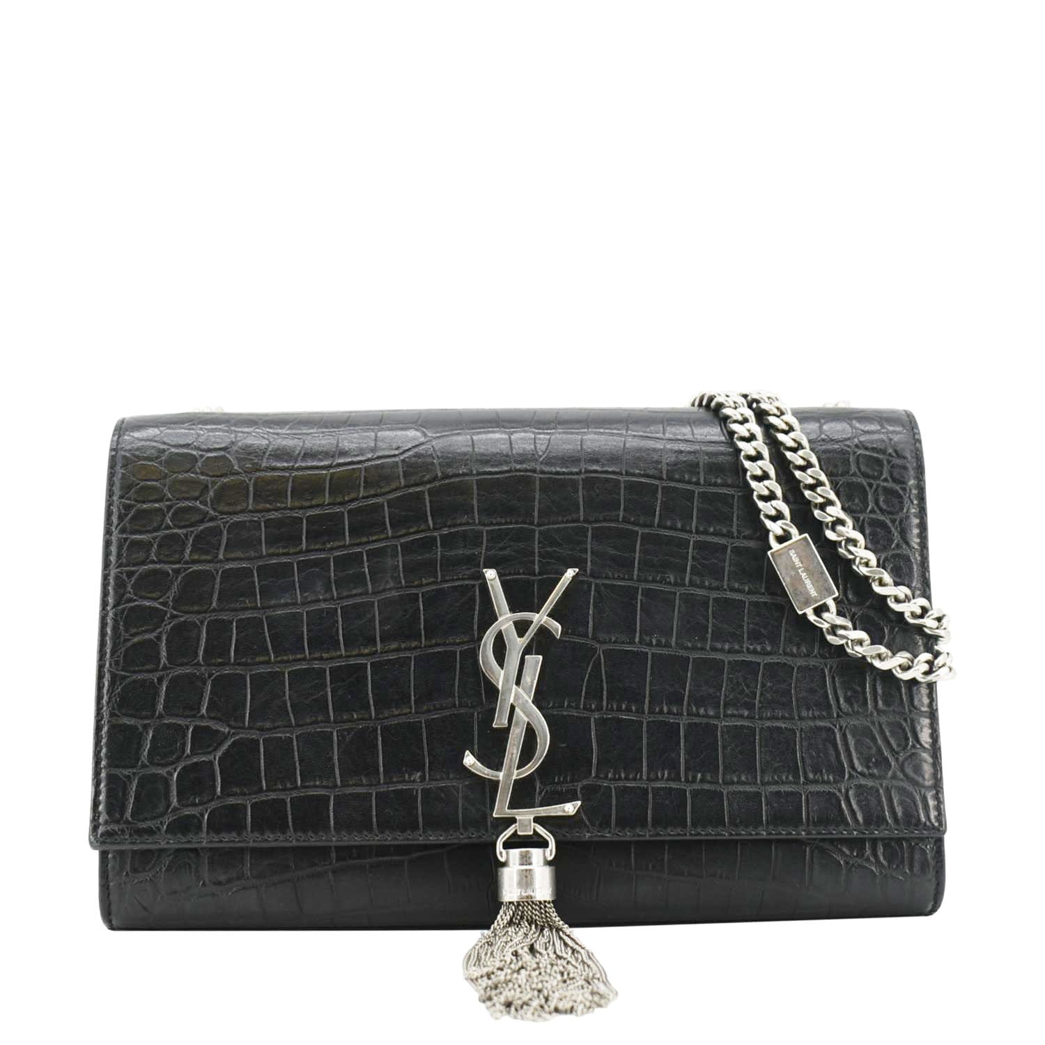 YSL Kate Tassel Crocodile Leather Black Crossbody Bag
