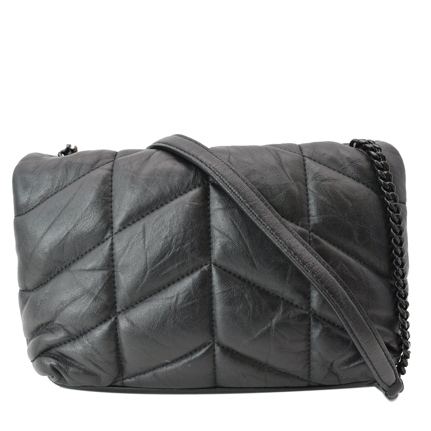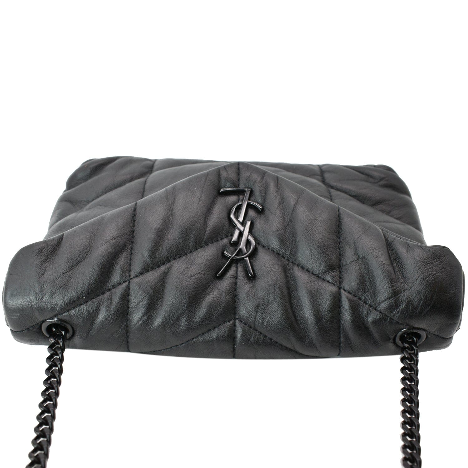YVES SAINT LAURENT Small Loulou Puffer Quilted Lambskin Leather Crossbody Bag Black