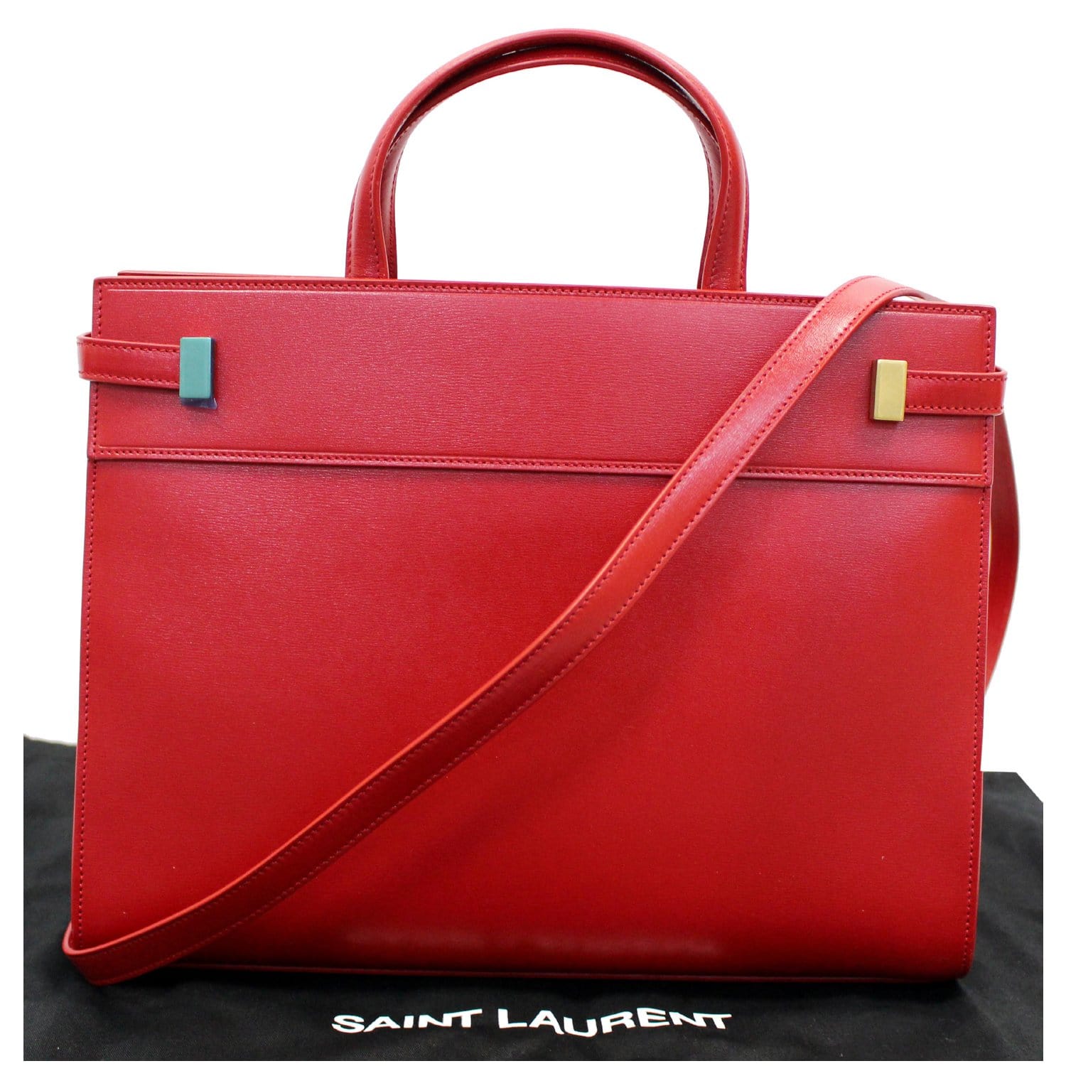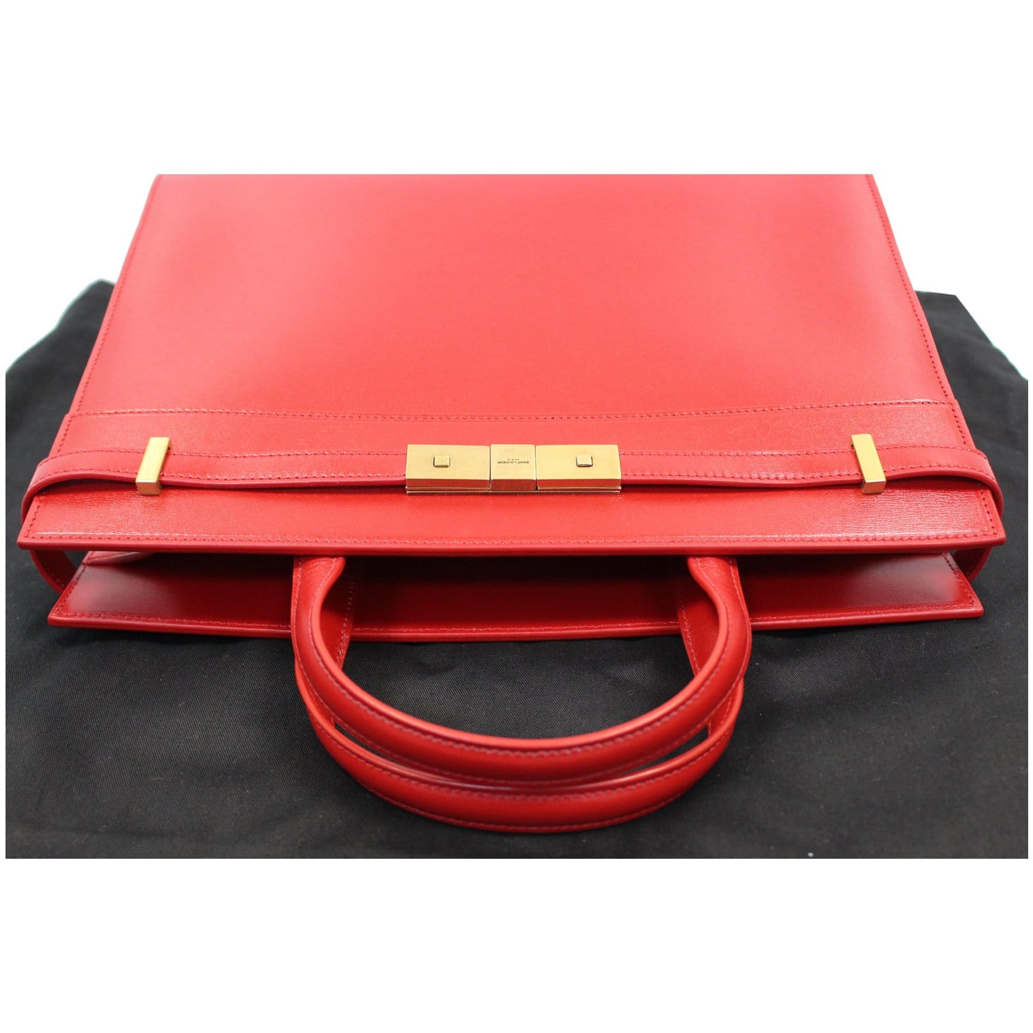 YVES SAINT LAURENT Small Manhattan Calfskin Leather Shopper Tote Bag Red - Last Call
