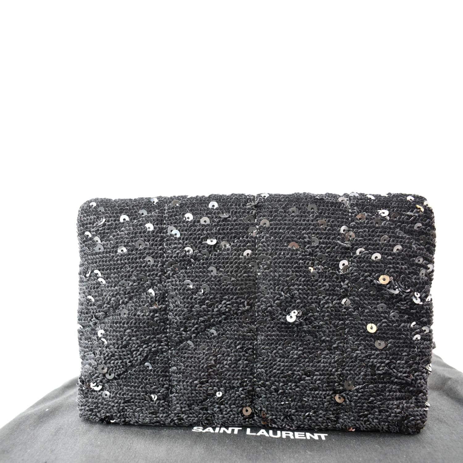 YVES SAINT LAURENT Small Puffer Sequin Clutch Wallet Black - sold