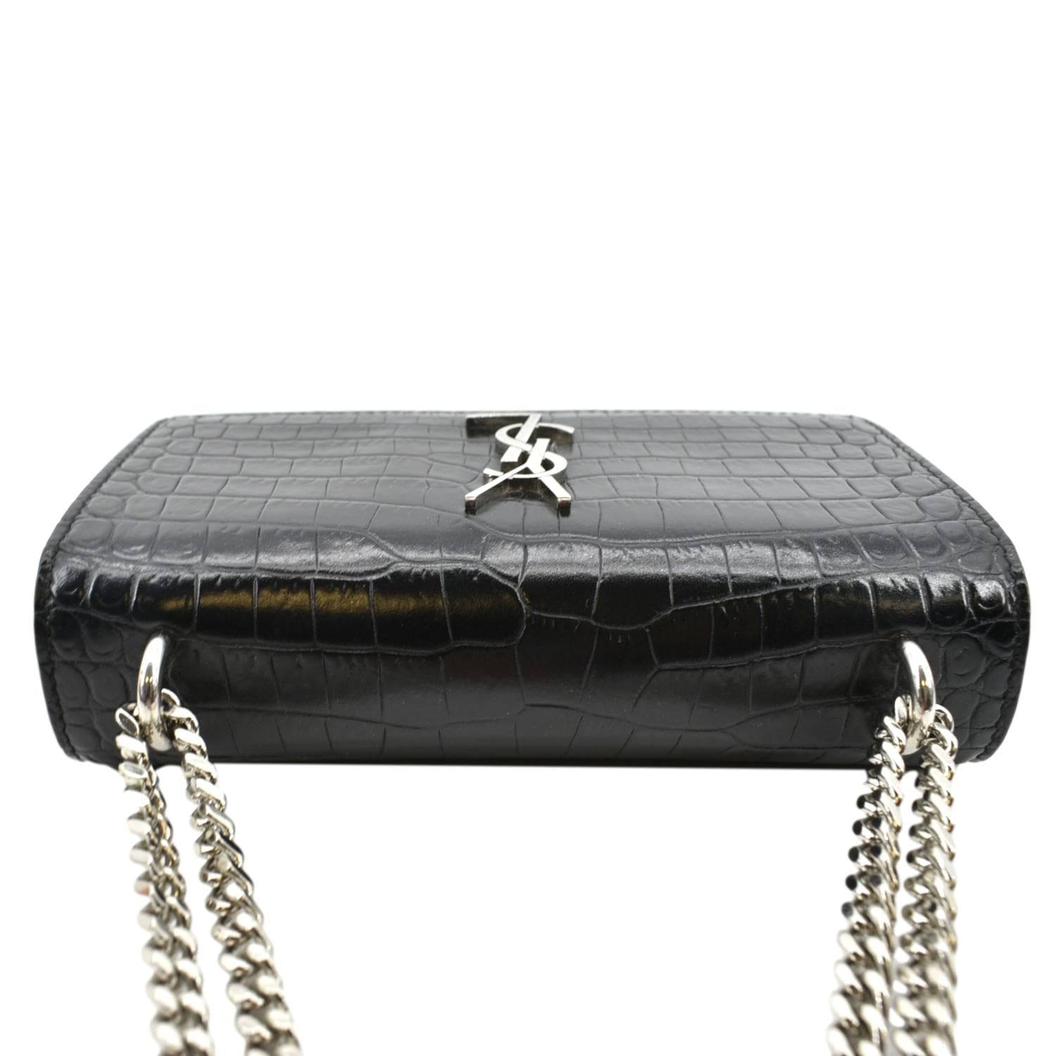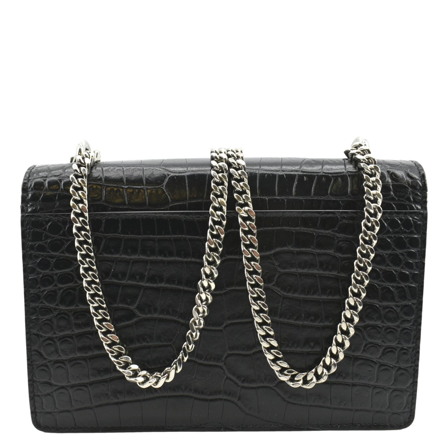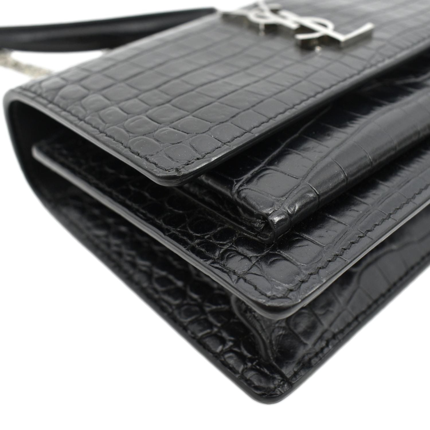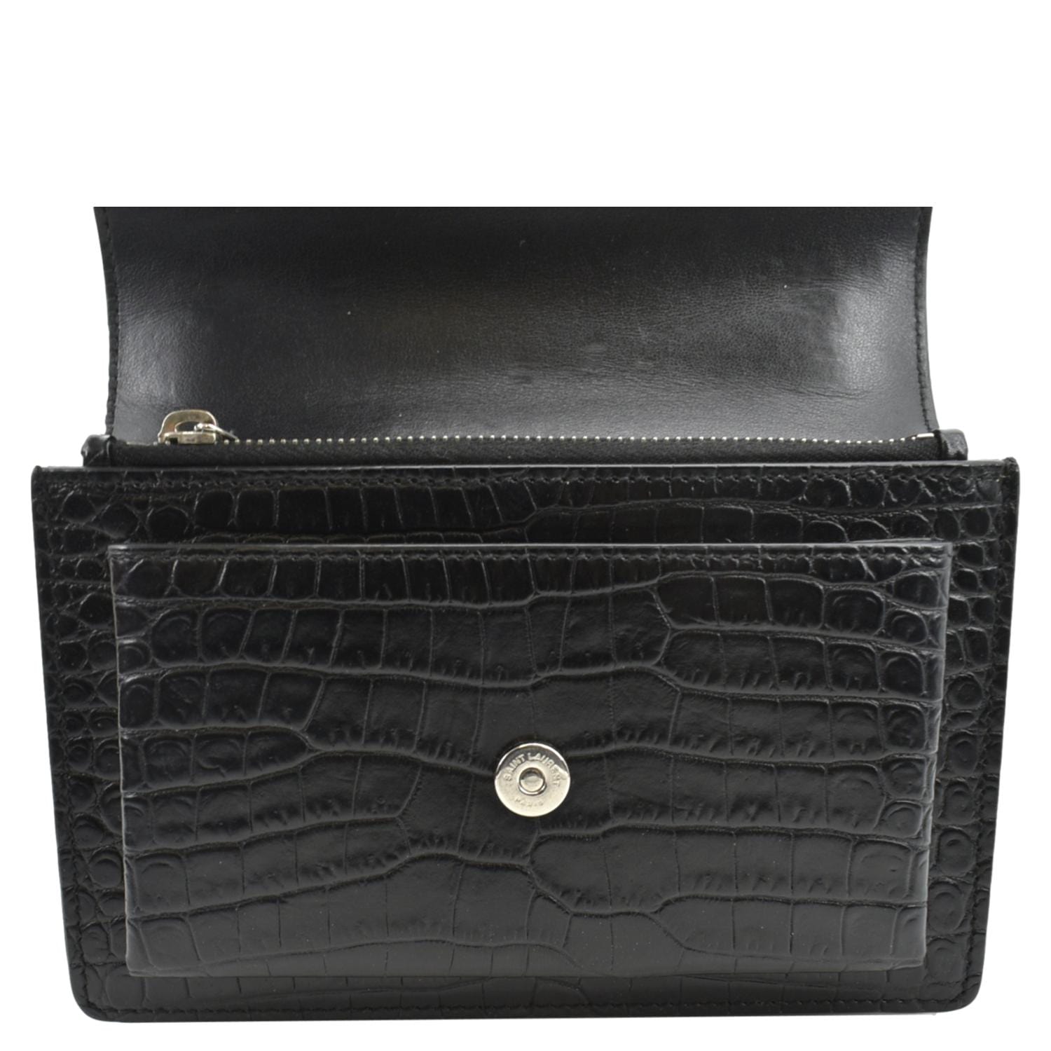 YVES SAINT LAURENT Sunset Crocodile Leather Crossbody Bag Black