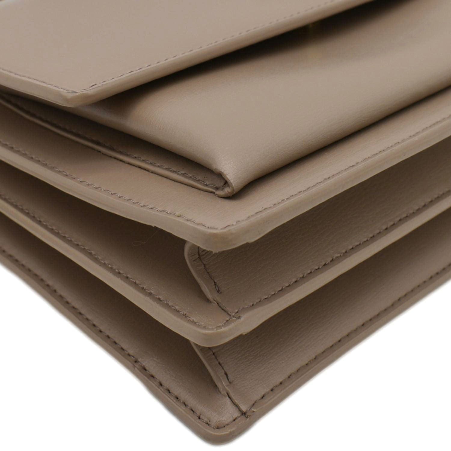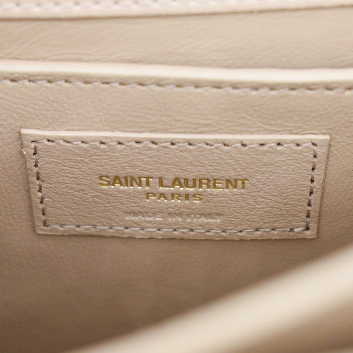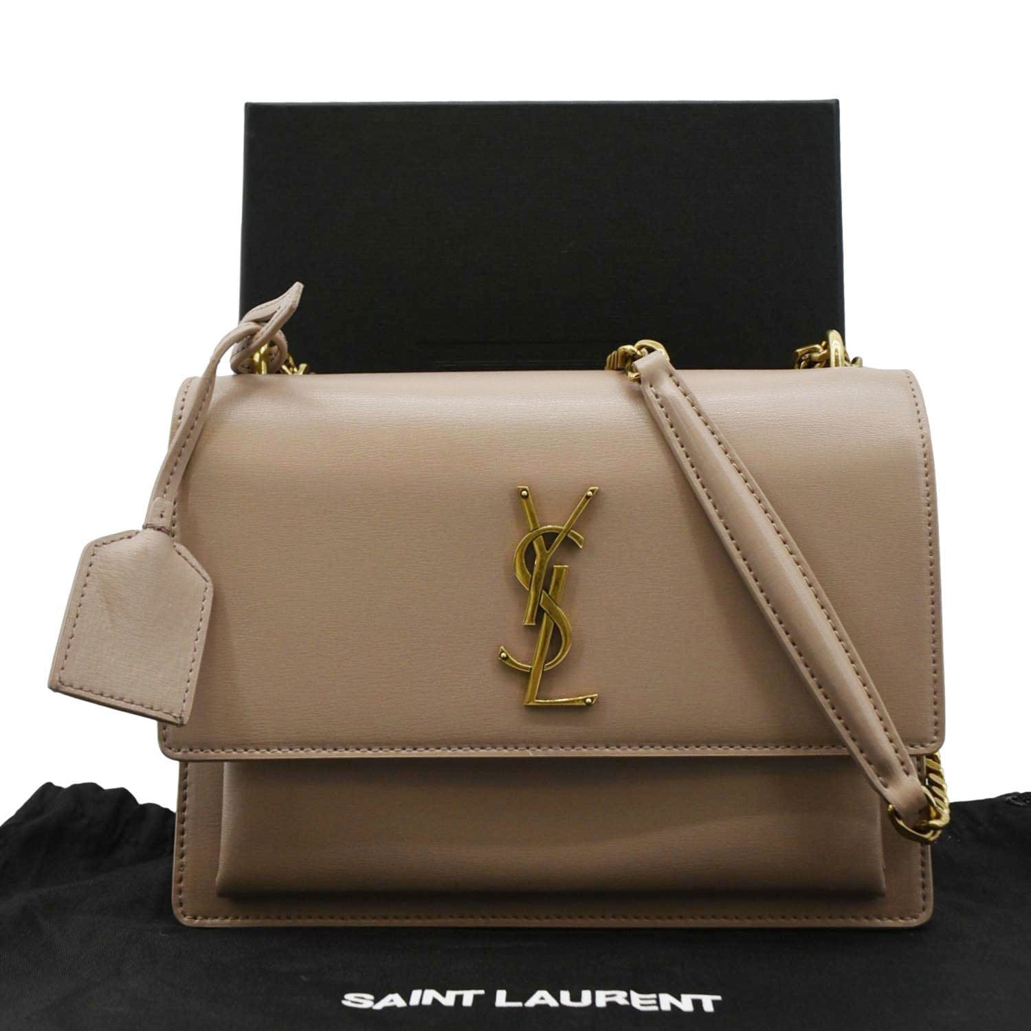 Elevate your elegance with the YVES SAINT LAURENT Monogram Sunset Medium Leather Shoulder Bag in sophisticated beige, featuring the iconic YSL monogram for a chic and versatile accessory.