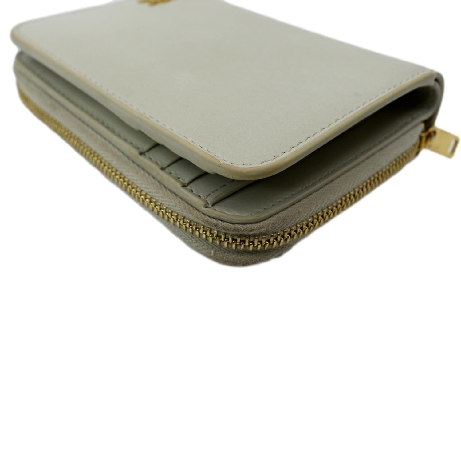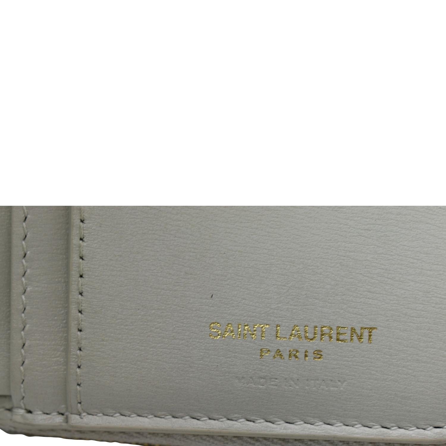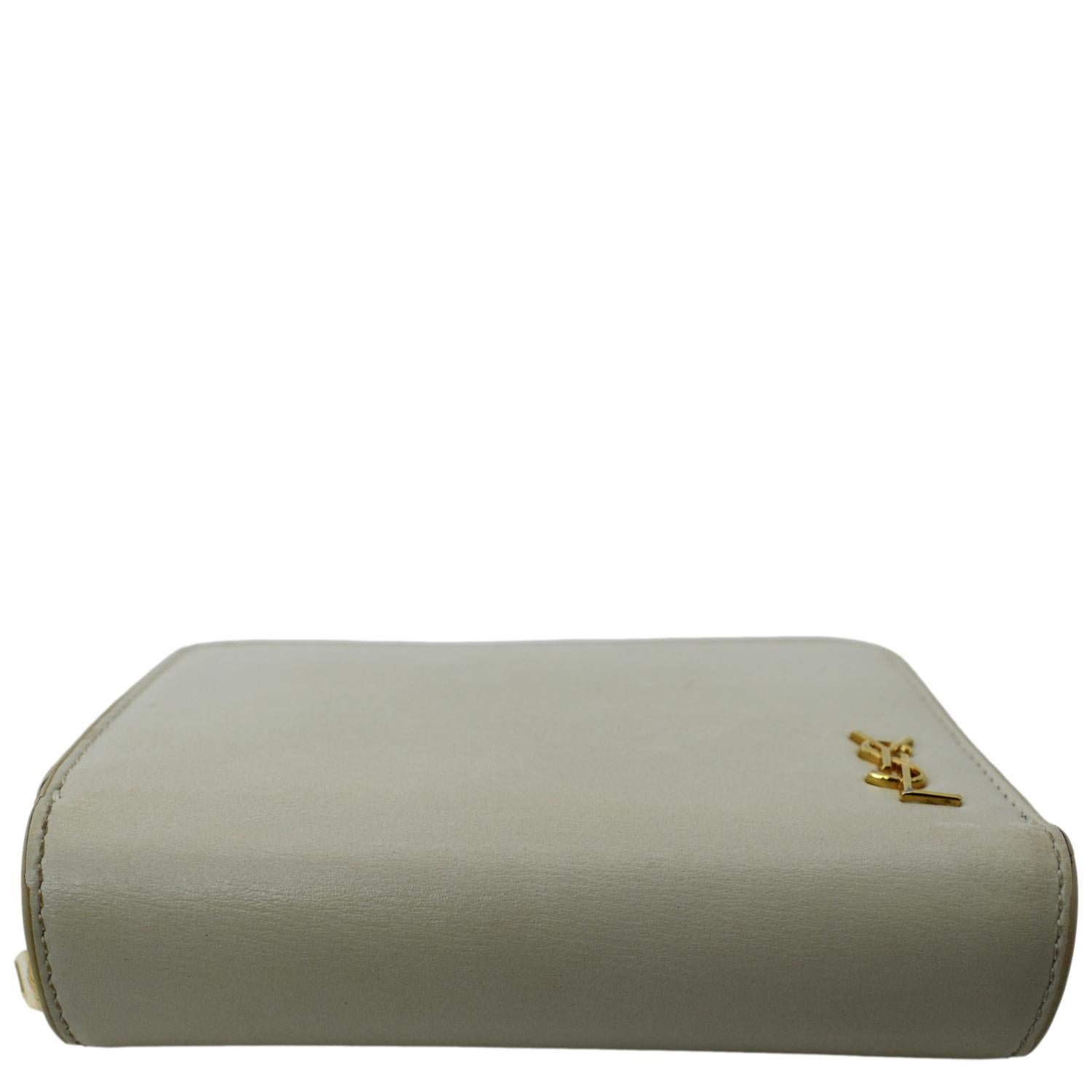 YVES SAINT LAURENT Tiny Monogram Compact Leather Zip Around Wallet White
