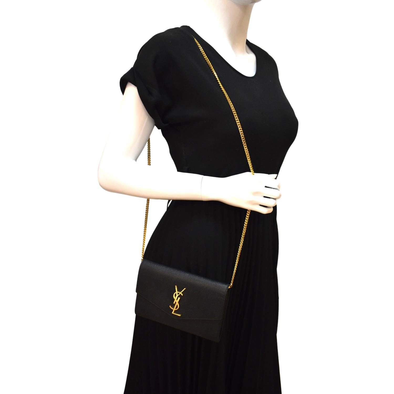 YVES SAINT LAURENT Uptown Leather Crossbody Chain Wallet Black