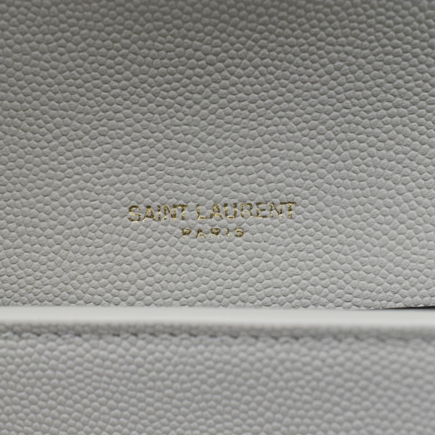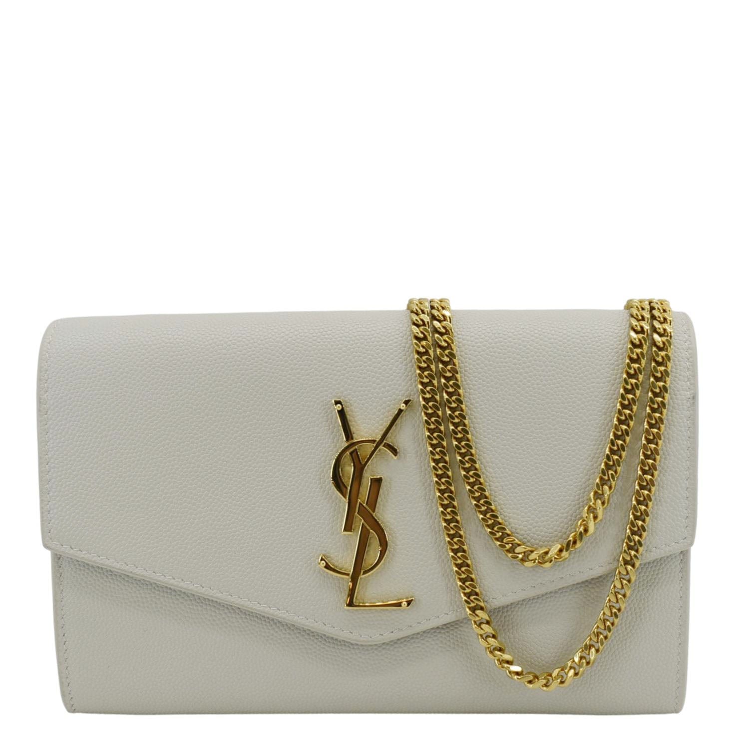 YVES SAINT LAURENT Uptown Grain De Poudre Embossed Leather Chain Wallet White
