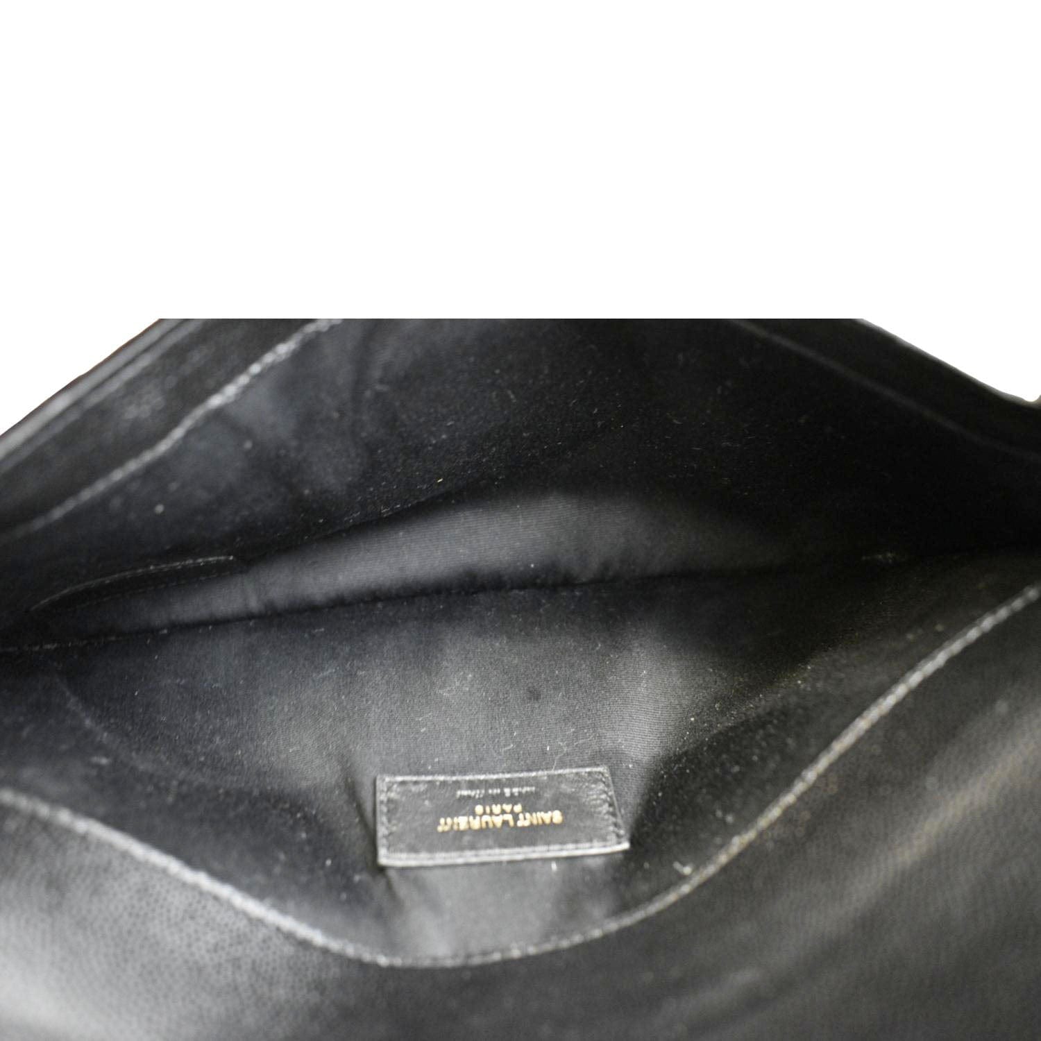 YVES SAINT LAURENT Uptown Envelope Grain De Poudre Leather Clutch Black