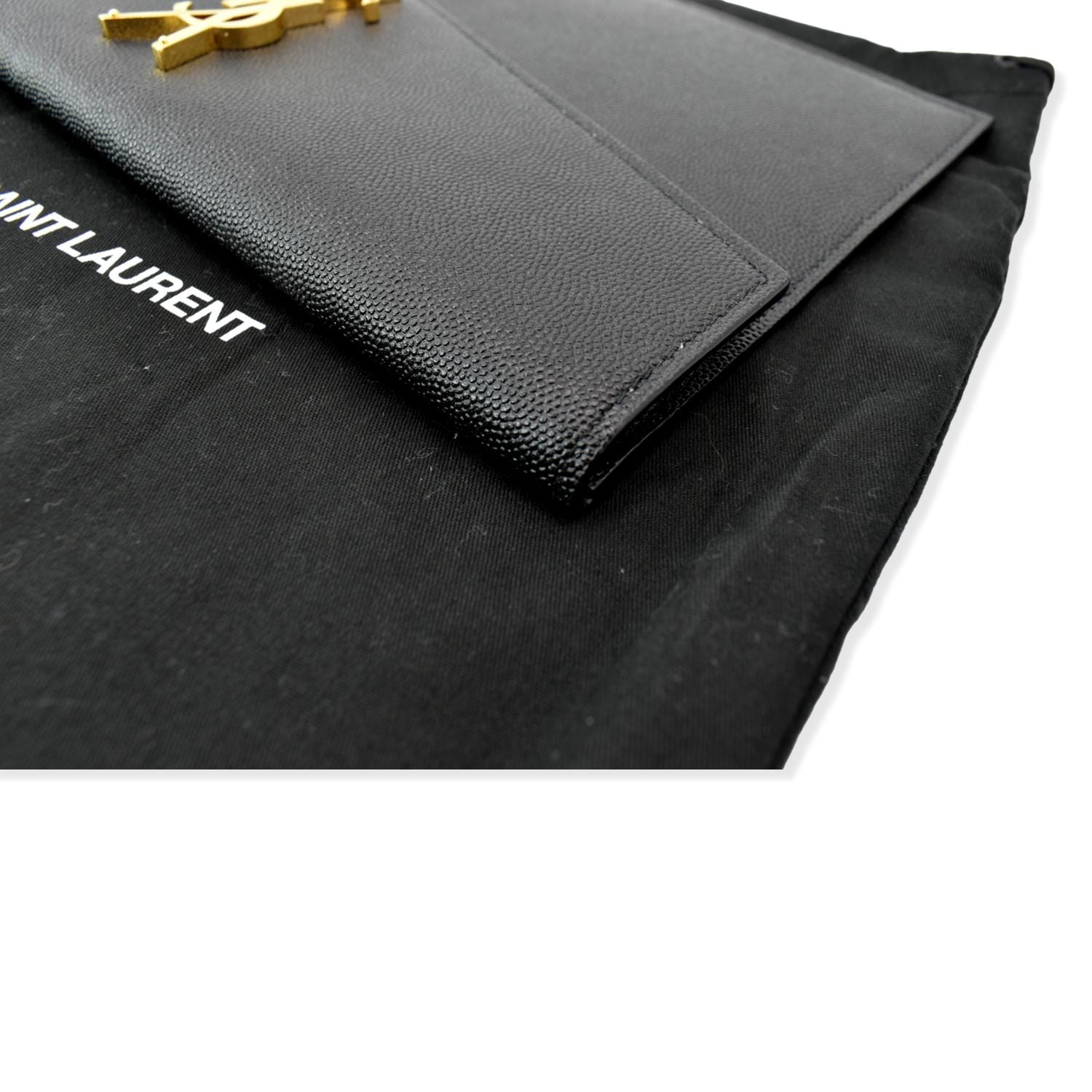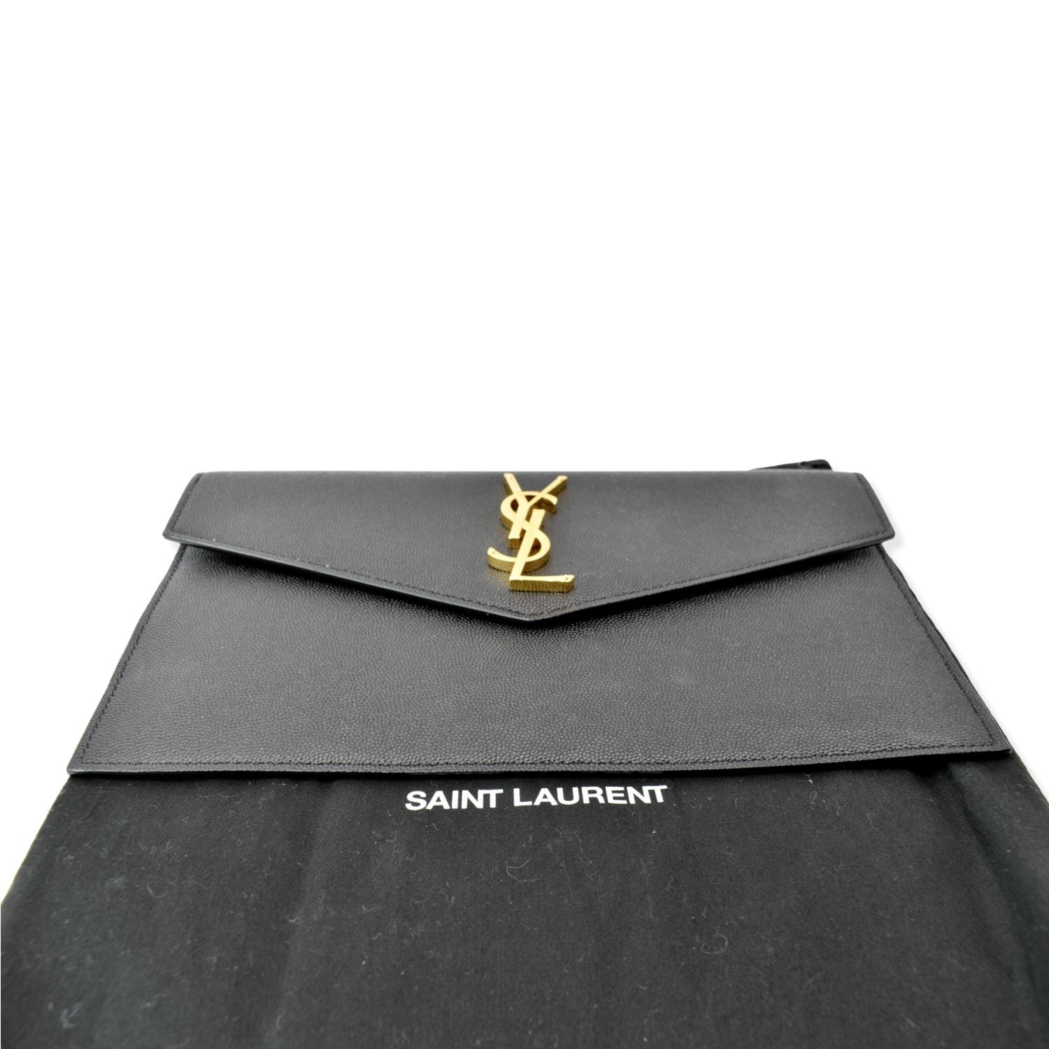 YVES SAINT LAURENT Uptown Envelope Grain De Poudre Leather Clutch Black