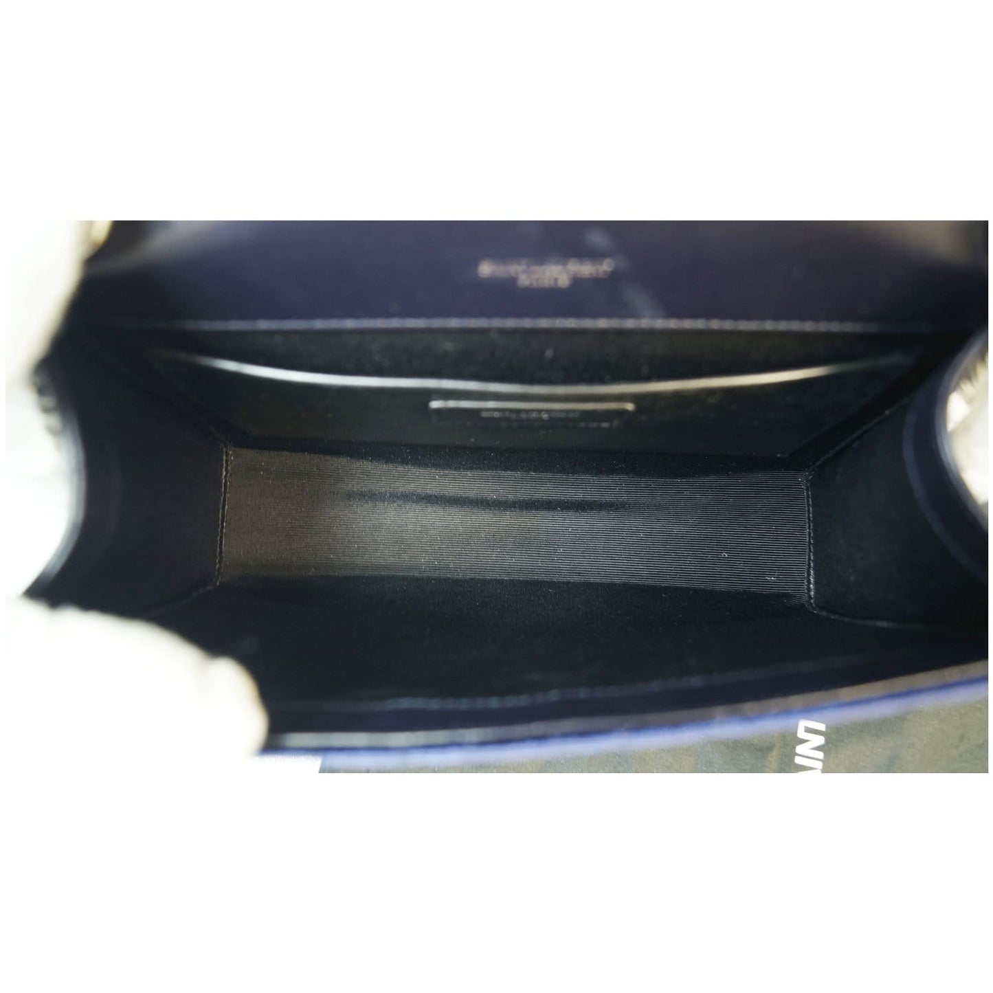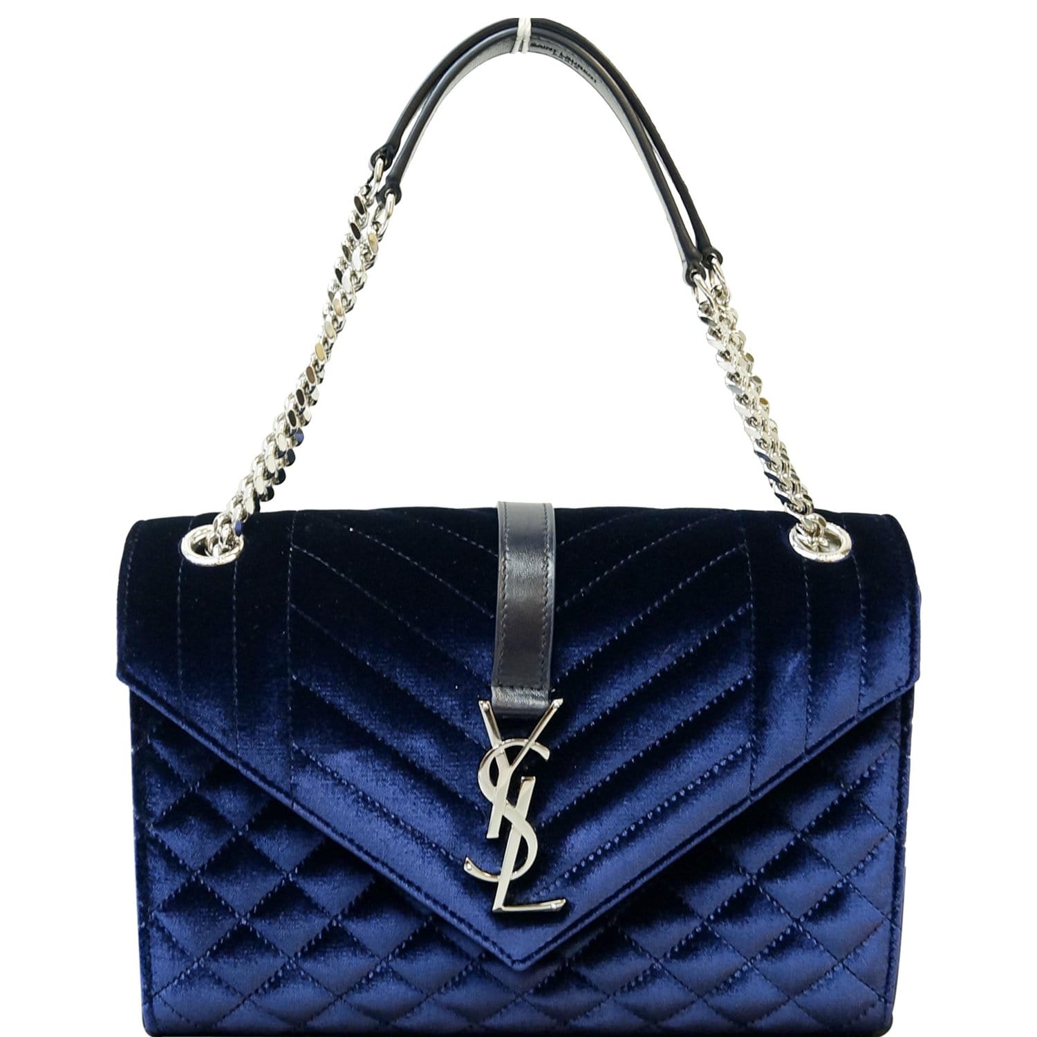 YVES SAINT LAURENT V Flap Tri-Quilt Velvet Shoulder Bag Navy Blue