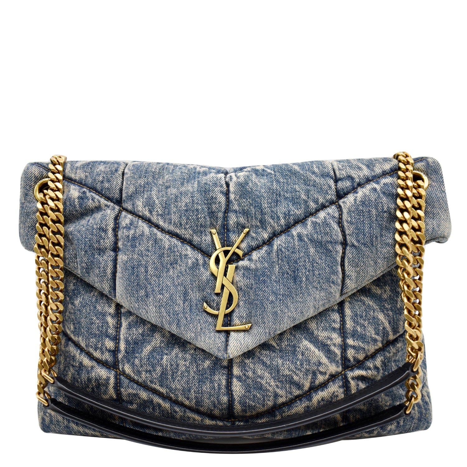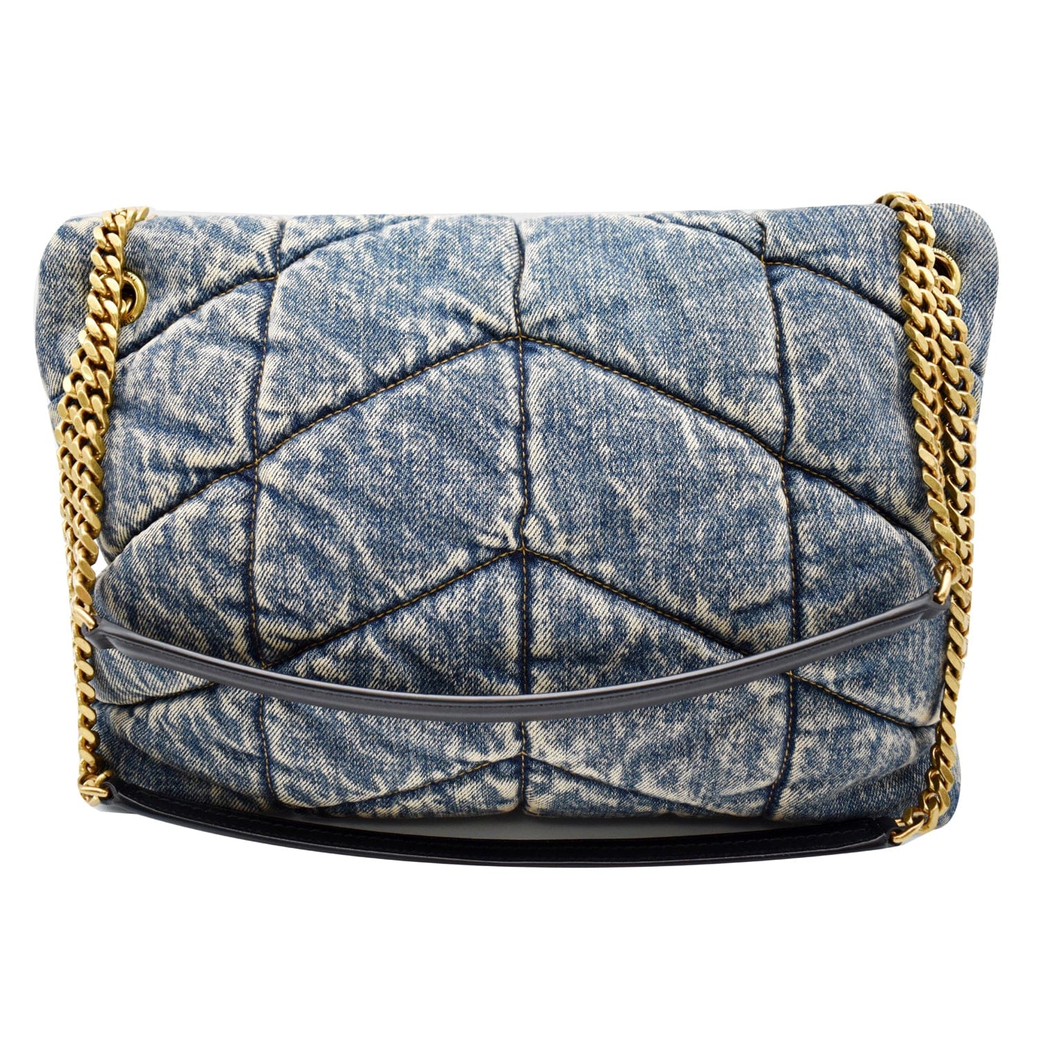 YVES SAINT LAURENT Vintage Puffer Medium Denim Canvas Shoulder Bag Blue