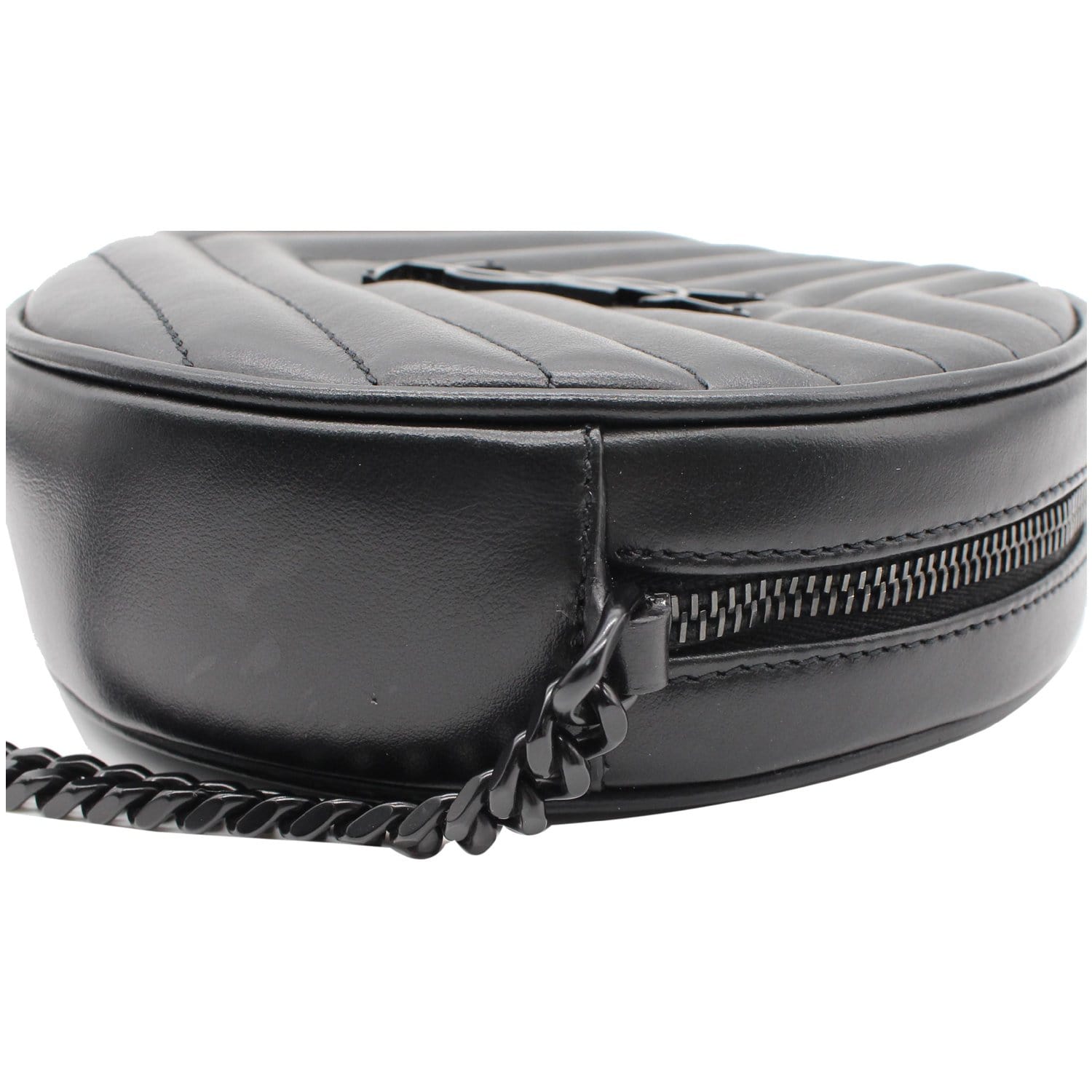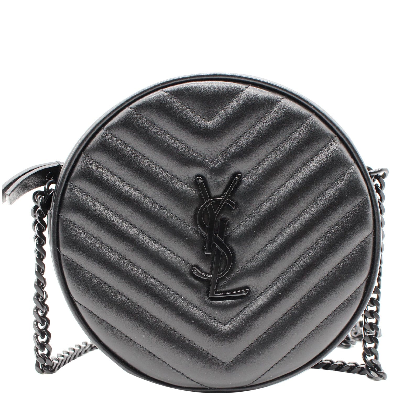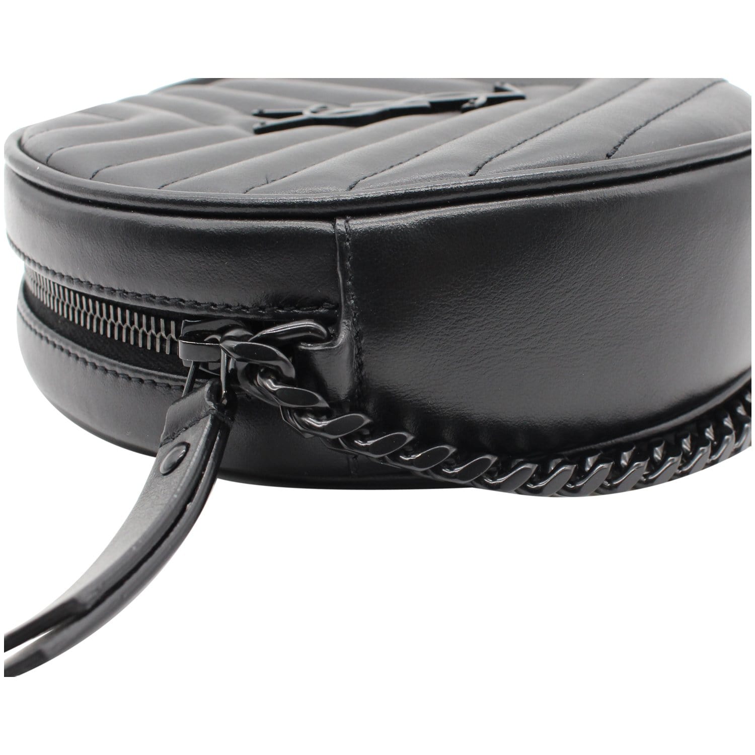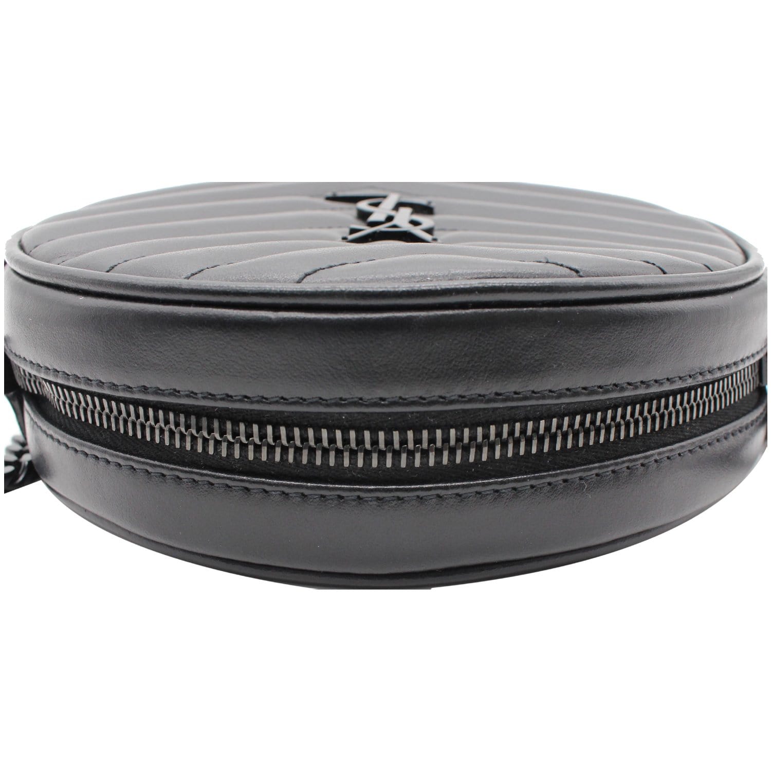 YVES SAINT LAURENT Vinyle Round Chevron Leather Camera Crossbody Bag Black