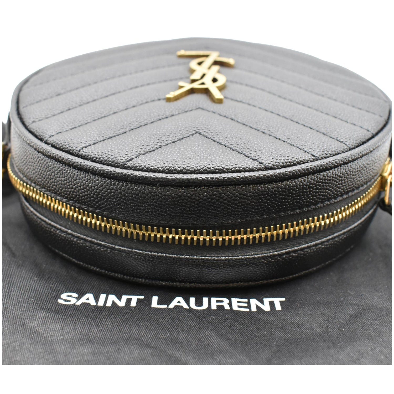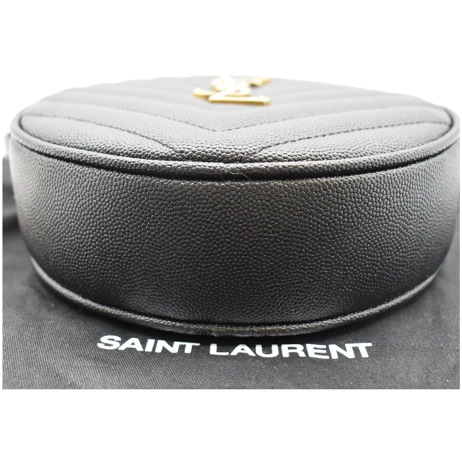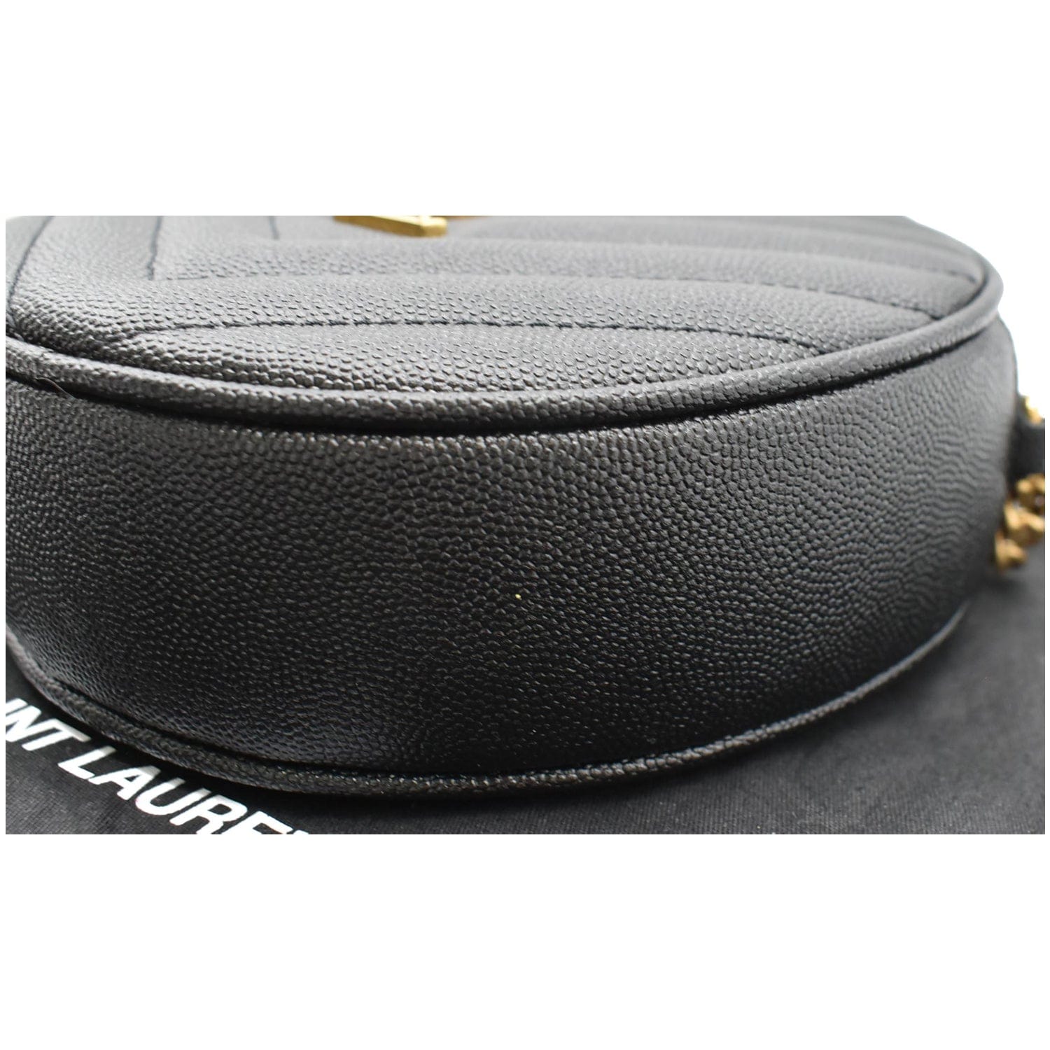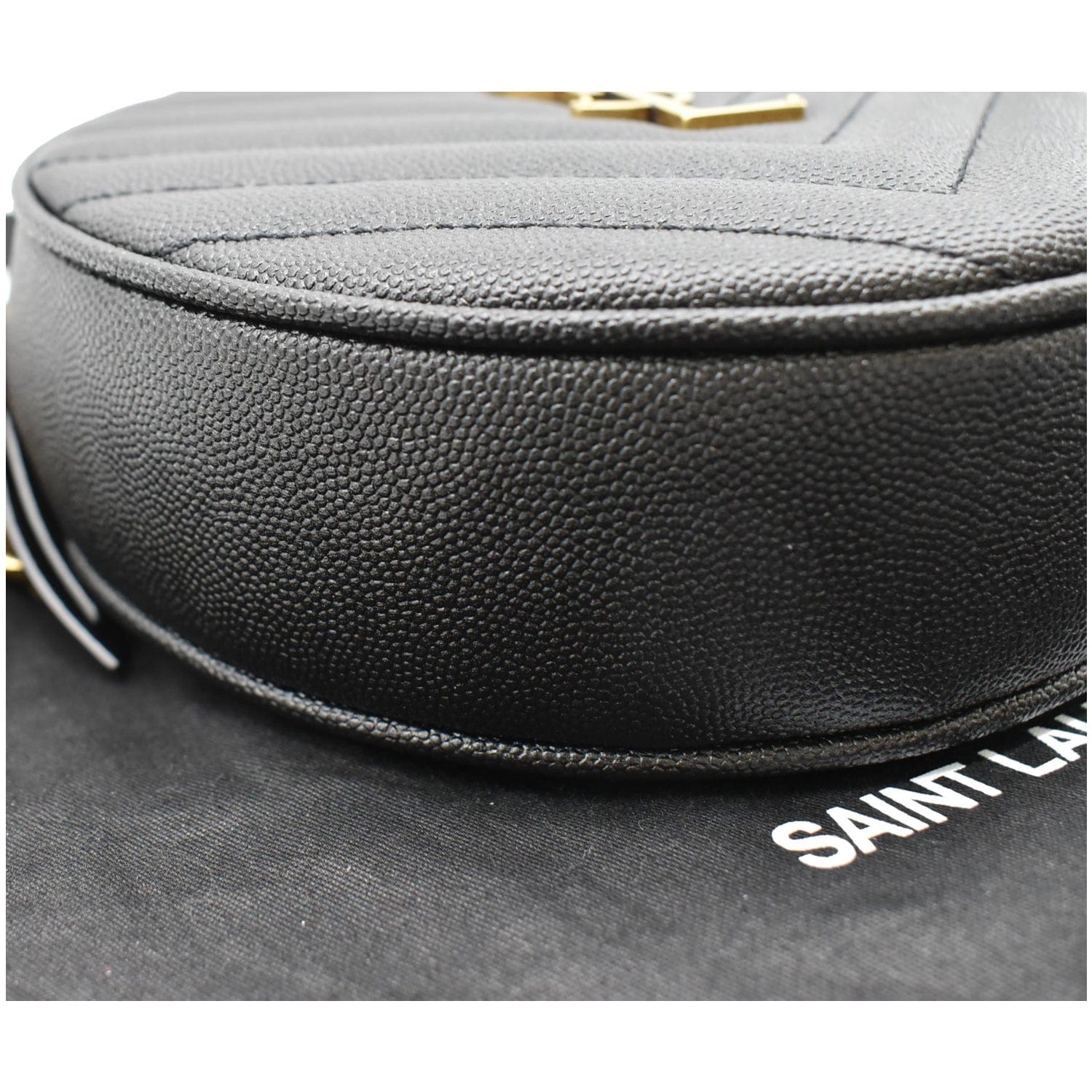 YVES SAINT LAURENT Vinyle Round Chevron Leather Camera Crossbody Bag Black