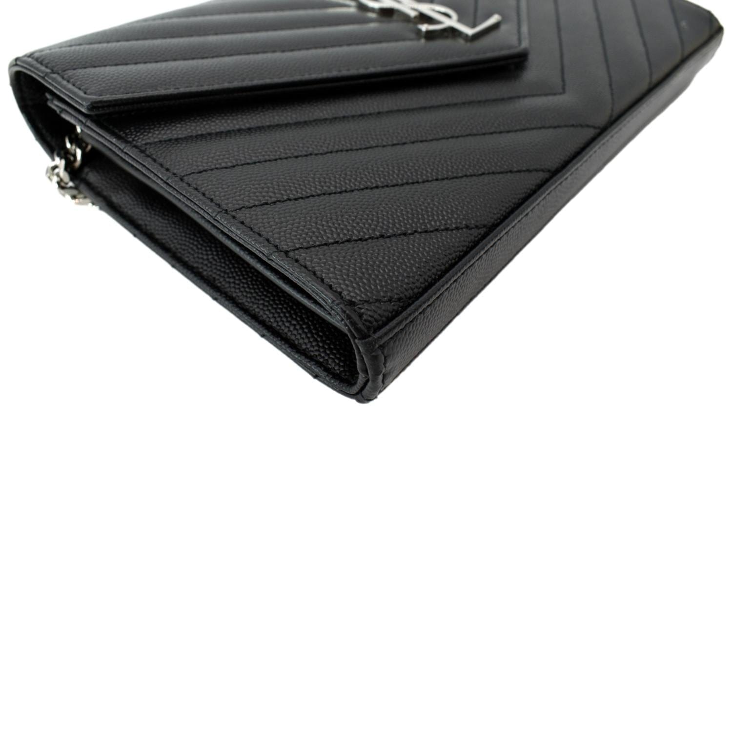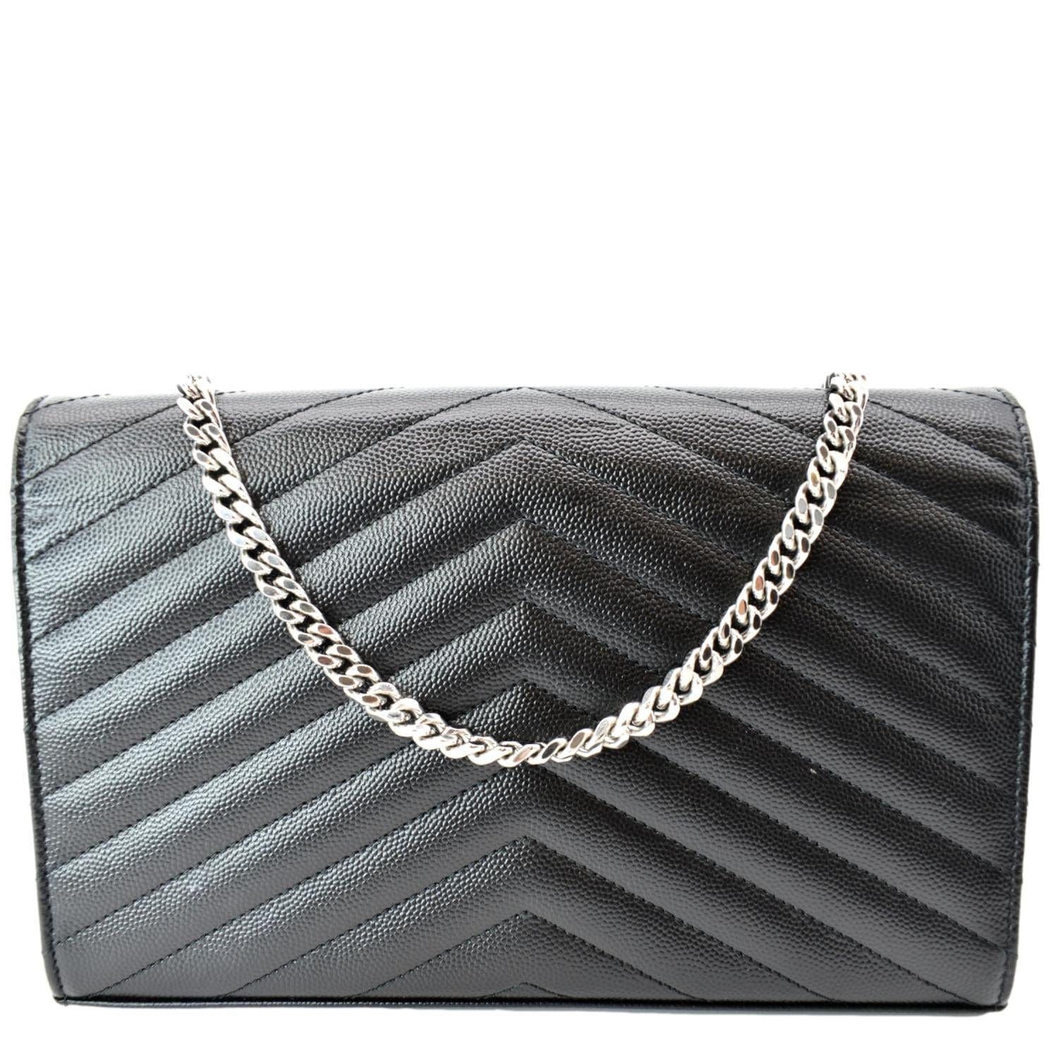 Yves Saint Laurent Embossed Leather Wallet on Chain Shoulder Bag Black