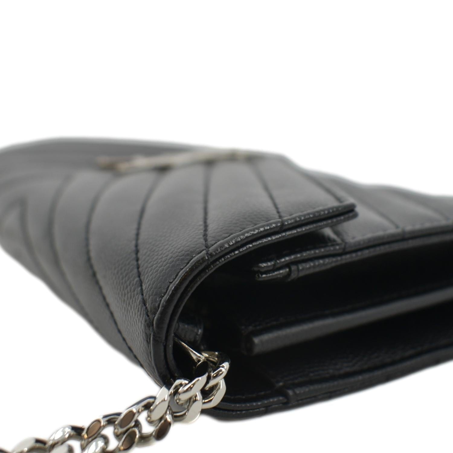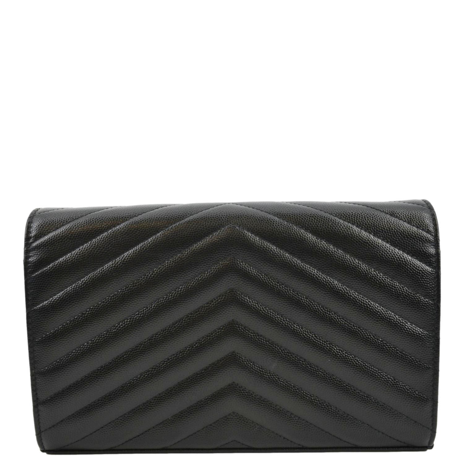 YVES SAINT LAURENT Cassandre Chain Wallet Leather Crossbody Bag Black