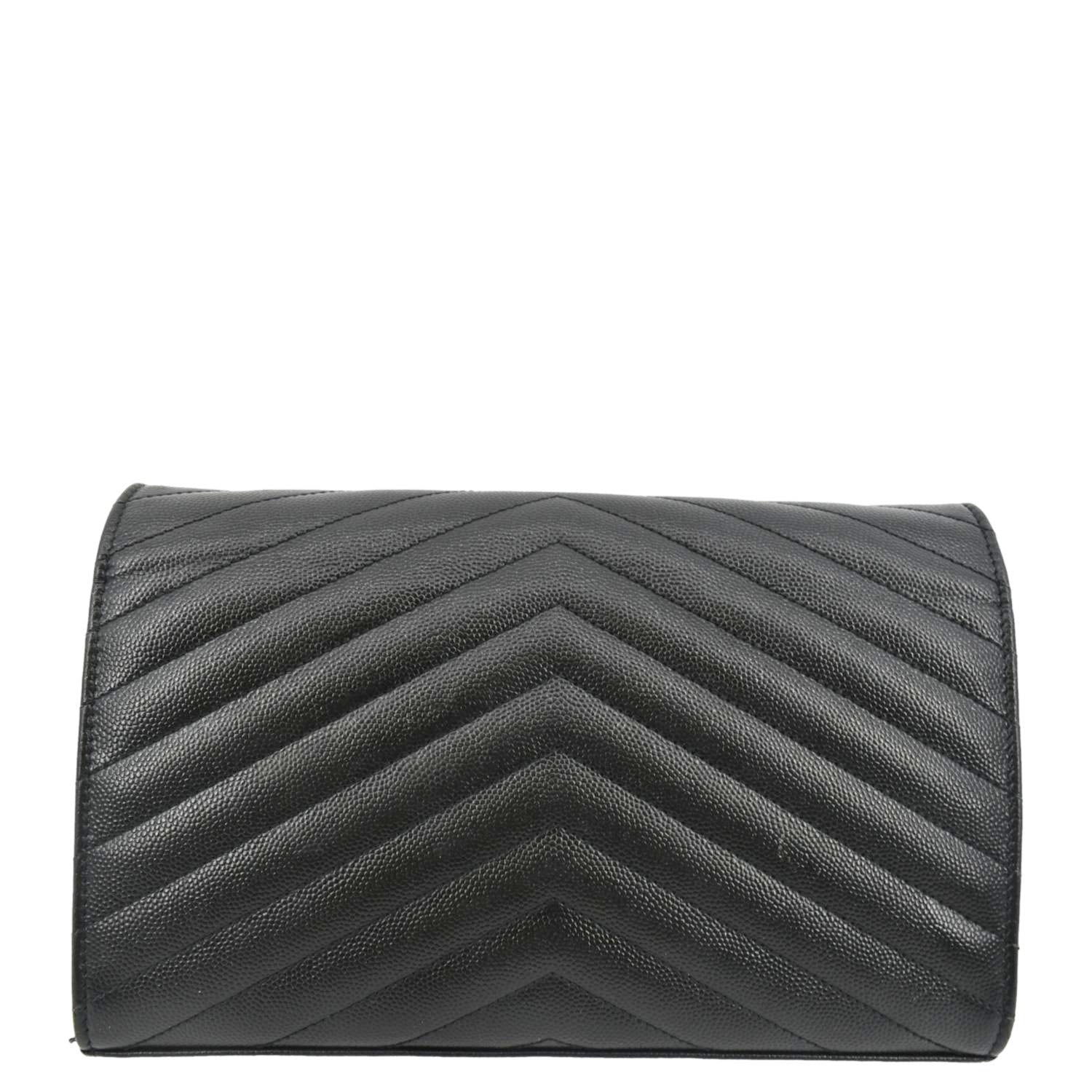 Elevate your style with the YVES SAINT LAURENT Wallet Leather Crossbody Bag in Black. This luxury handbag exudes sophistication, featuring premium leather and the iconic YSL monogram emblem. Its versatile design makes it a perfect day-to-night accessory, and the chain strap adds a touch of glam.