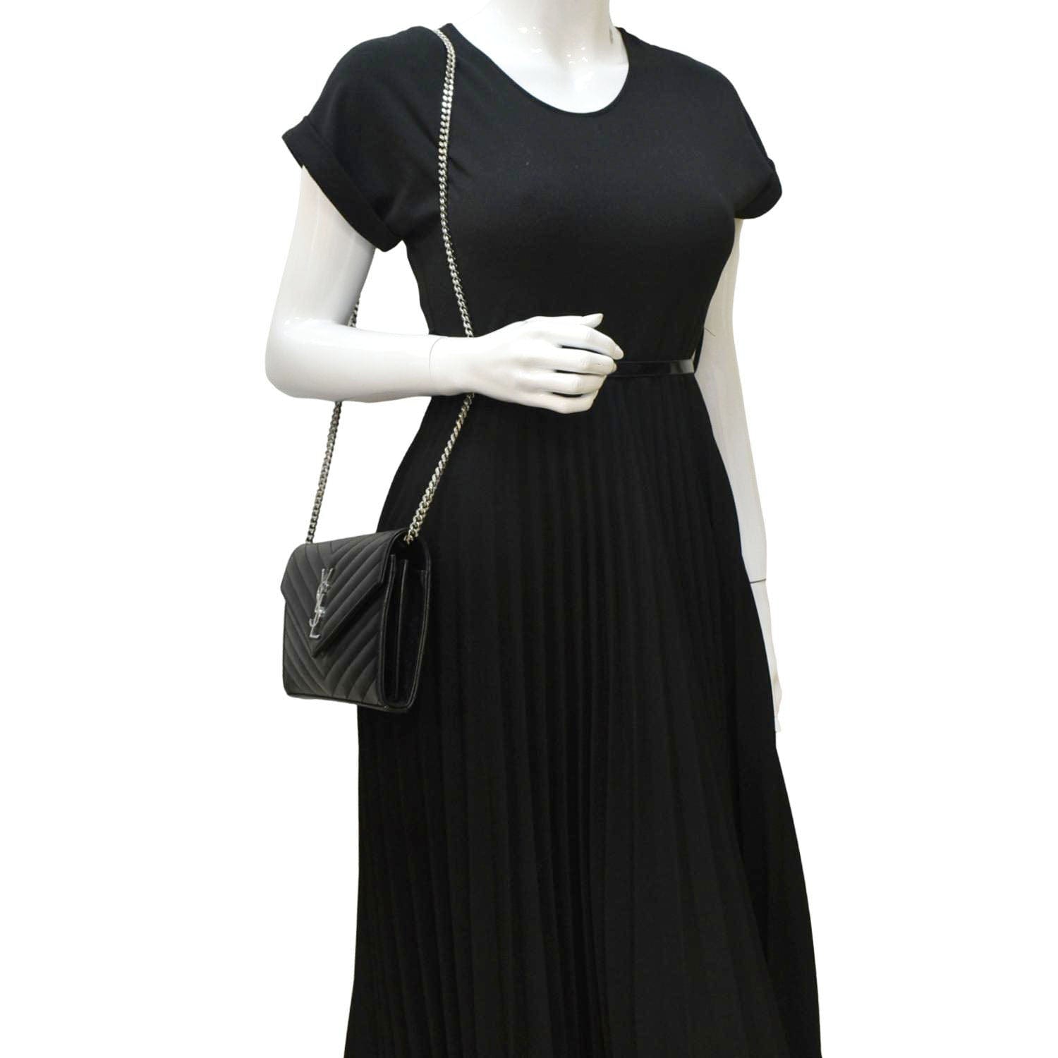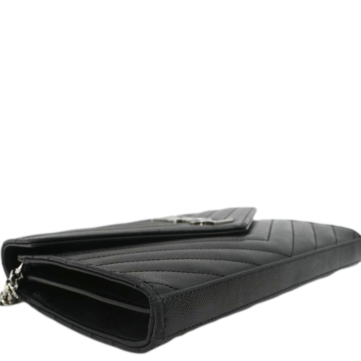 YVES SAINT LAURENT Cassandre Chain Wallet Leather Crossbody Bag Black