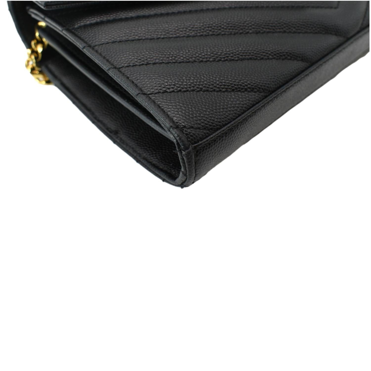 Yves Saint Laurent Embossed Leather Wallet on Chain Shoulder Bag Black
