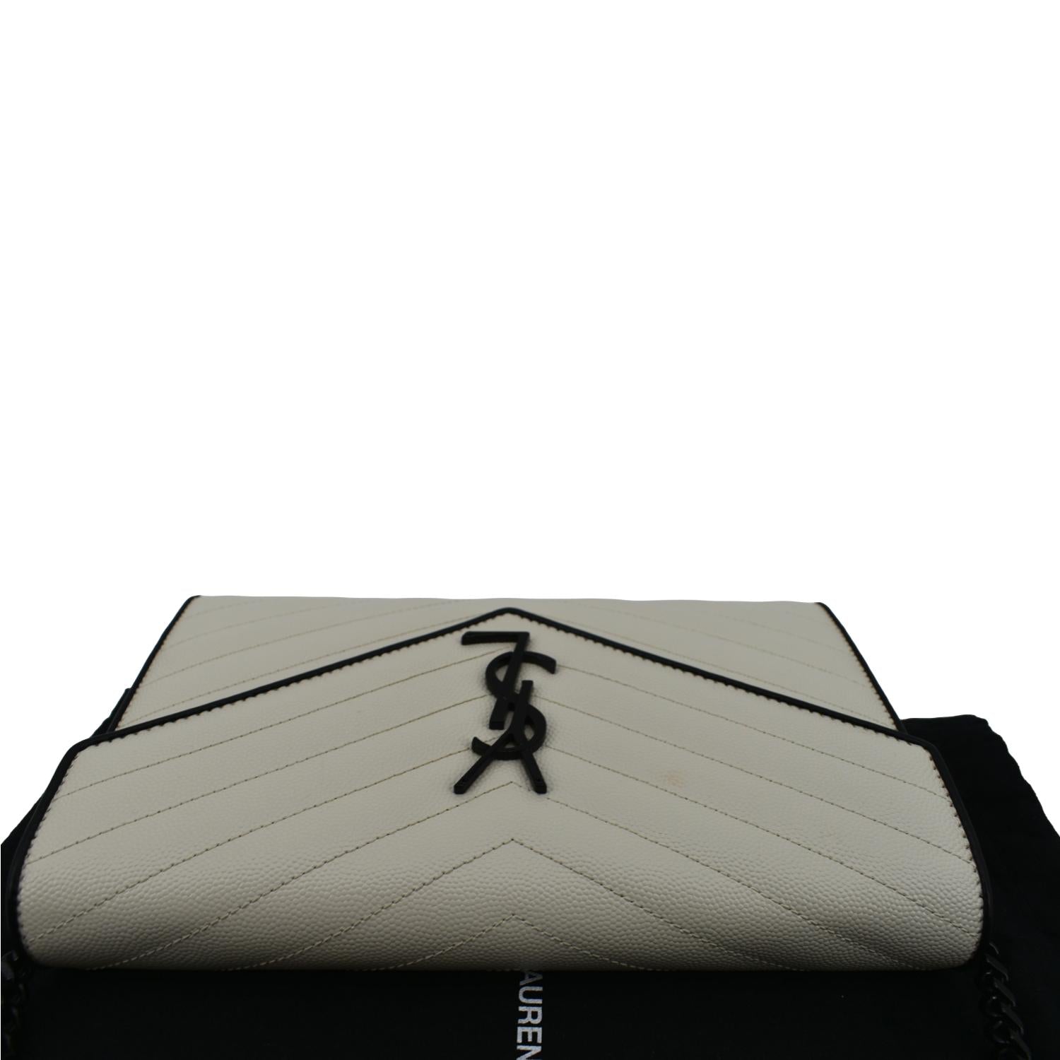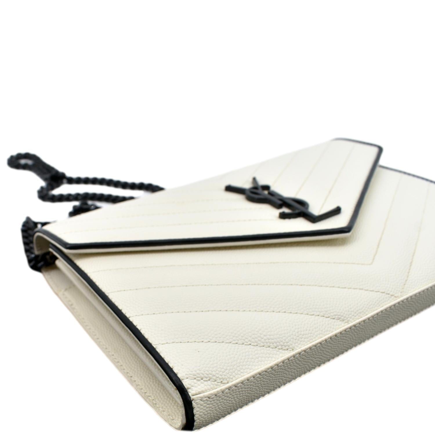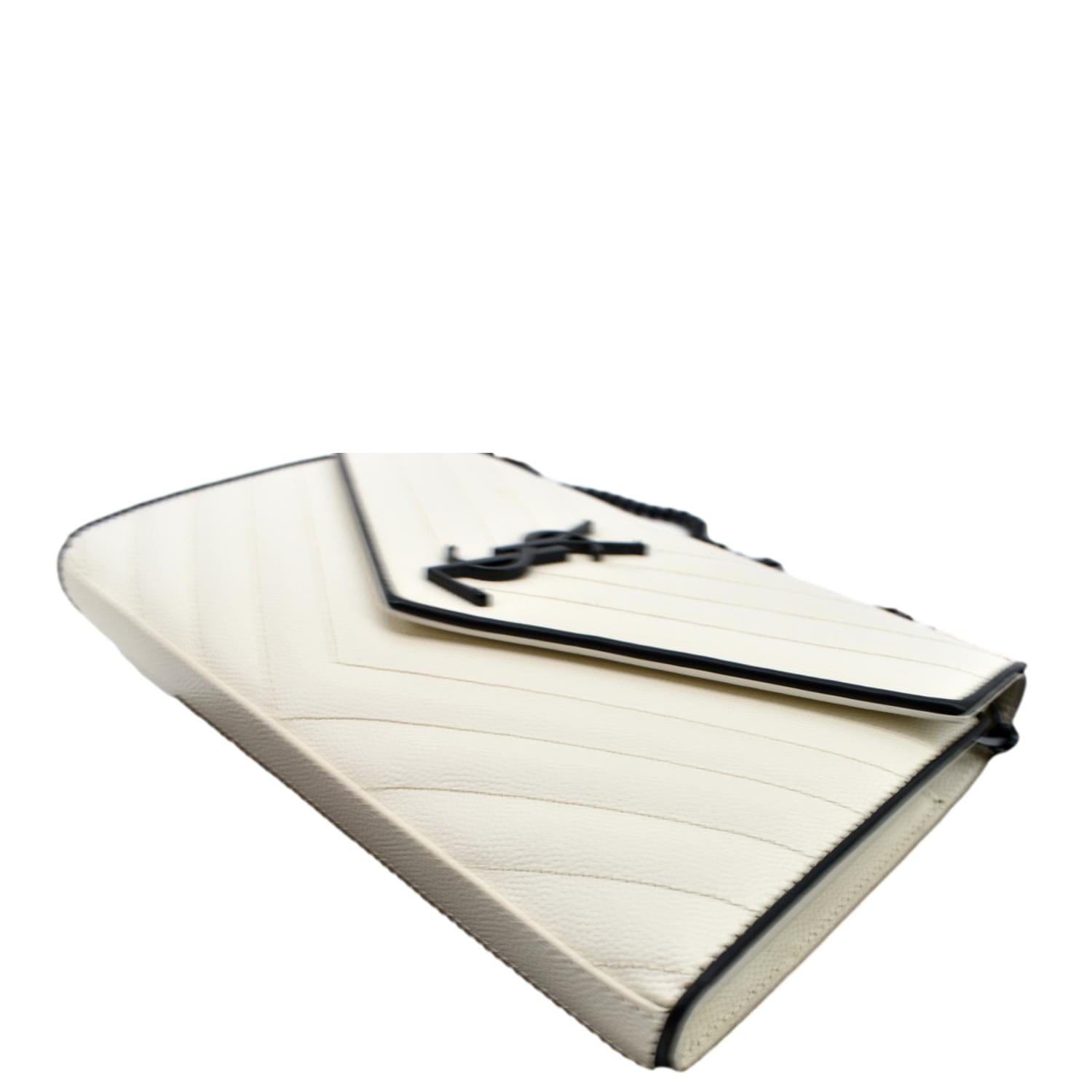 YVES SAINT LAURENT Contrast Trim Wallet on Chain Leather Shoulder Bag White