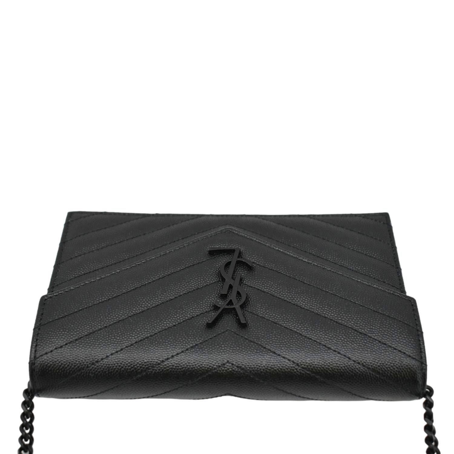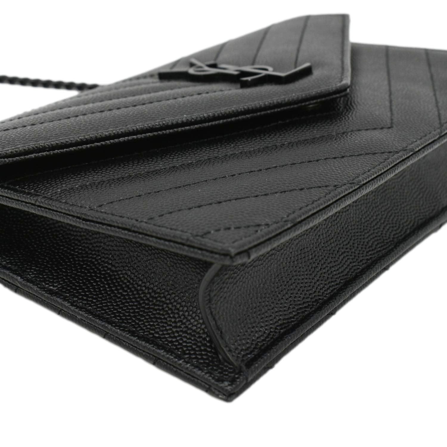 Make a statement with timeless elegance - the Yves Saint Laurent WOC Monogram Envelope bag, crafted in exquisite Grain De Poudre Embossed Leather. Its chic chain detail adds a touch of sophistication to your style, embodying luxury in every fold.