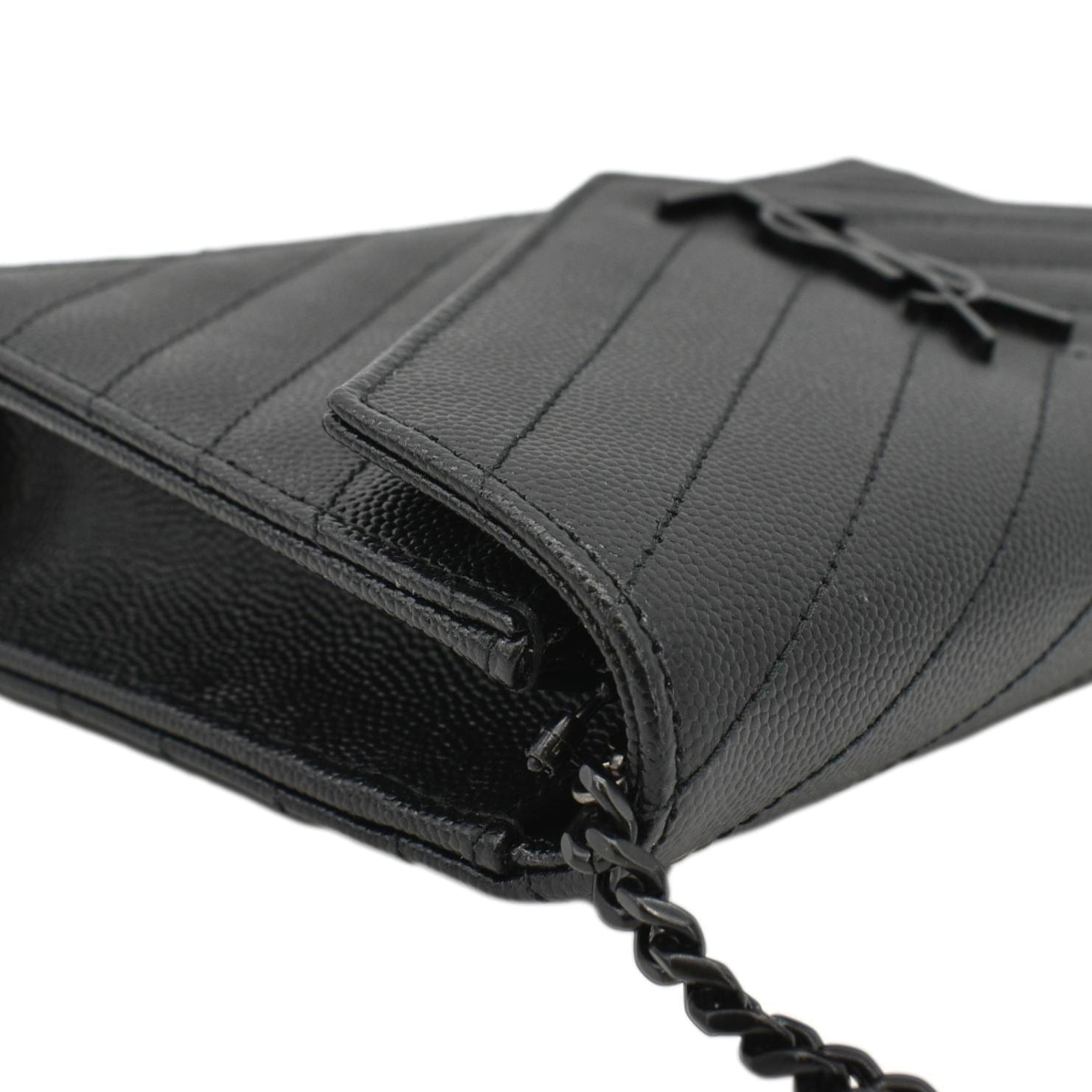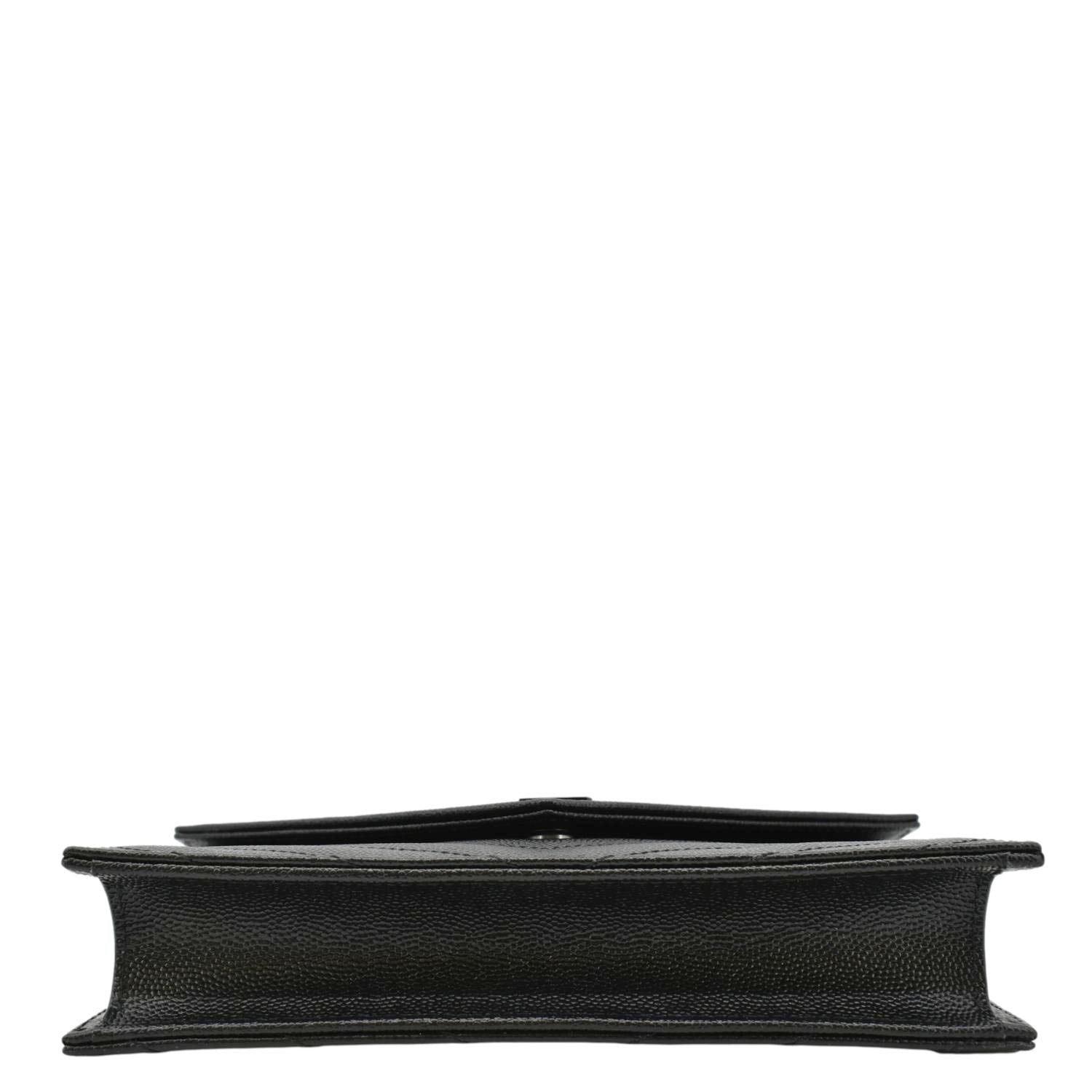 YVES SAINT LAURENT Monogram Envelope Grain De Poudre Leather Crossbody Bag Black
