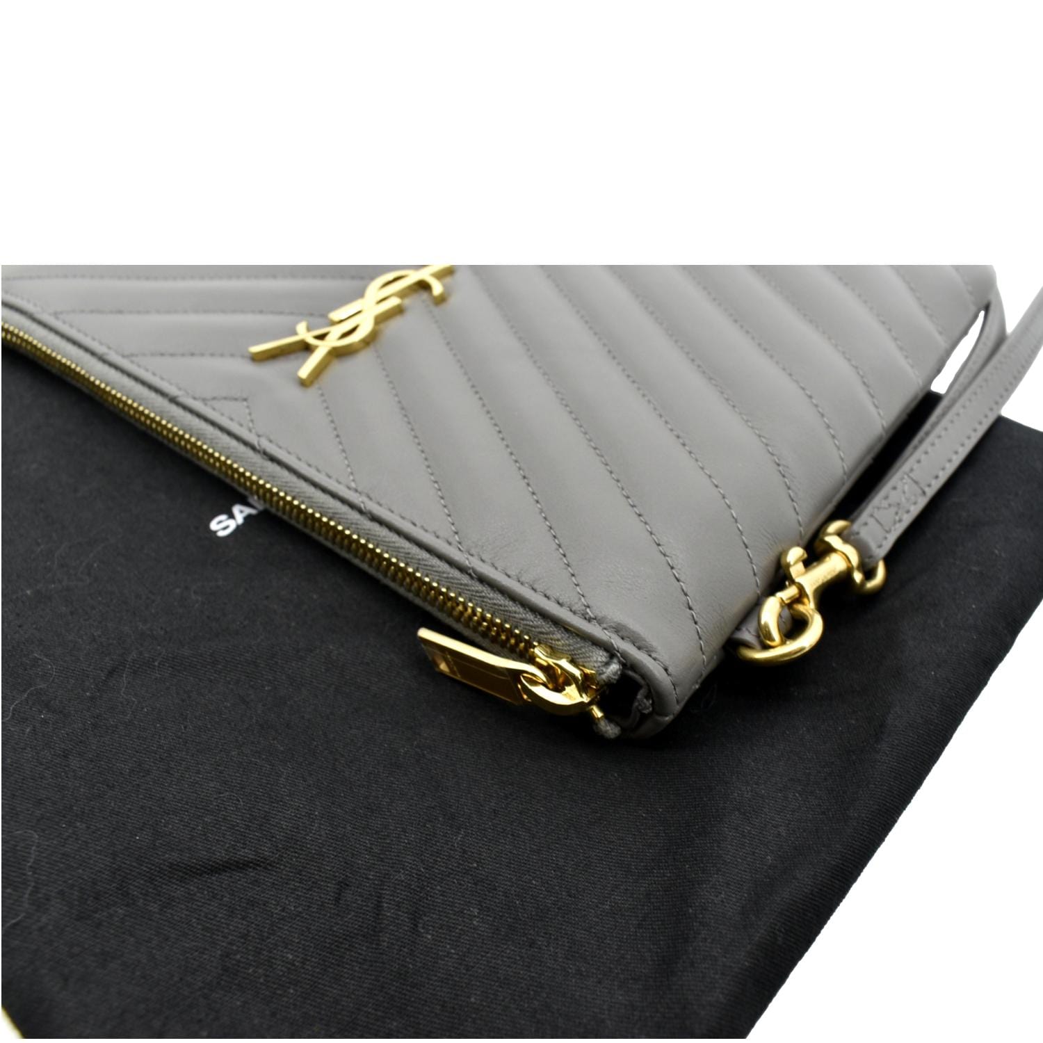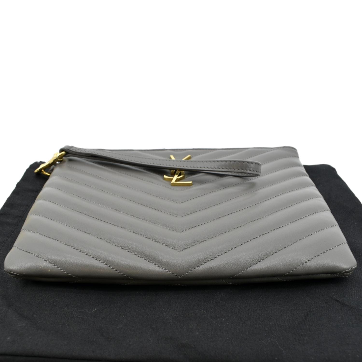 Yves Saint Laurent Monogram Leather Pouch Grey