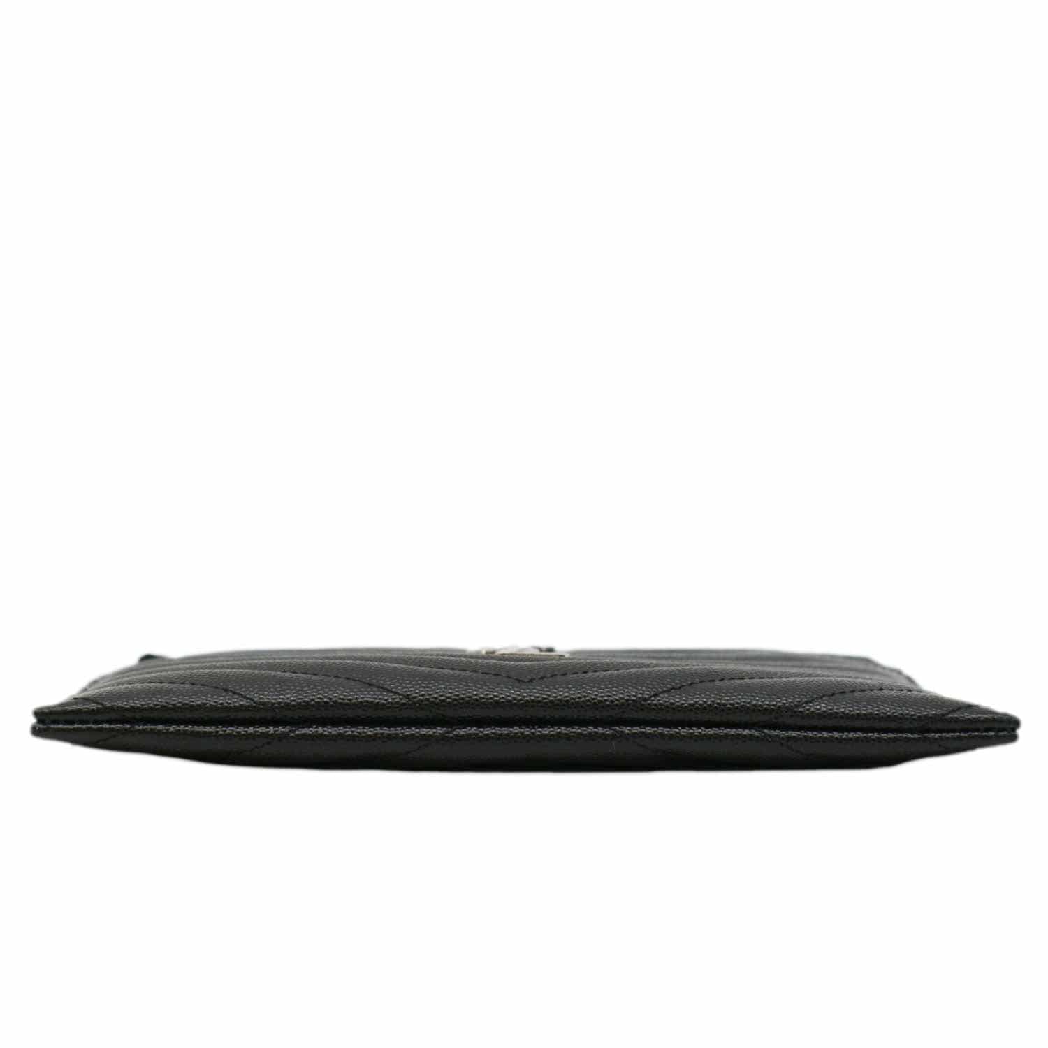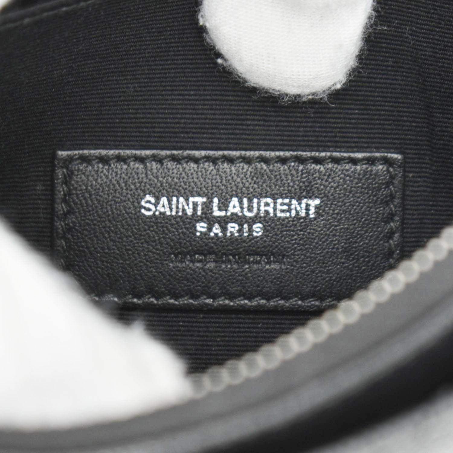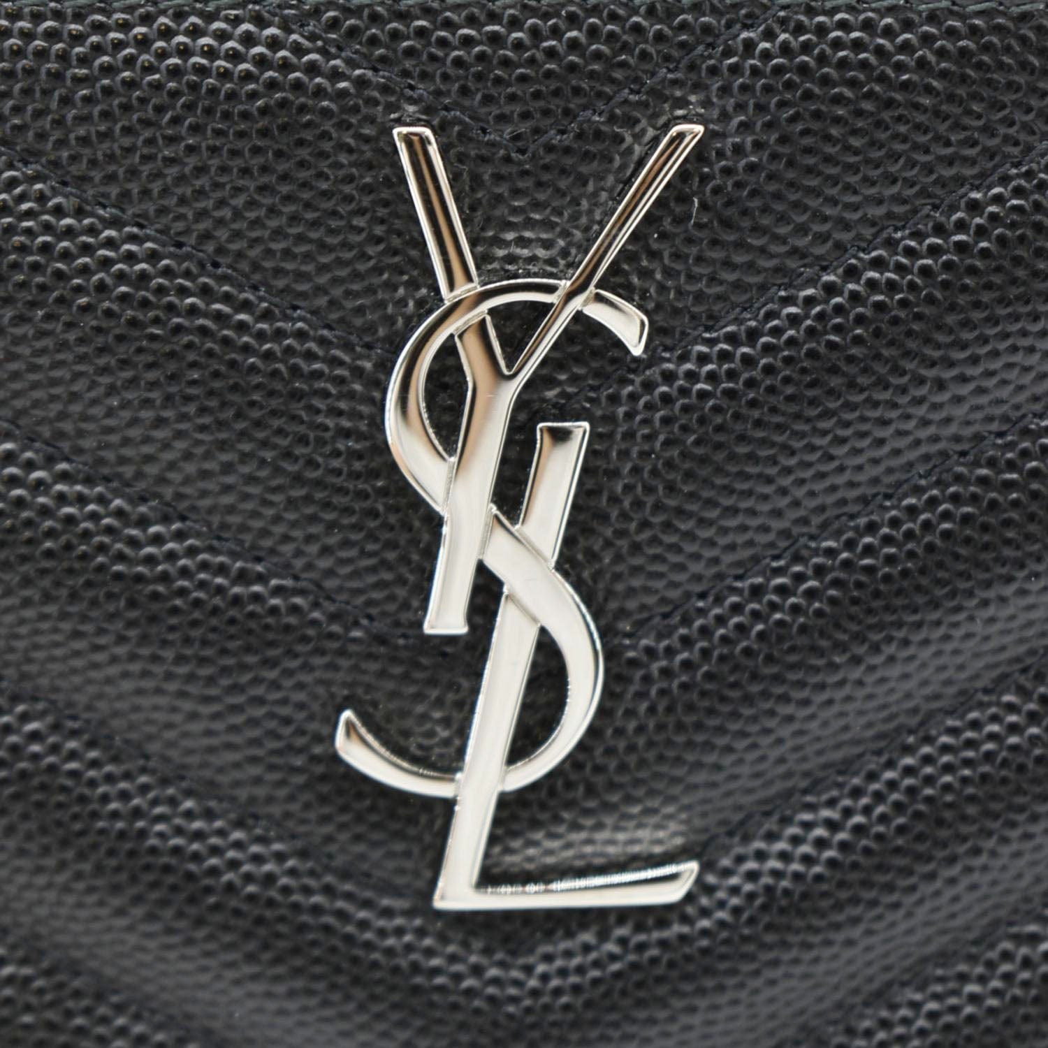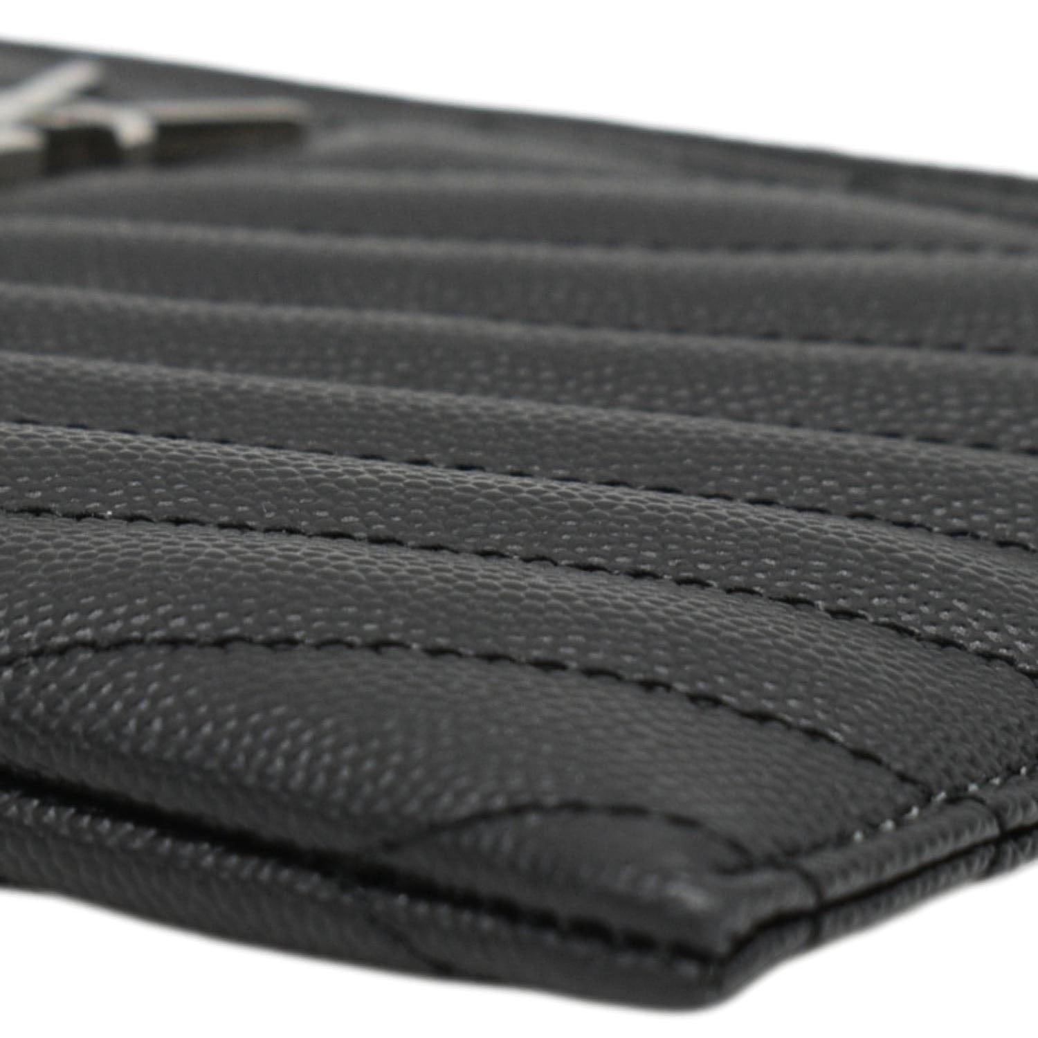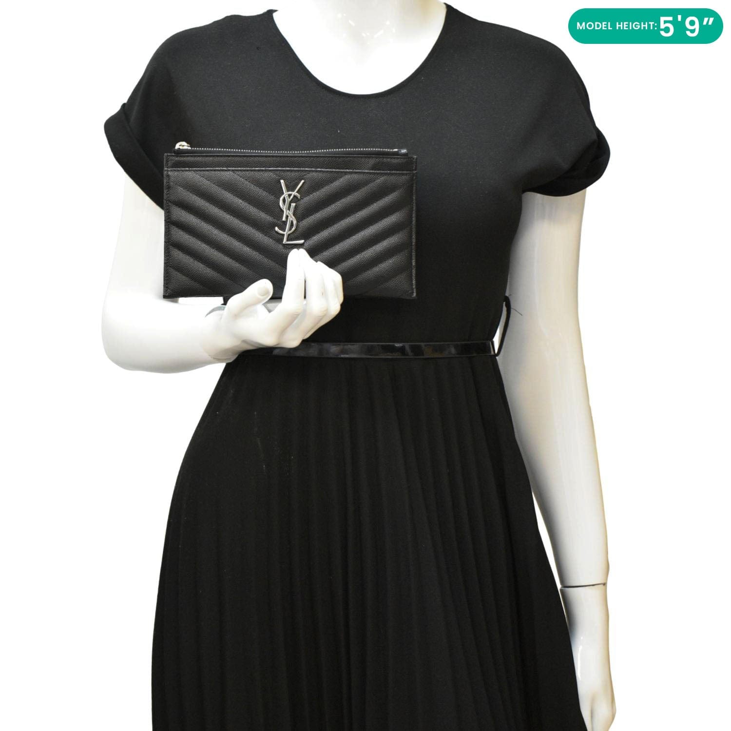 YVES SAINT LAURENT Monogram Bill Grain De Poudre Chevron Leather Zip Pouch Black