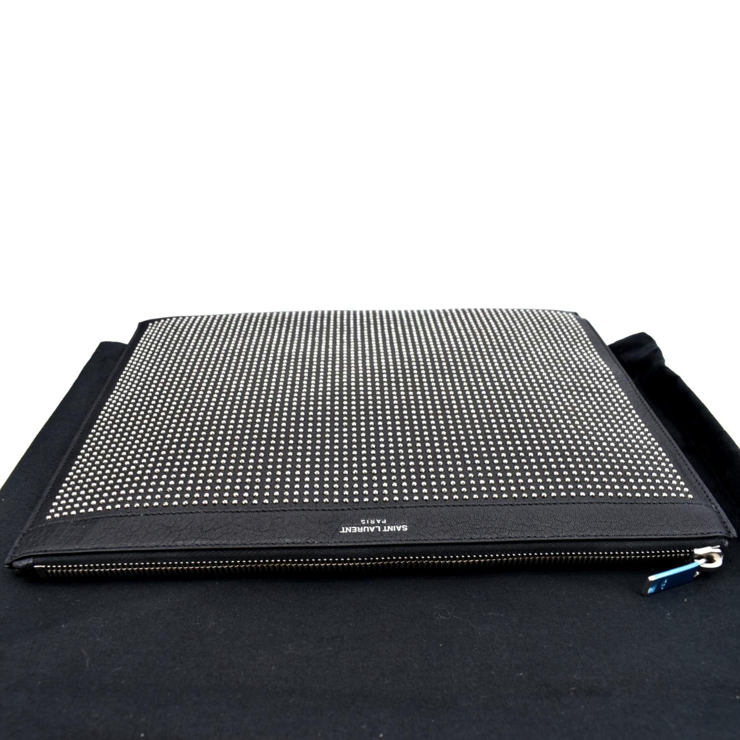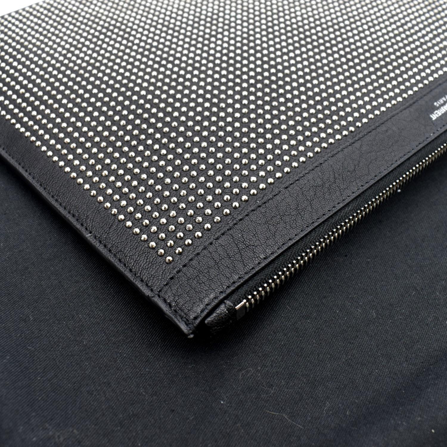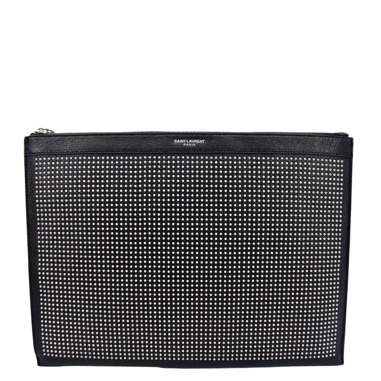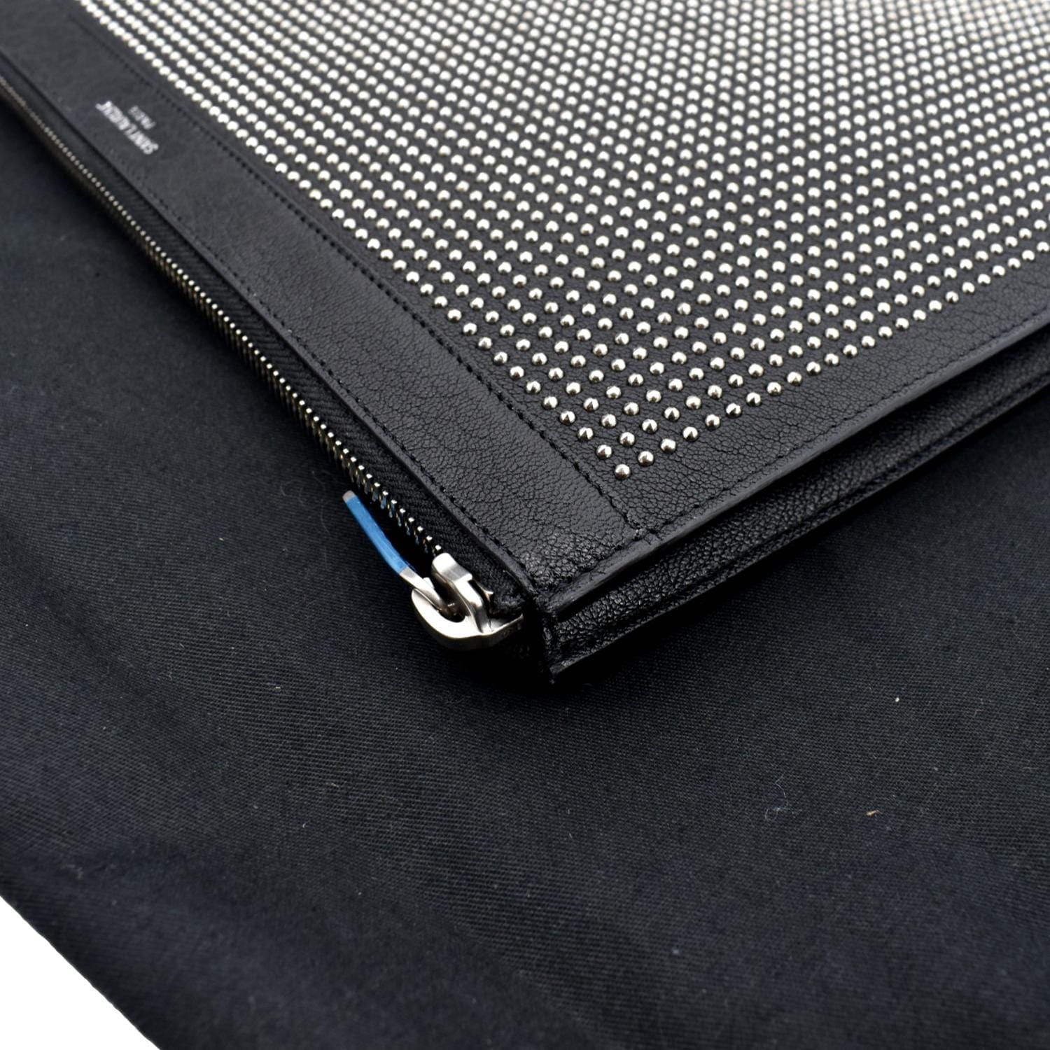 YVES SAINT LAURENT Zip Studded Leather Pouch Black