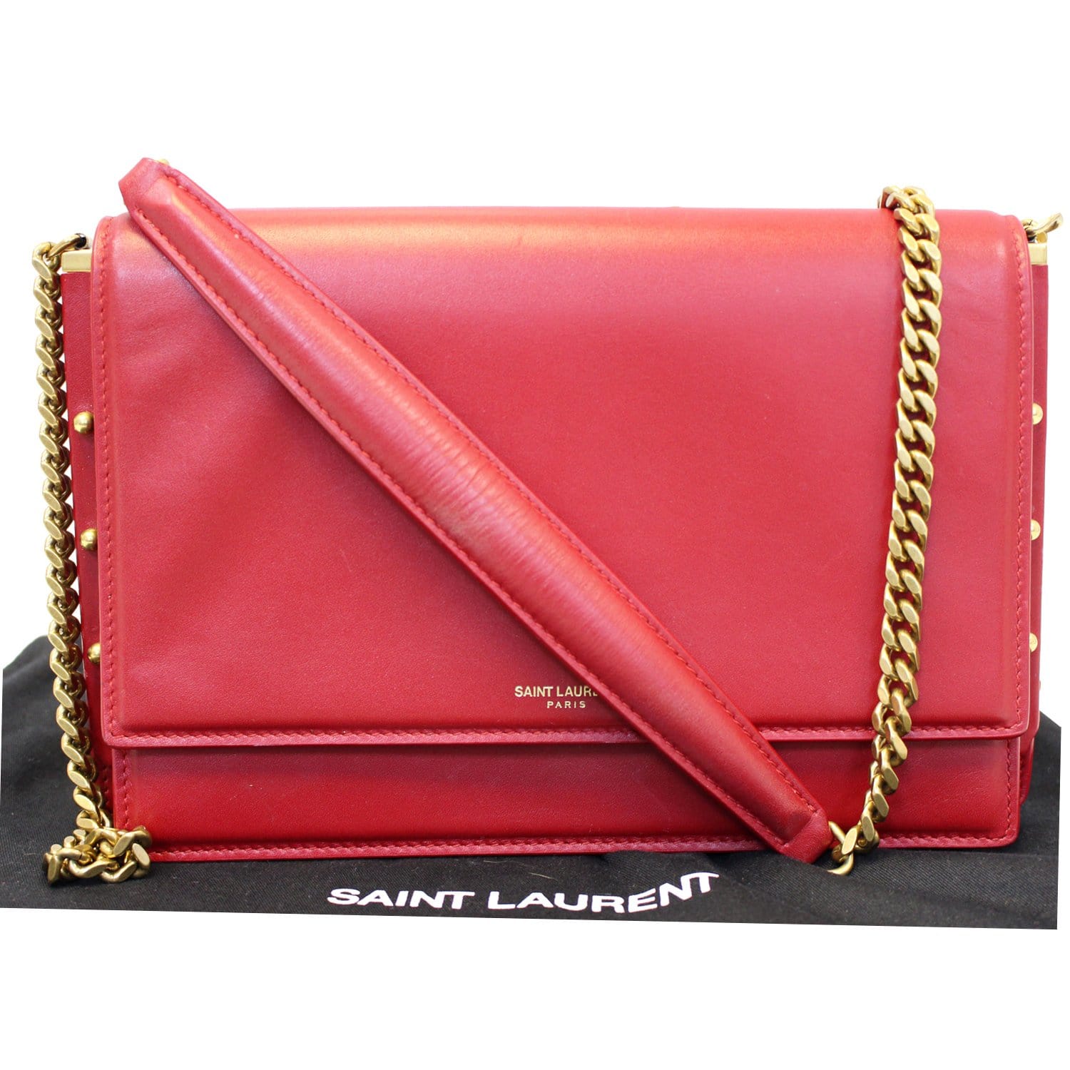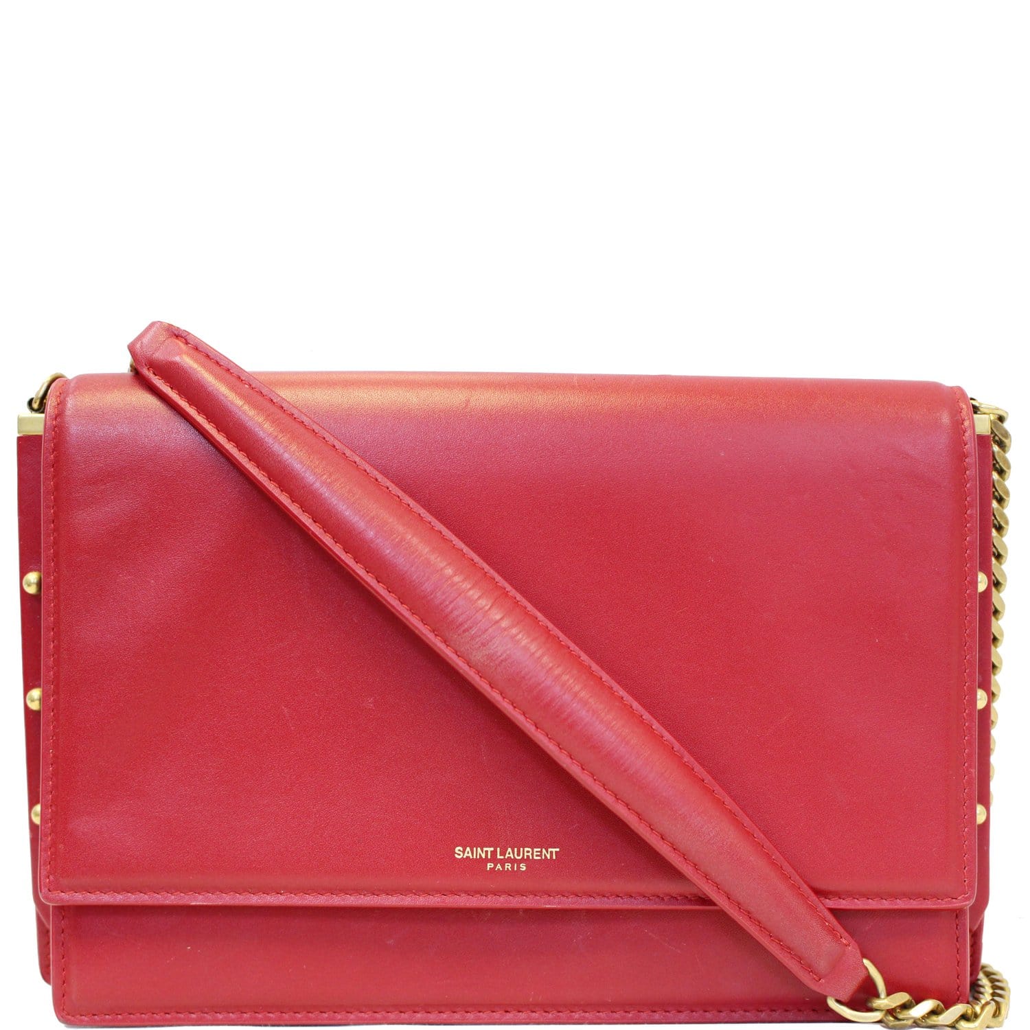 YVES SAINT LAURENT Zoe Lambskin Leather Shoulder Bag Red